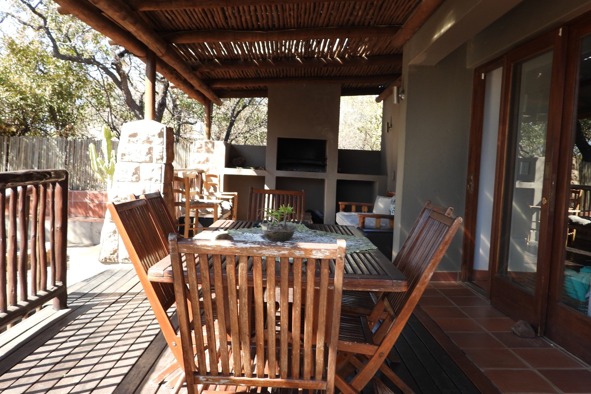Each bedroom is a private haven, complete with en-suite bathrooms and outdoor showers that let you rinse off under the African sky. A guest toilet, scullery, and air-conditioning throughout ensure both convenience and luxury. Whether it’s morning coffee on the deck or quiet nights by the fire, this lodge offers an immersive and peaceful bushveld lifestyle.