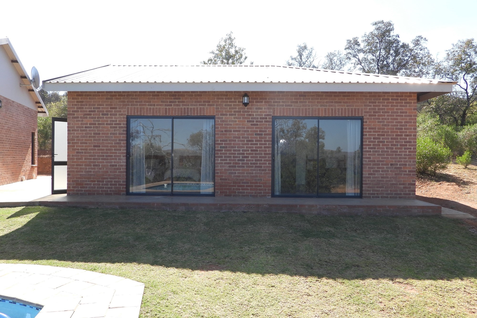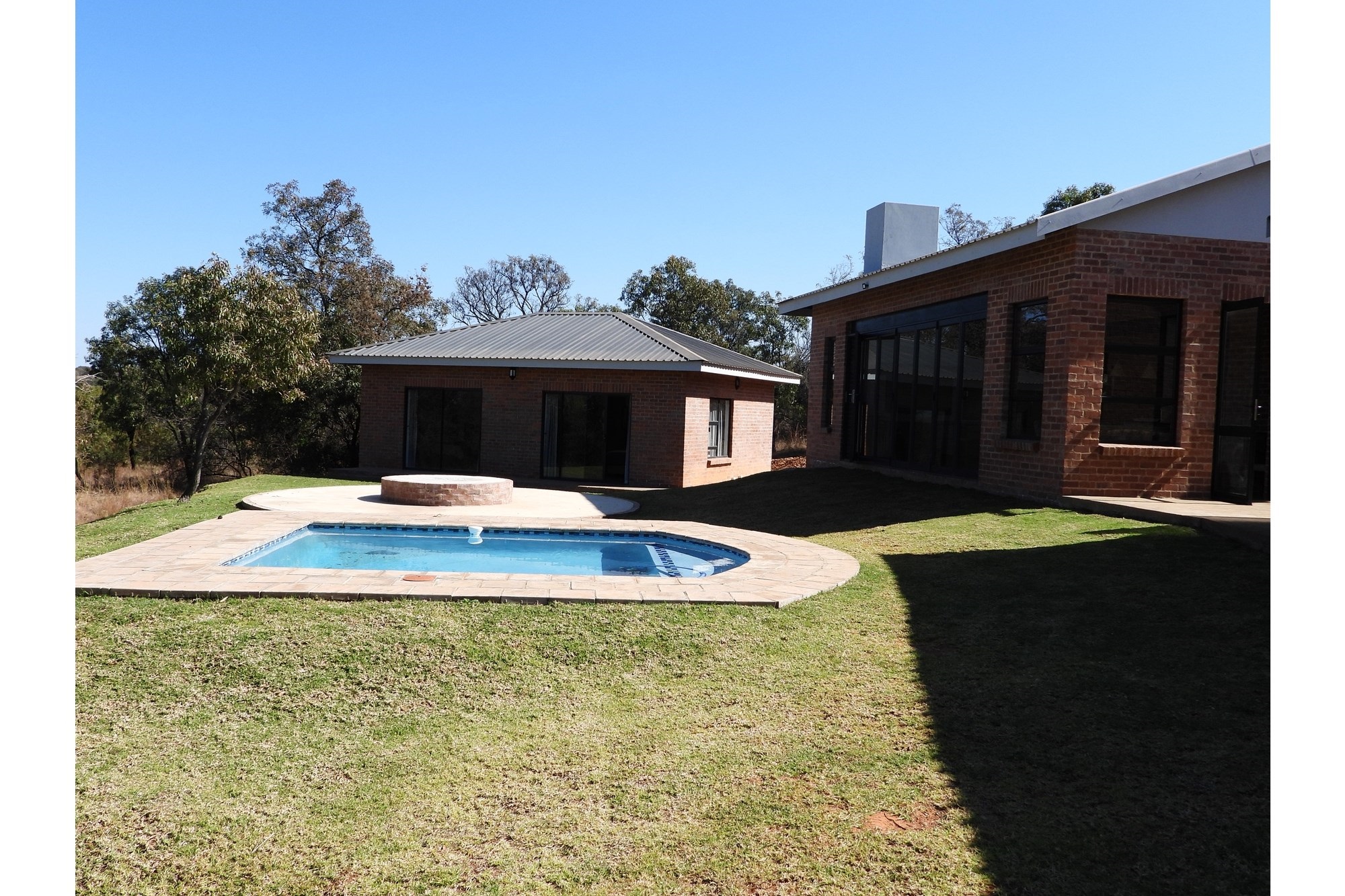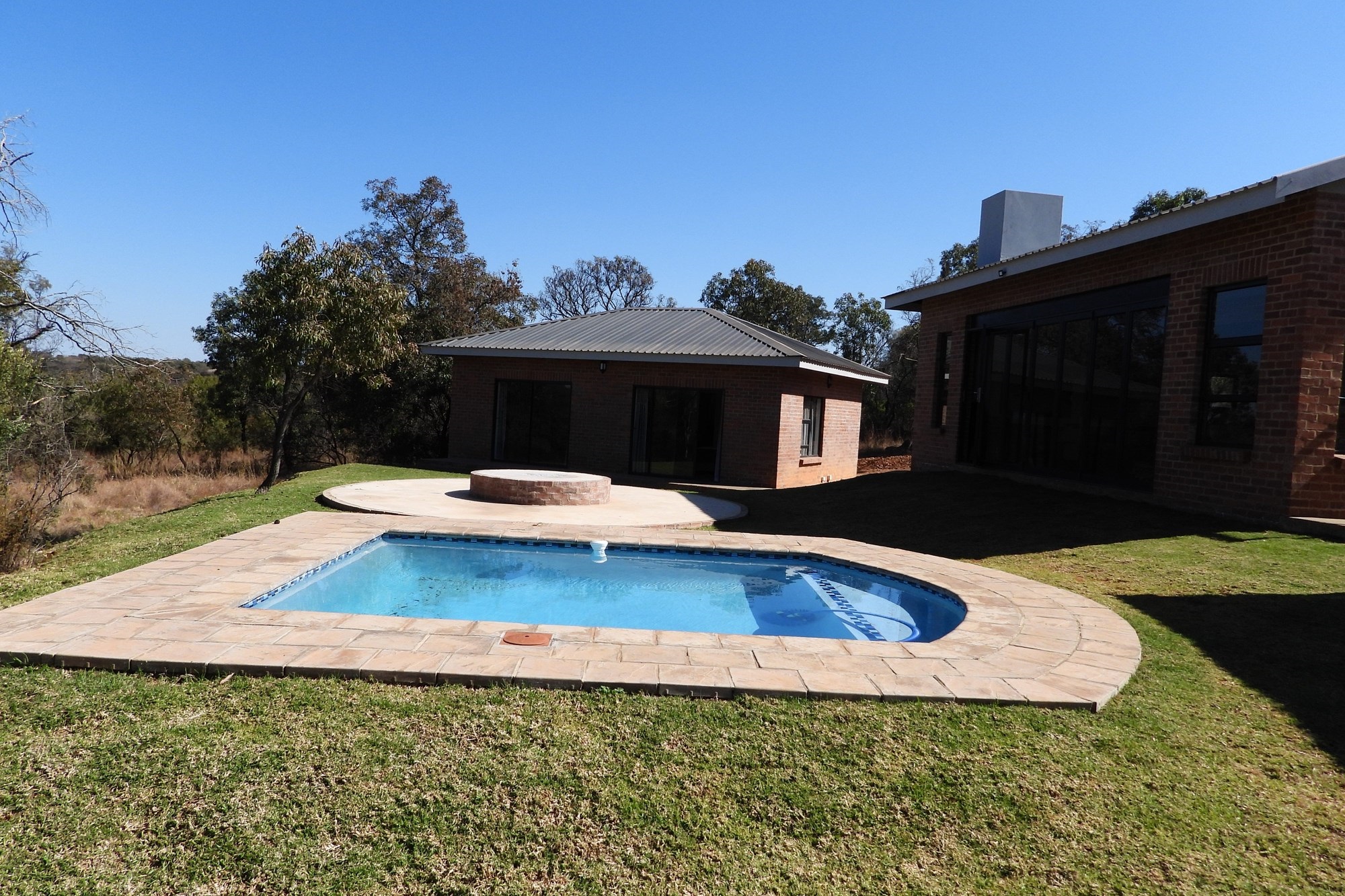 Nestled in the heart of a world-class golf estate, this elegant 4-bedroom lodge offers the perfect blend of modern comfort and natural beauty. All bedrooms feature stylish en-suite bathrooms, while the open-plan lounge and kitchen create a welcoming space ideal for family living or entertaining. A built-in braai enhances the dining area, flowing seamlessly onto a spacious patio overlooking the sparkling swimming pool, lush garden, and cozy boma, perfect for evenings under the stars. The property includes gas geysers, a full sprinkler system, and covered carports for your convenience. This is refined bushveld living at its best.