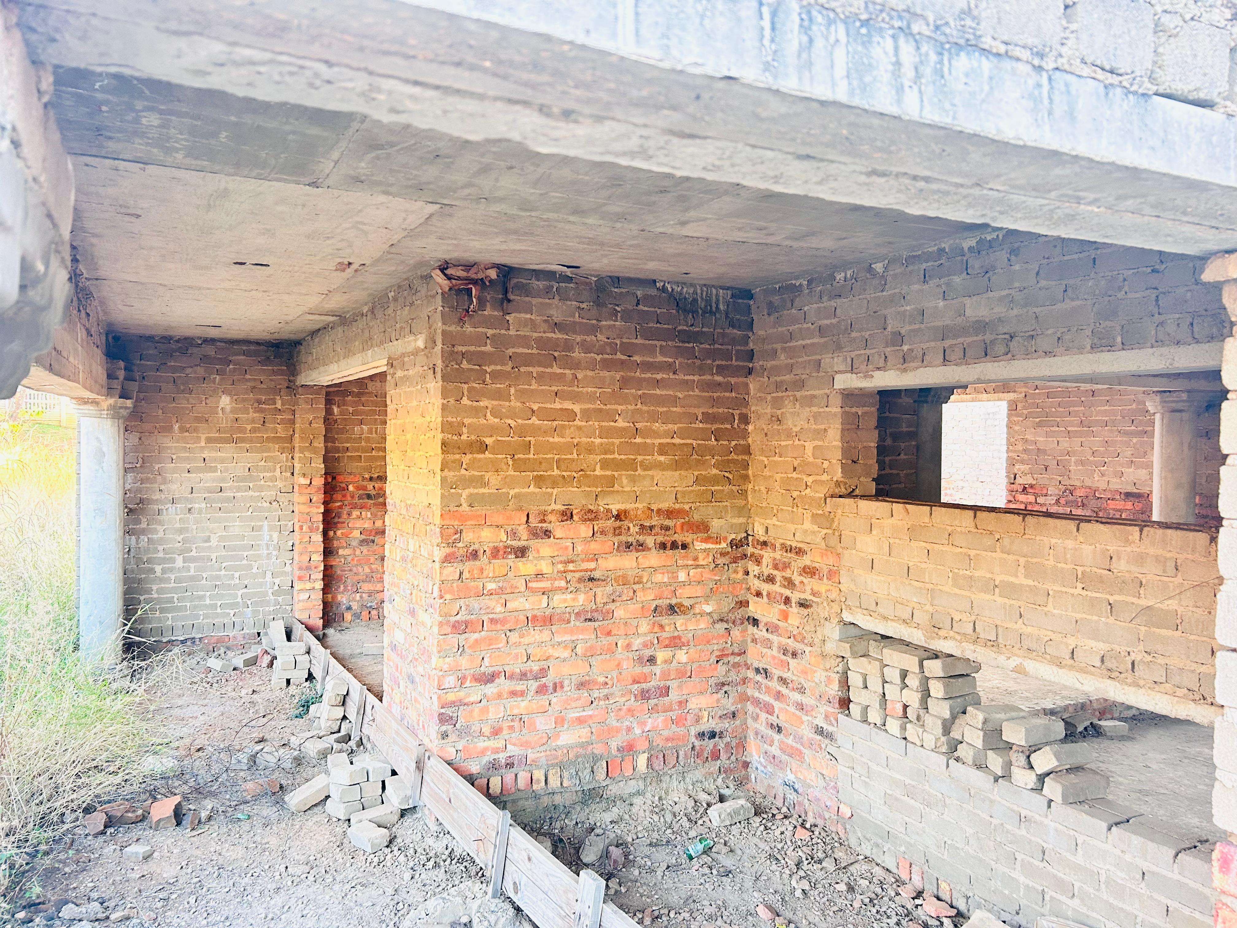 This promising property sits on a prime corner location and includes two large stands, offering generous space and great future potential. The house is built with a double-storey plan, and the ground floor is already completed, featuring: