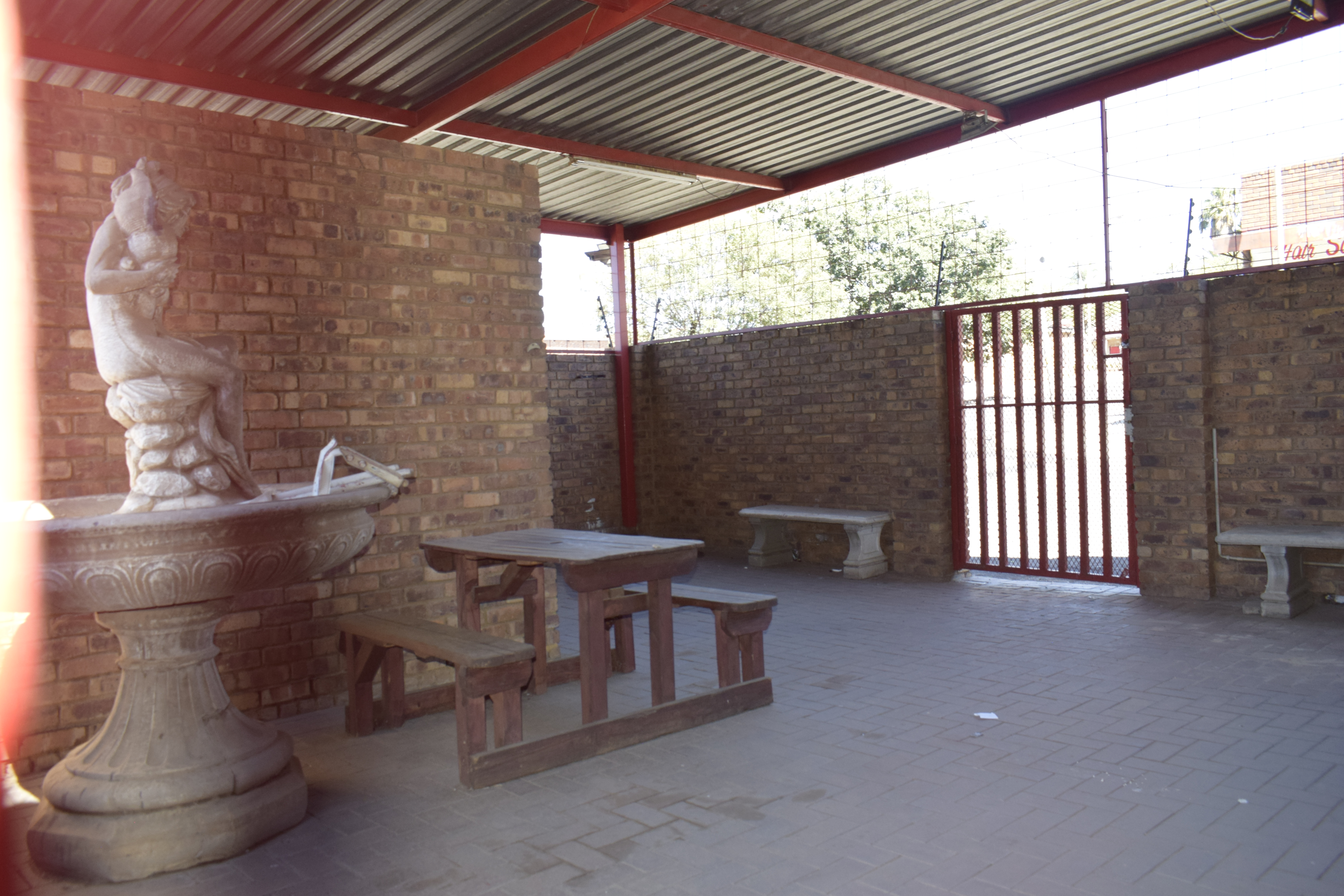 Entertainment area with an outside toilet