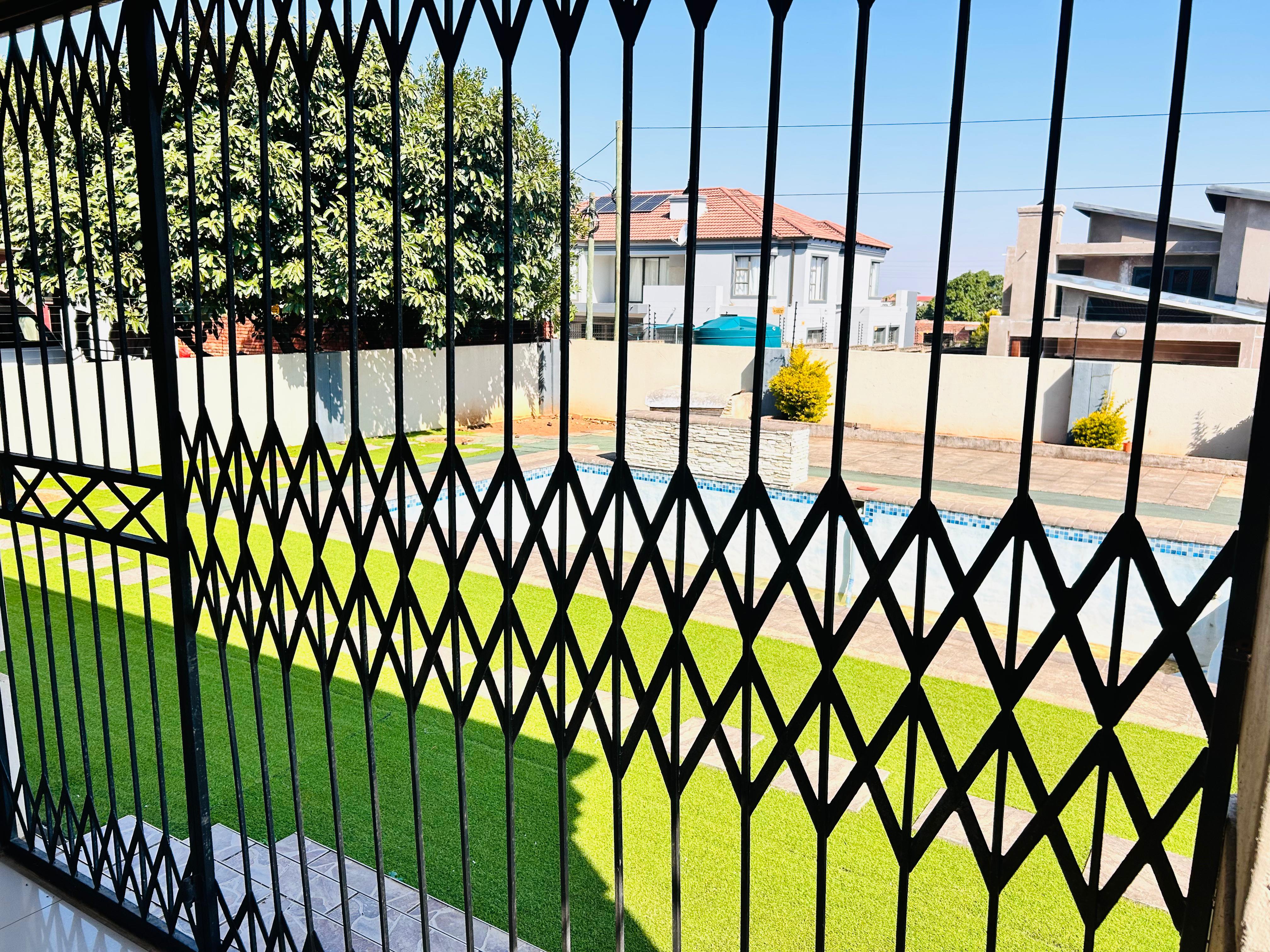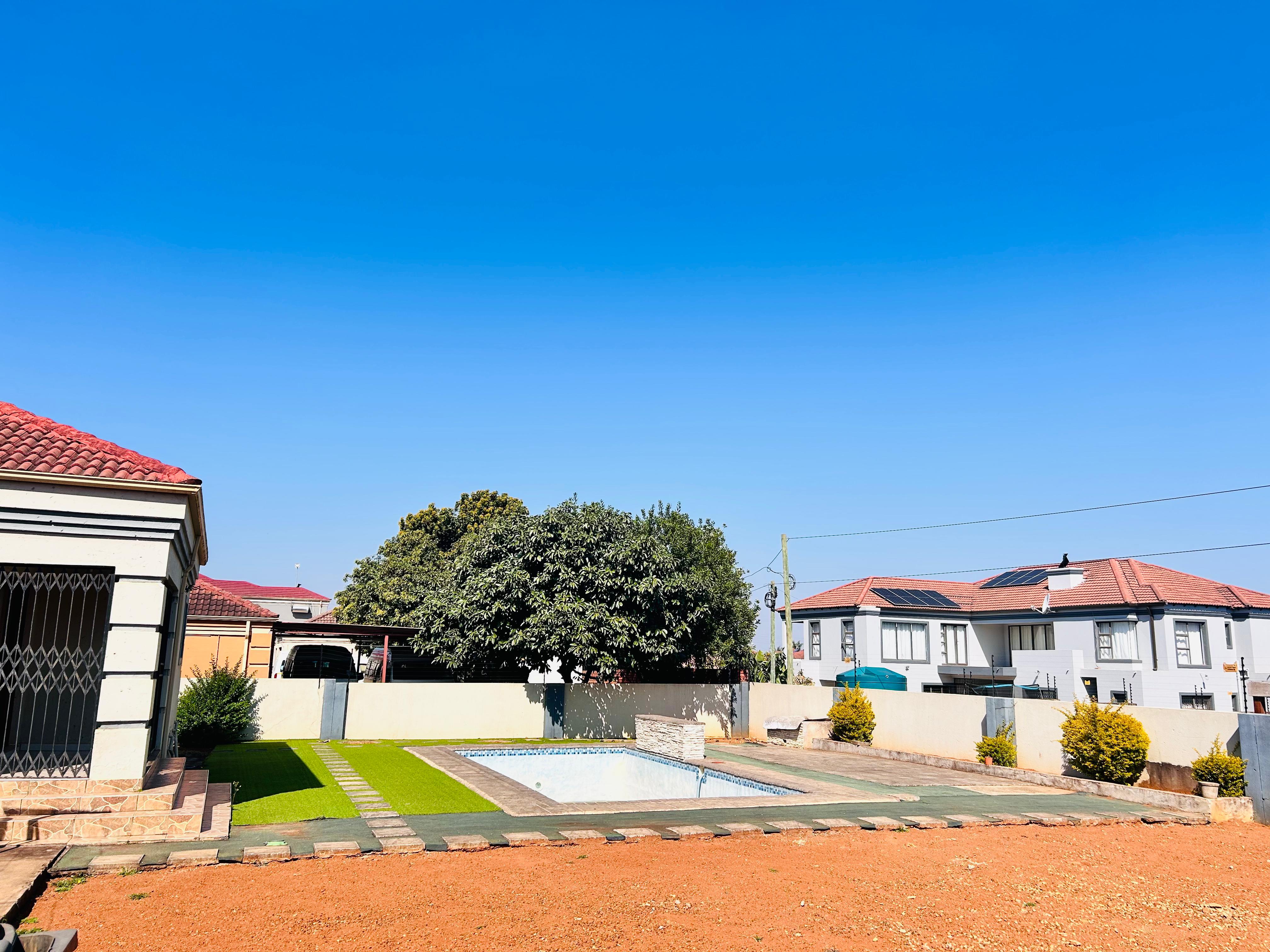 Outside, enjoy warm afternoons by the sparkling pool, with a borehole and water tank ensuring your garden and home are always well supplied. The double garage provides secure parking and extra storage.