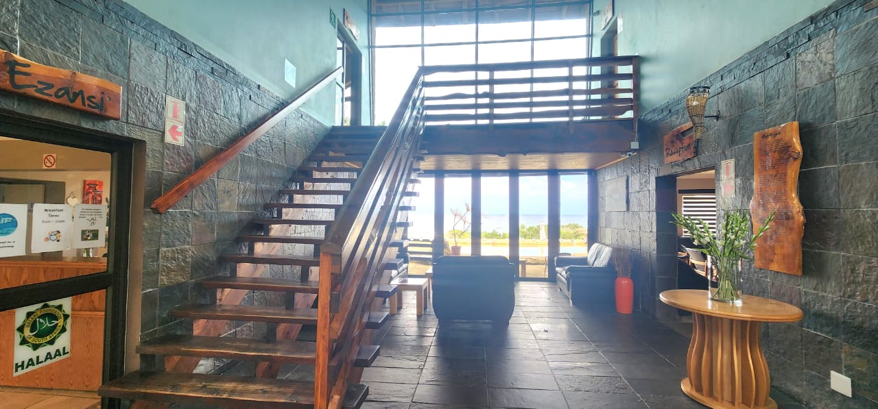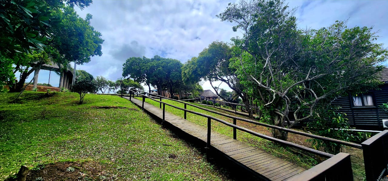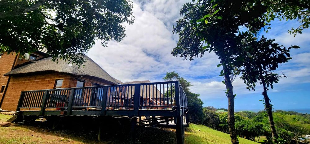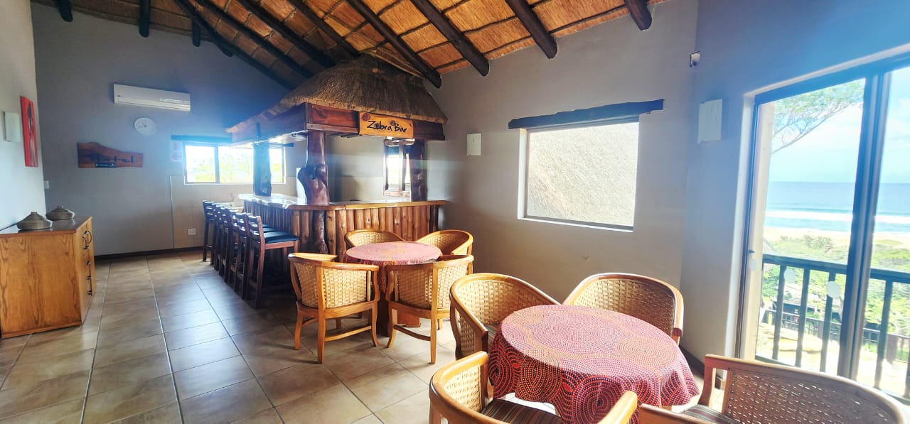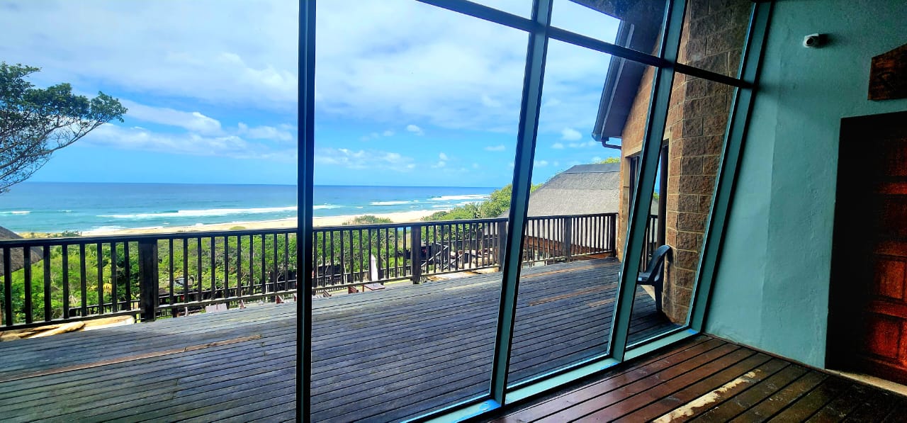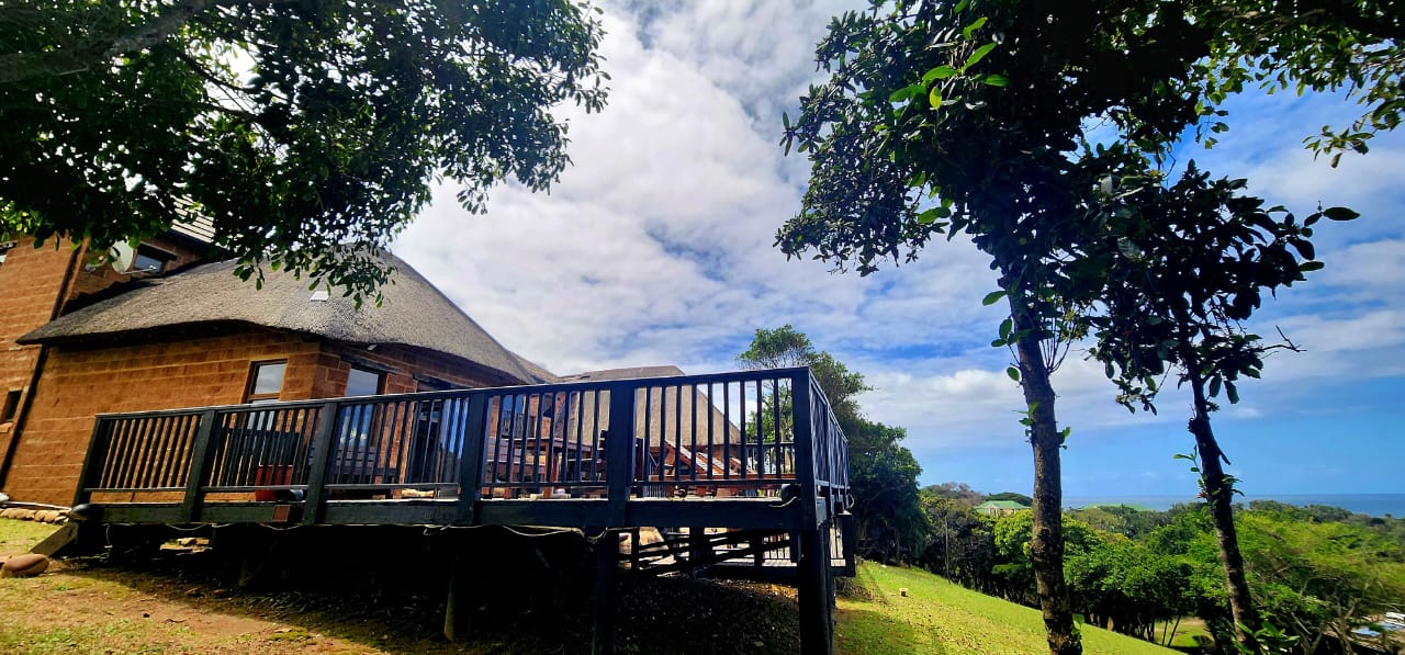 BEACHFRONT...Situated in the coastal village of Elysium adjacent to Ifafa, in a quiet dream location, on a large property of 4,56ha, consisting of large indigenous trees, manicured, rolling lawns and feature flower beds. You are welcomed by an impressive thatched entrance complete with guard house and ablutions, a winding tarred road leads to the main hotel building, perched in the centre of the property, on top of the hill. Drive under the large covered entrance, enter the hotel into a large reception area with double volume vaulted roof, with a dramatic stairway and stunning ocean views through the large pane windows, the reception area has a large seating area for the guests while checking in. This leads to the 20 seater conference room with reception area and ablutions, there is a large games room and a bar (opening to the large viewing deck) with seating area and a fully functional spa. The owners residence is on this wing, consisting of a lounge, 5 bedrooms, 4 bathrooms and the main bedroom has a secluded balcony with incredible views. On the opposite wing of the reception foyer is the 54 seater restaurant with panoramic ocean views, a coffee shop and a large well equipped kitchen with a cold room and freezer room, another large bar and seating area. There is a full scale laundry room with outside enclosed drying area and staff ablutions. In the vast gardens is a large jungle gym to keep the children busy for hours, and a rock feature swimming pool, all with ocean views and some inland views.