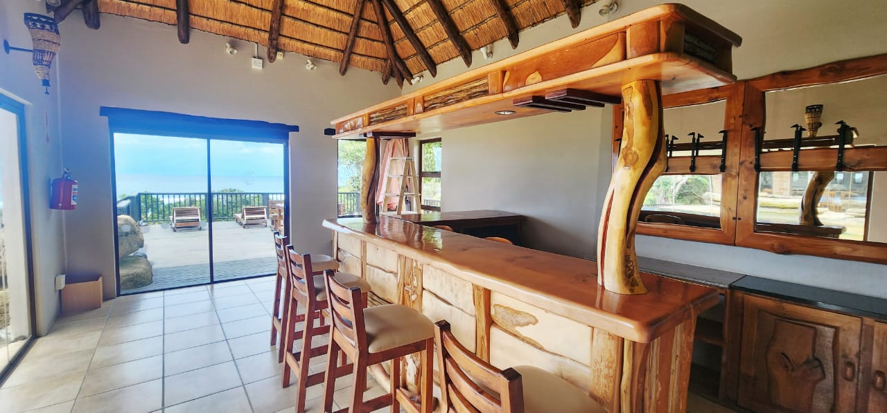 On the lower level of the property is a large double storey building housing 2 and 4 sleeper accommodation, all with ensuite bathrooms and private decks with 'the view'. On the level below that, are the individual duet units also with accommodation for 2 or 4 persons, with ensuite bathroom and private decks. Total accommodation for the hotel is for 54 guests. The separate function hall is to one side of the property and has a dramatic entrance, an entrance foyer, ablutions, and a kitchen, this all opens to the hall which can accommodate over 220 guests, it has a stage and large pane windows across the entire width, boasting the incredible ocean view. This is the absolute perfect venue for a wedding, with ample accommodation plus the availability of nearby accommodation for the guests if necessary., Other uses could include conferences, exhibitions, year end functions, church services, the list goes on.. Above the venue is additional accommodation for the staff, with ablutions and kitchen. The property has security covered with CCTV cameras and armed response service. Other features include a solar system, a generator, a borehole, water tanks, and a small feature dam with a bridge.