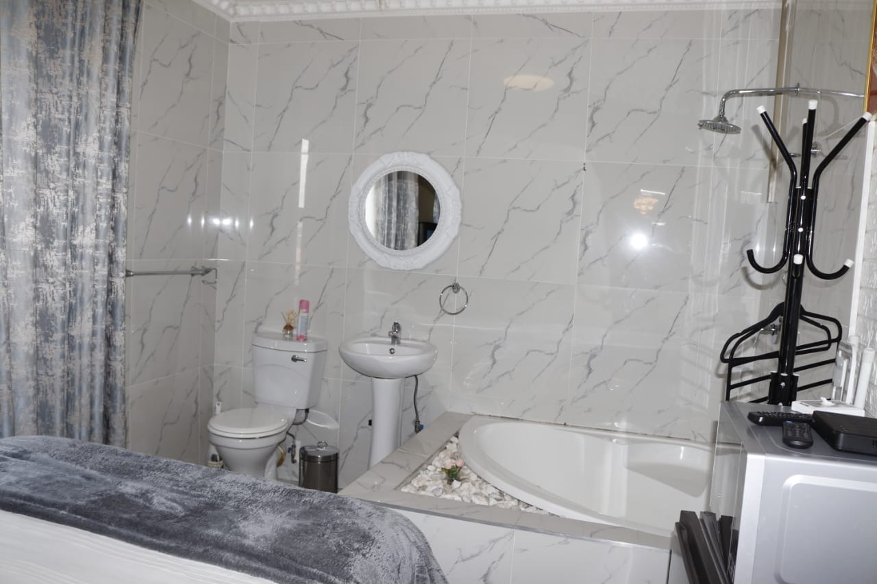 The guesthouse features five beautifully appointed bedrooms, each offering a serene sanctuary for rest and rejuvenation. From the plush bedding to the stylish furnishings, every detail has been thoughtfully curated to ensure a memorable stay for guests. With five luxurious bathrooms, complete with modern fixtures and spa-like amenities, comfort and convenience are paramount.