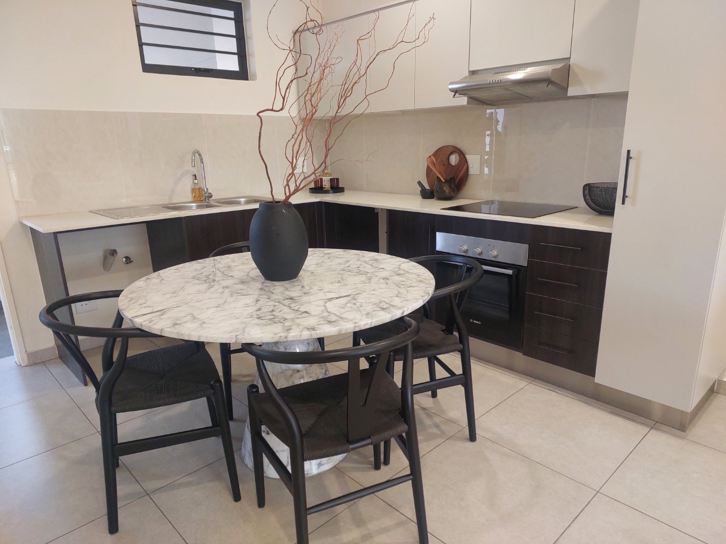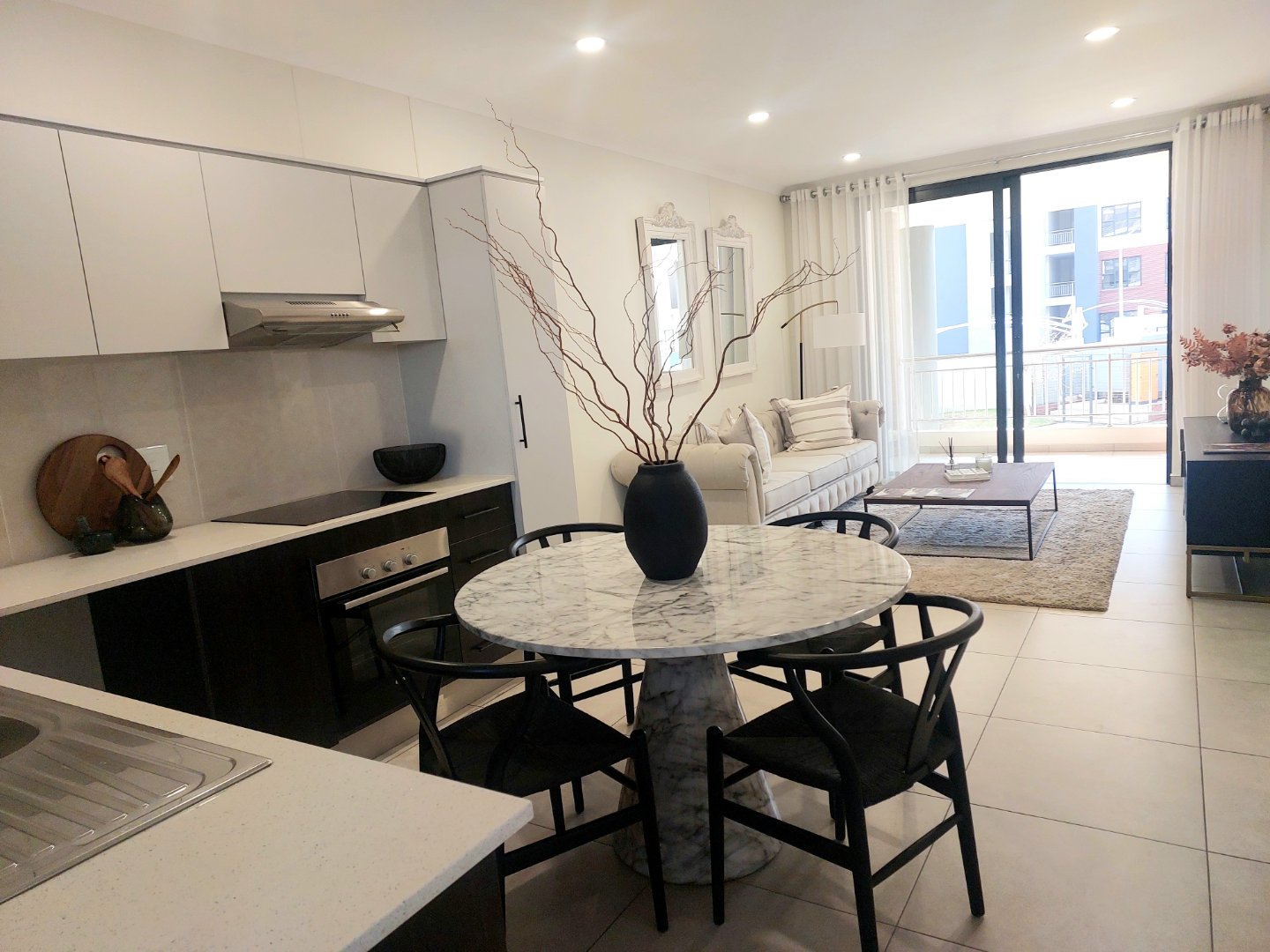 Step into this 72m2 thoughtfully designed designed living space, meet everyday modern living convenience. This stunning 2 bedroom one bathroom unit offer generous proportions, brimming with style and comfort. The kitchen is spacious, with a lovely hob and oven with an extractor fan, fitted with cupboards and Granite tops. A lovely open plan design, opening up with stack doors, onto a sunny, and spacious balcony to, enhance functionality and relaxation. The 2 private bedrooms are light and stylish and spacious, and is fitted with modern cupboards. The fully fitted bathroom is stylish, and designed for full functionality. Offers a modern bath, shower, basin and toilet.