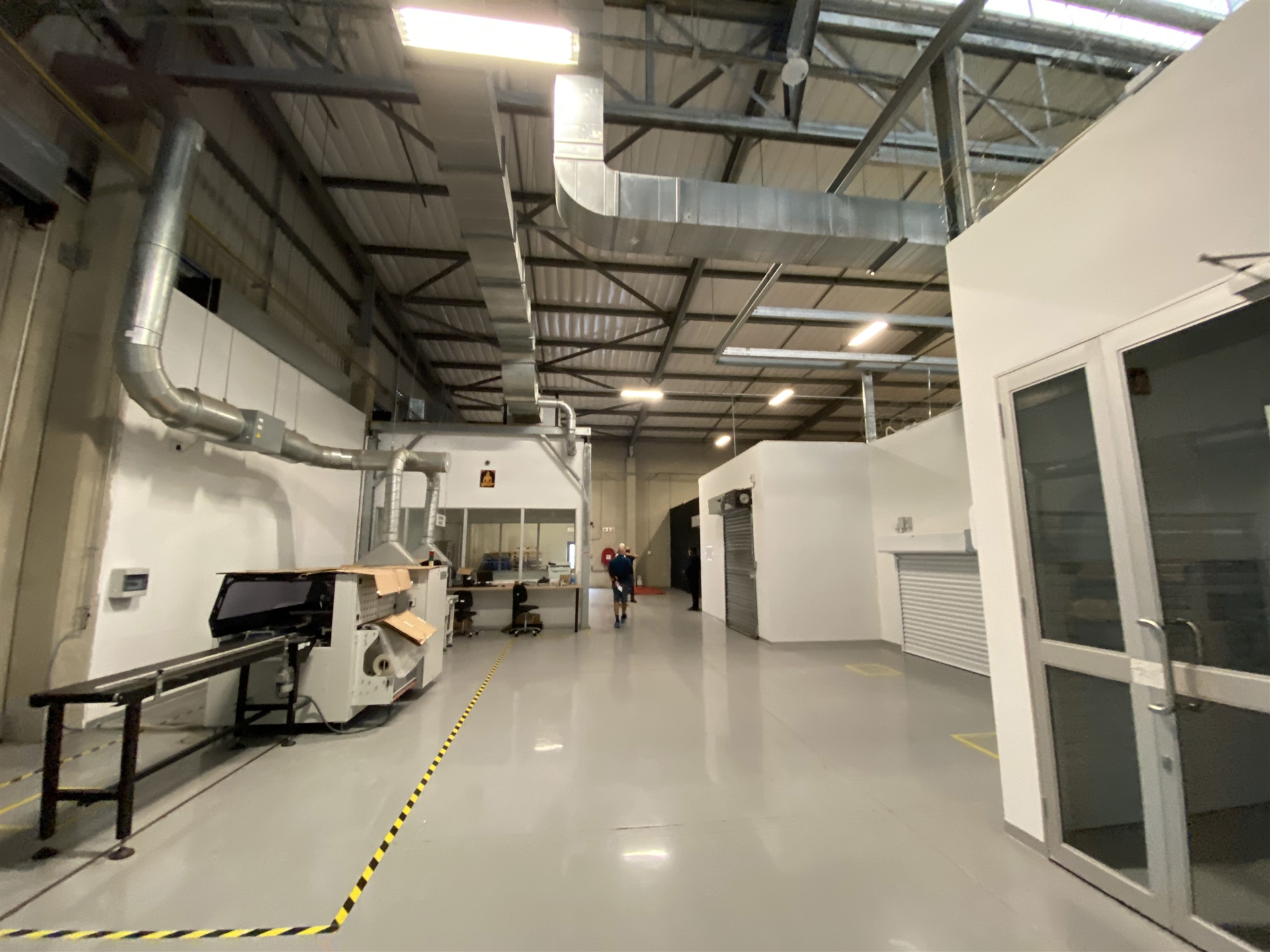 The factory and offices are located in a secure industrial park with 24/7 access control in a gated area. Situated in the Dube Trade Port Special Economic Zone near King Shaka International Airport, this location provides excellent protection for your assets and operations. Easily reachable via the M4 and N2 highways, the site features 600KvA power supply, 1 dock leveller, 3 on-grade roller shutter doors, a flammable store, epoxy floor finishes, staff ablutions, locker rooms, canteen, and a triple net lease.