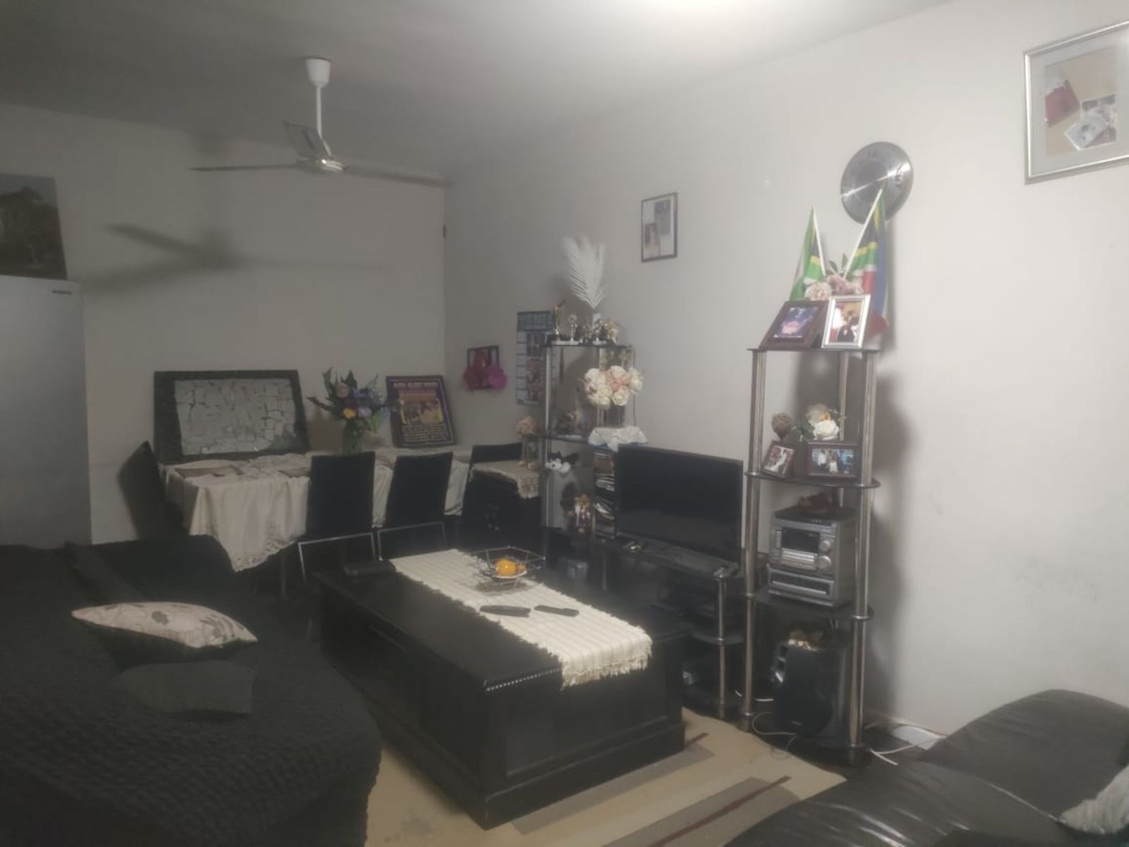 Tiled Floors, Fan, Built-in Cupboards, King Bed, Curtain Rails