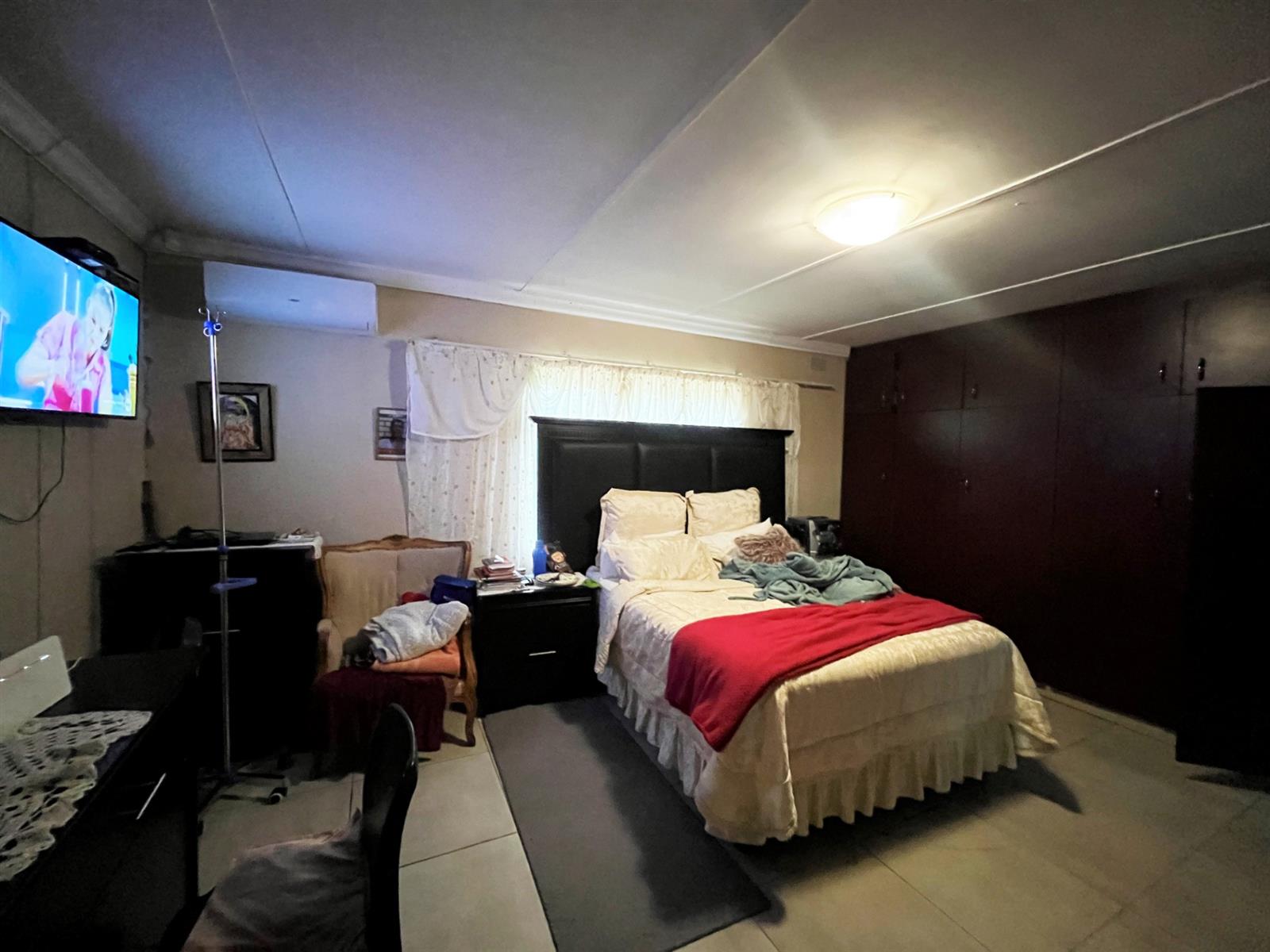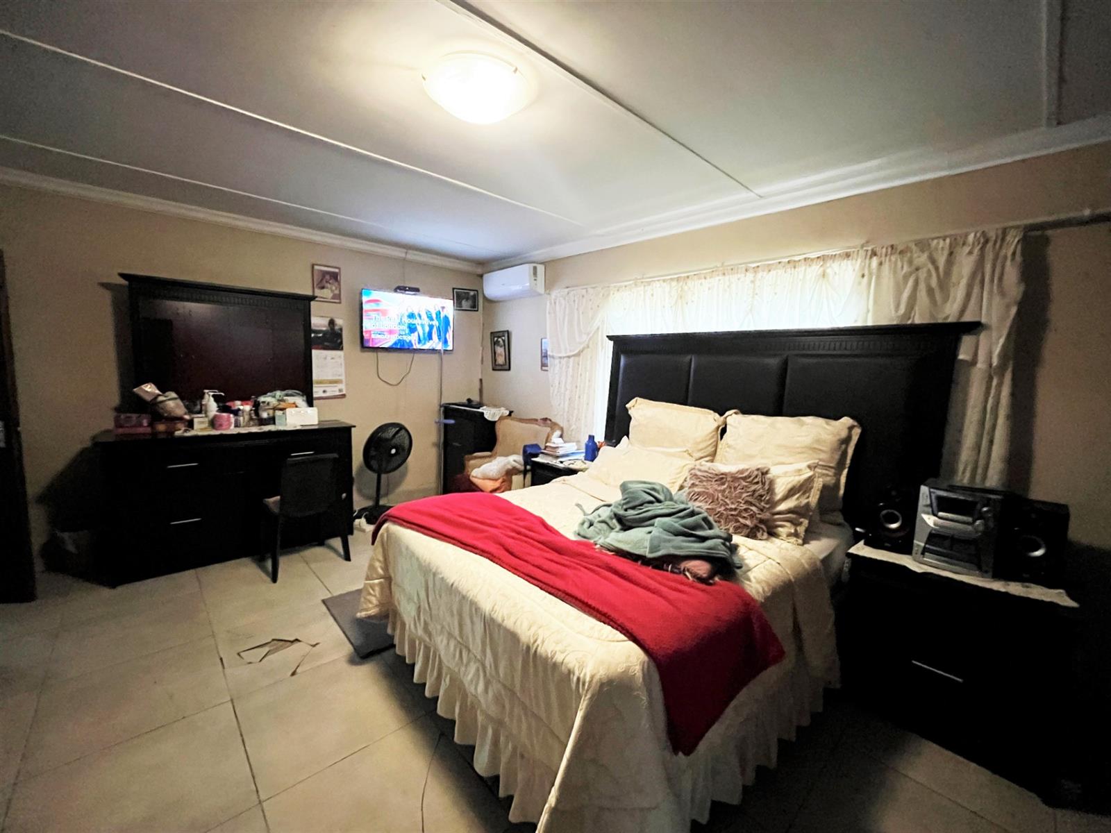 The master bedroom comes equipped with an air conditioner, while the home is secured with beams and an ADT alarm system.