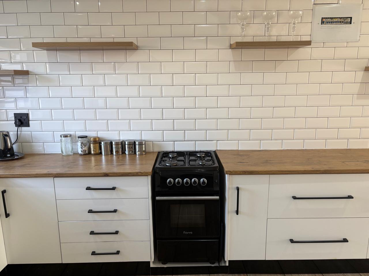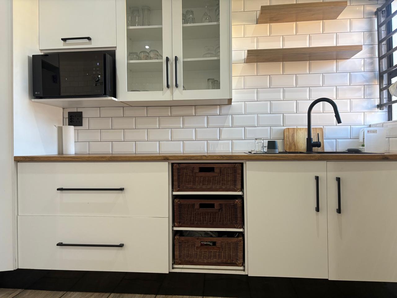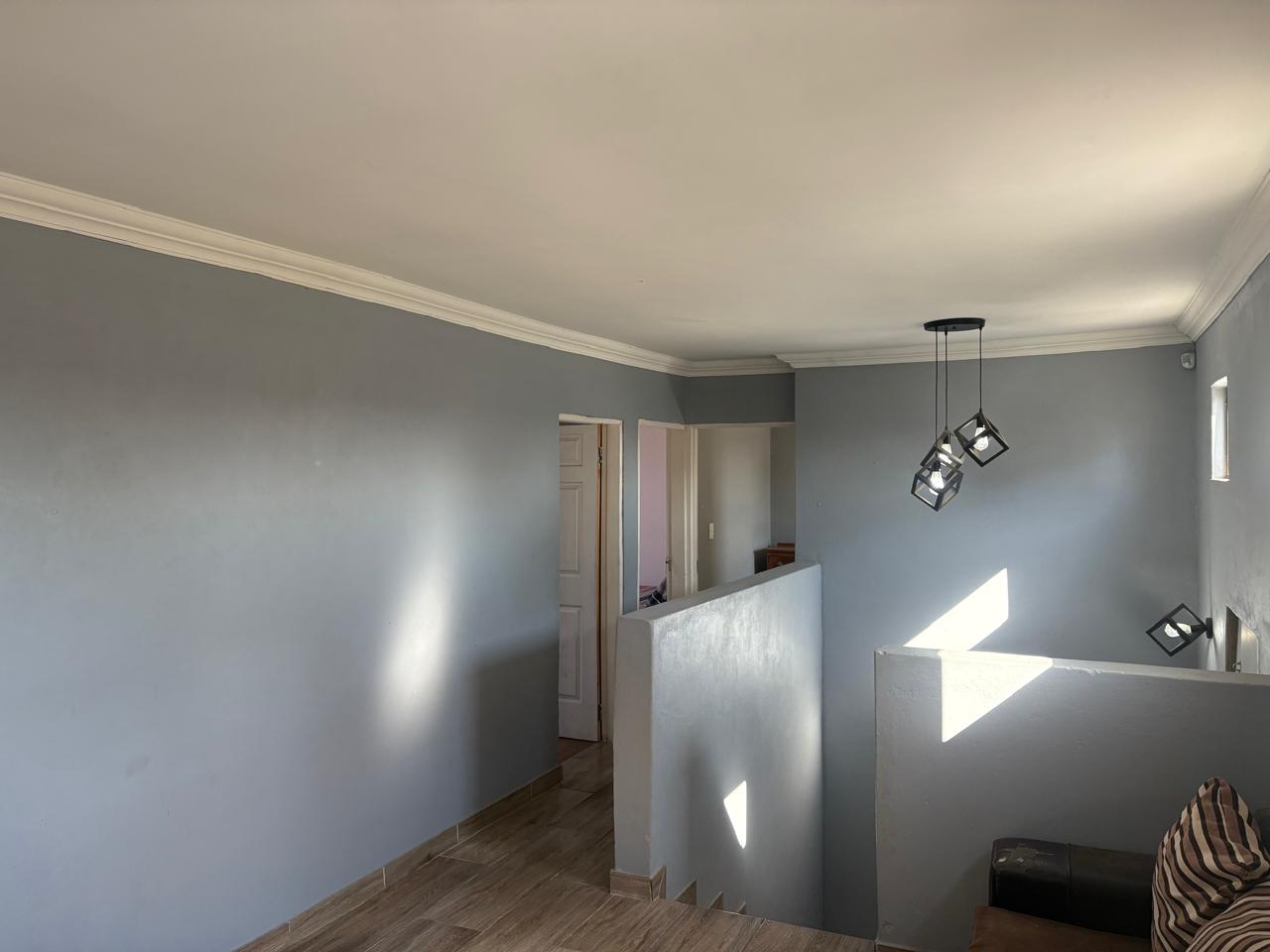 The ground floor features a spacious open-plan layout that seamlessly integrates the lounge and dining areas, creating an inviting space for family gatherings and entertaining guests. The ultra-modern kitchen is a chef's dream, equipped with a sleek gas stove and ample storage. This level also includes two well-sized bedrooms and a contemporary bathroom complete with a bathtub, offering convenience and comfort for the entire family.