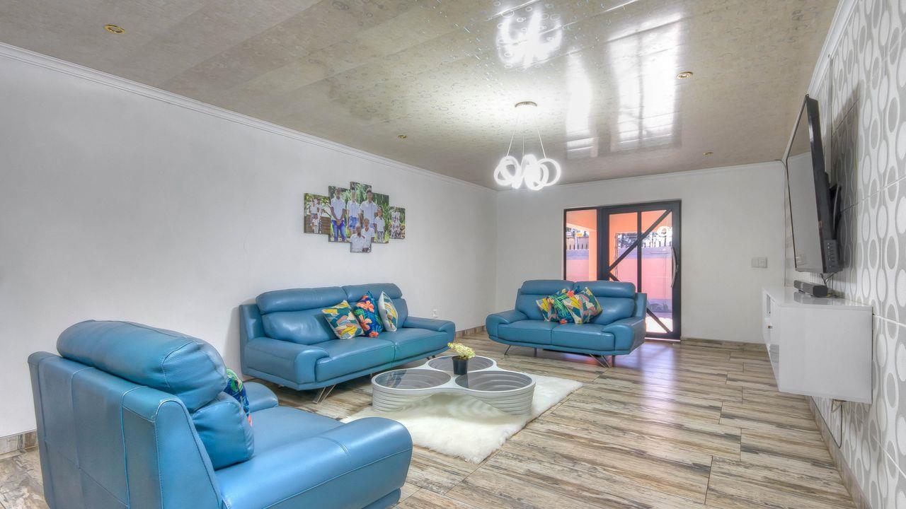 Lapa for entertaining with power and built in braai overlooking the pool.