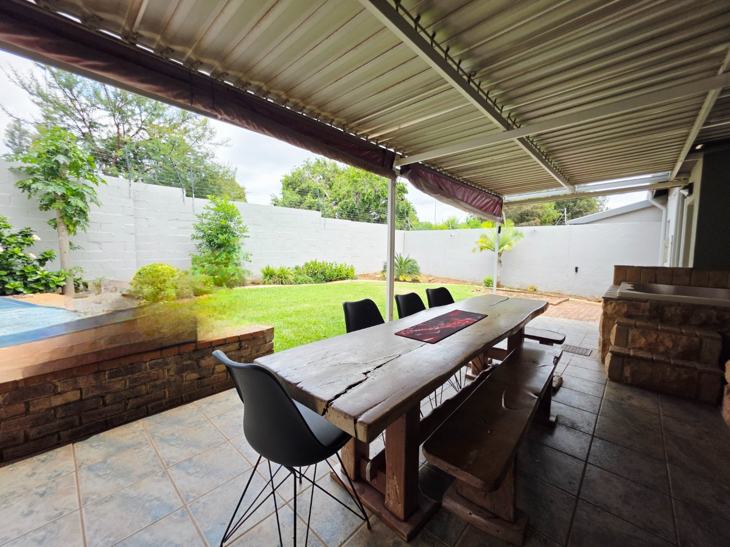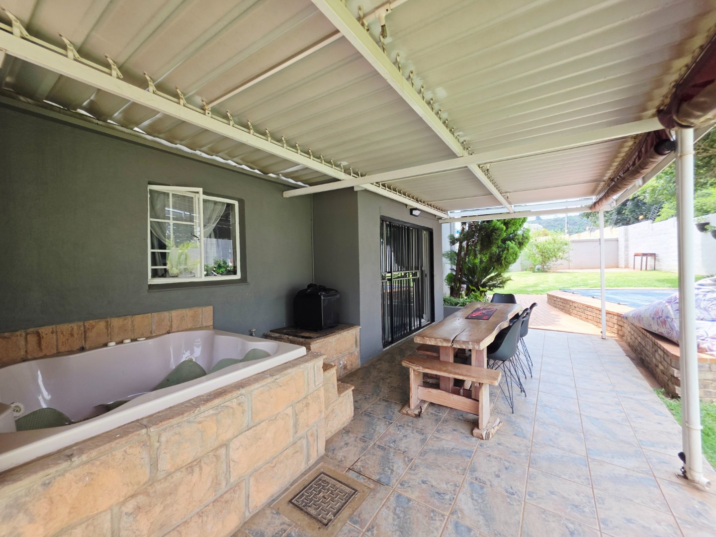 * Undercover patio overlooking the beautiful garden and swimming pool.