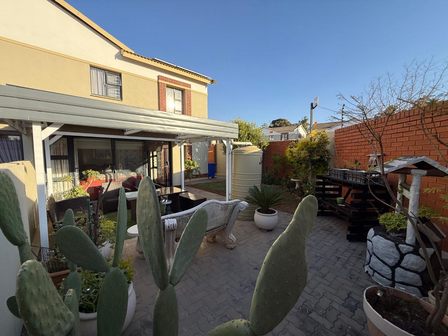 Part paved, part lawned backyard, offering the perfect balance of low-maintenance living and greenery—making it an ideal outside retreat