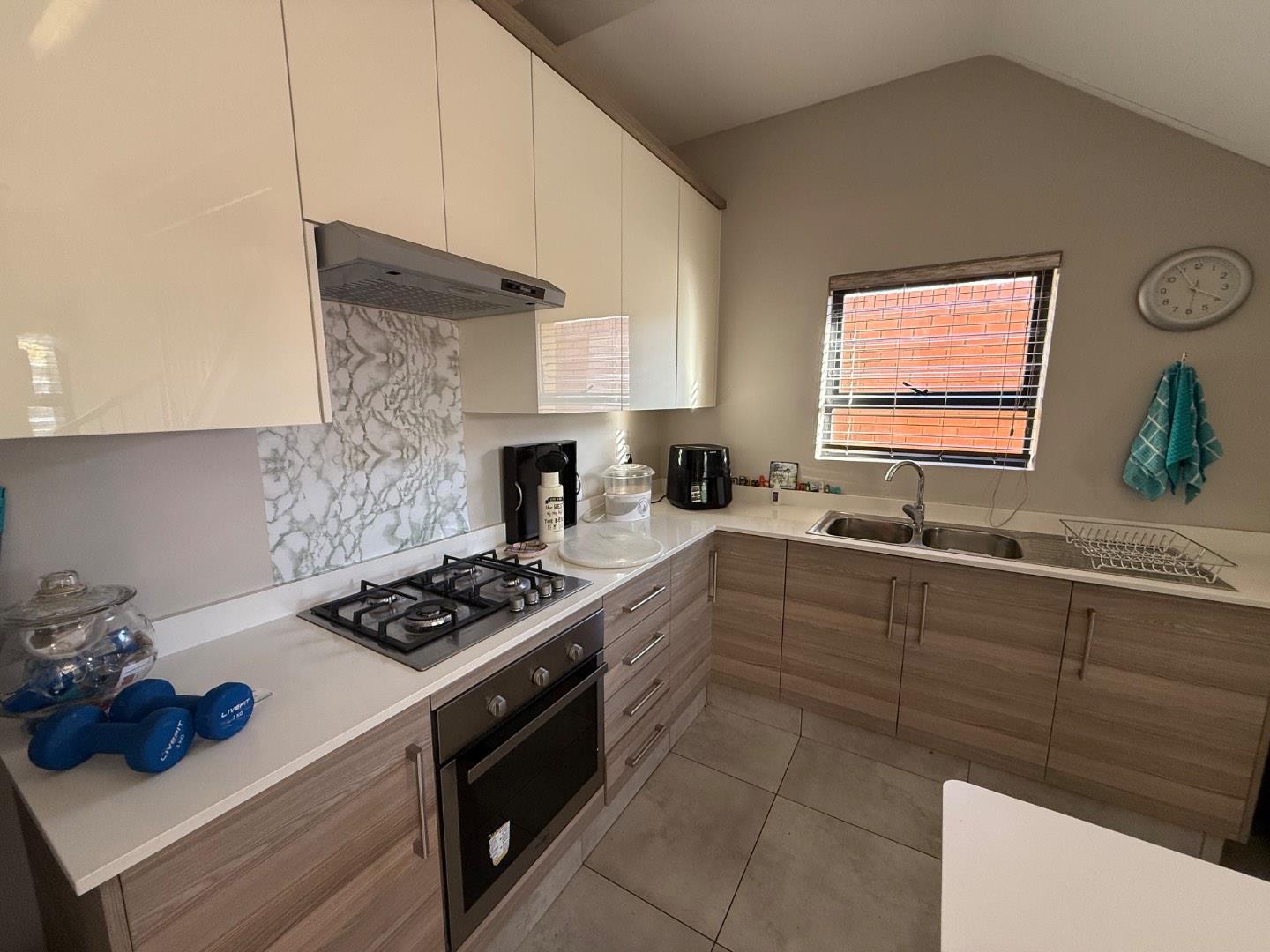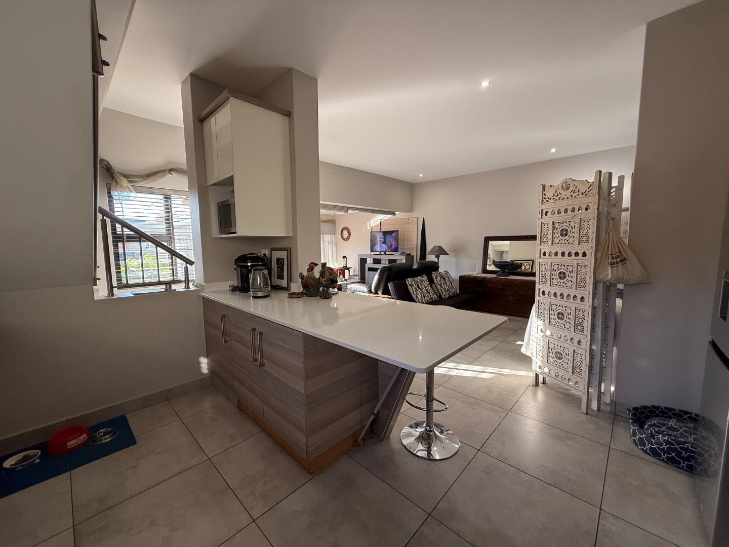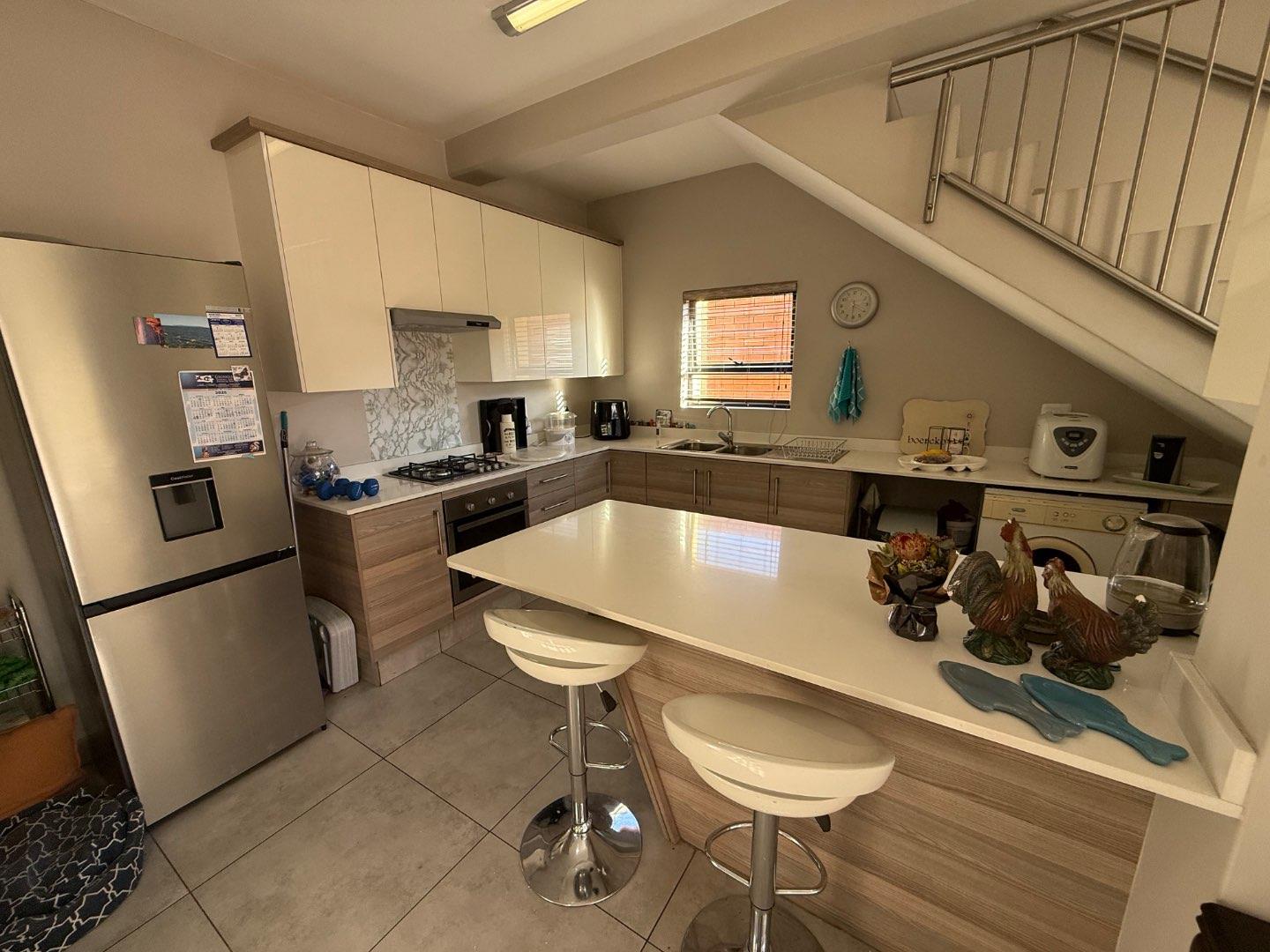 The ground floor welcomes you with a spacious, open-plan living and dining area that flows effortlessly—ideal for everyday living and entertaining. The contemporary kitchen is both stylish and practical, featuring ample cabinetry, space for a double-door fridge, and plumbing for two front-load appliances. A guest toilet is conveniently located on this level for visiting guests.