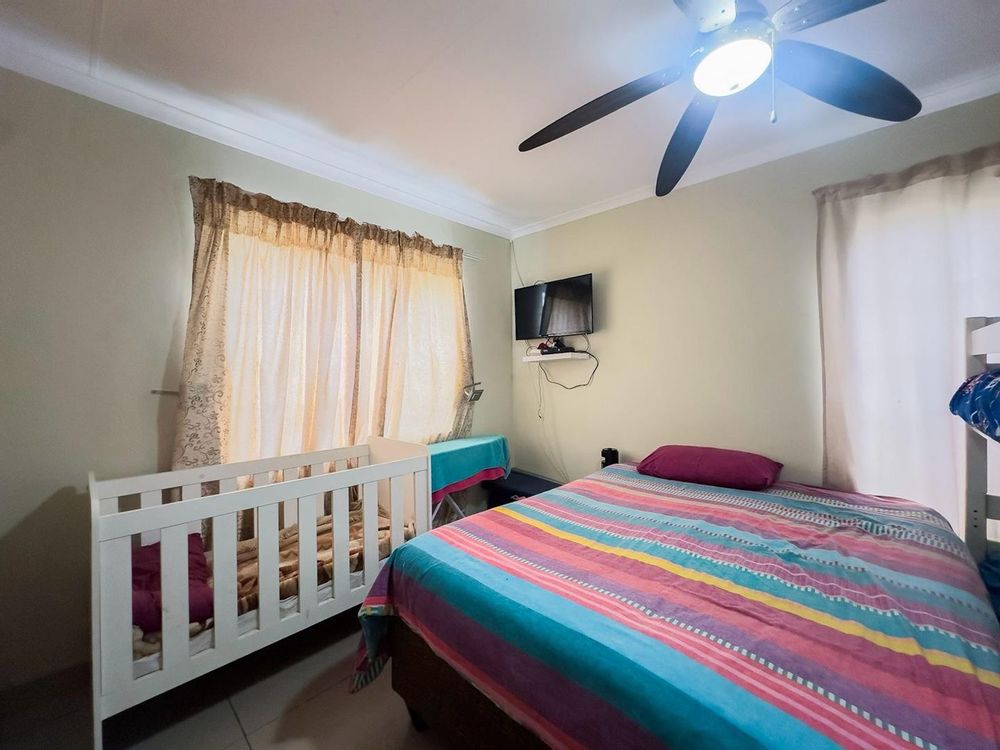There is an Open Plan Kitchen with granite tops and ample cupboard space that leads to the Lounge and Dining Area. This estate offers 24/7 security and a park.