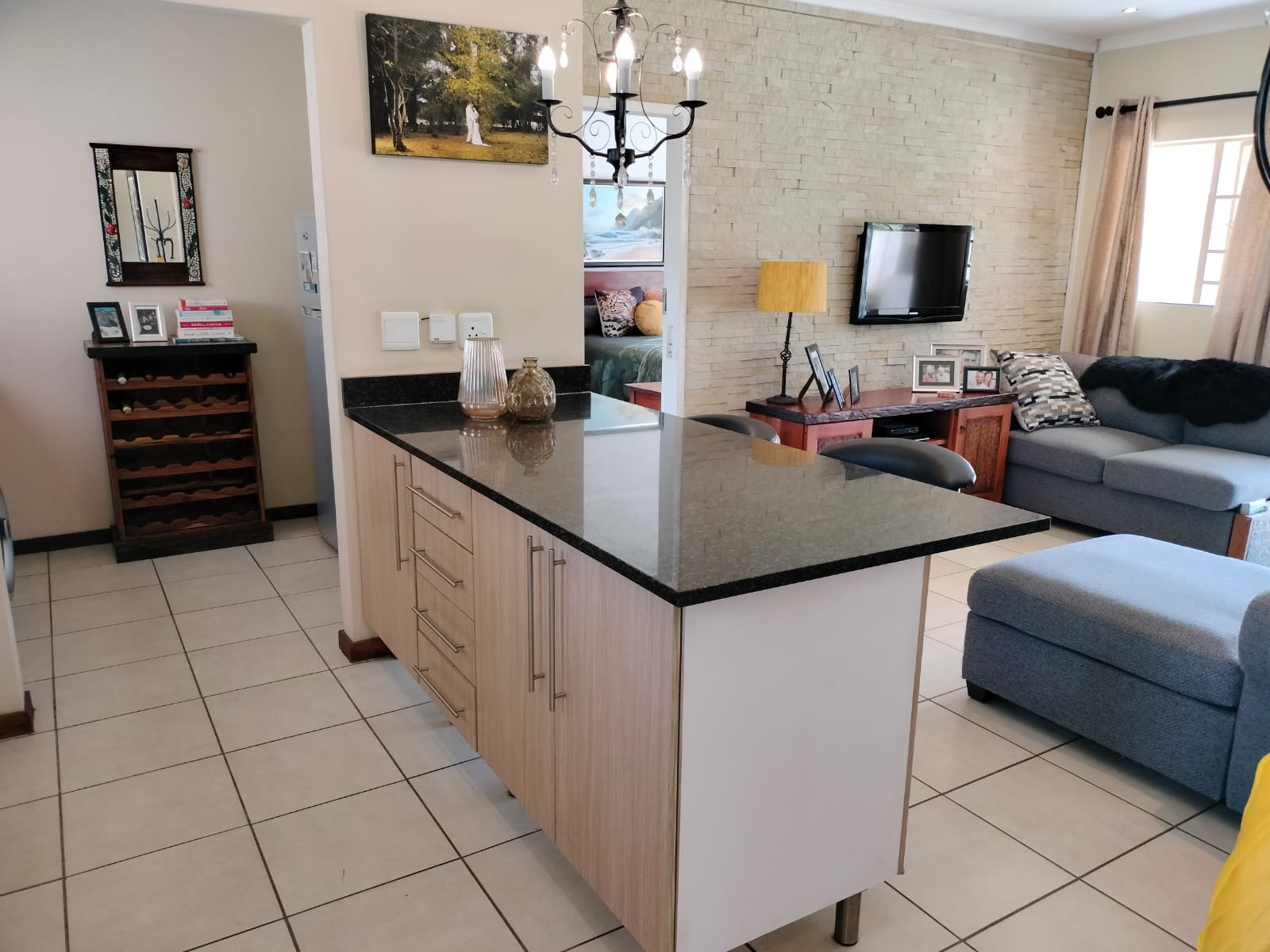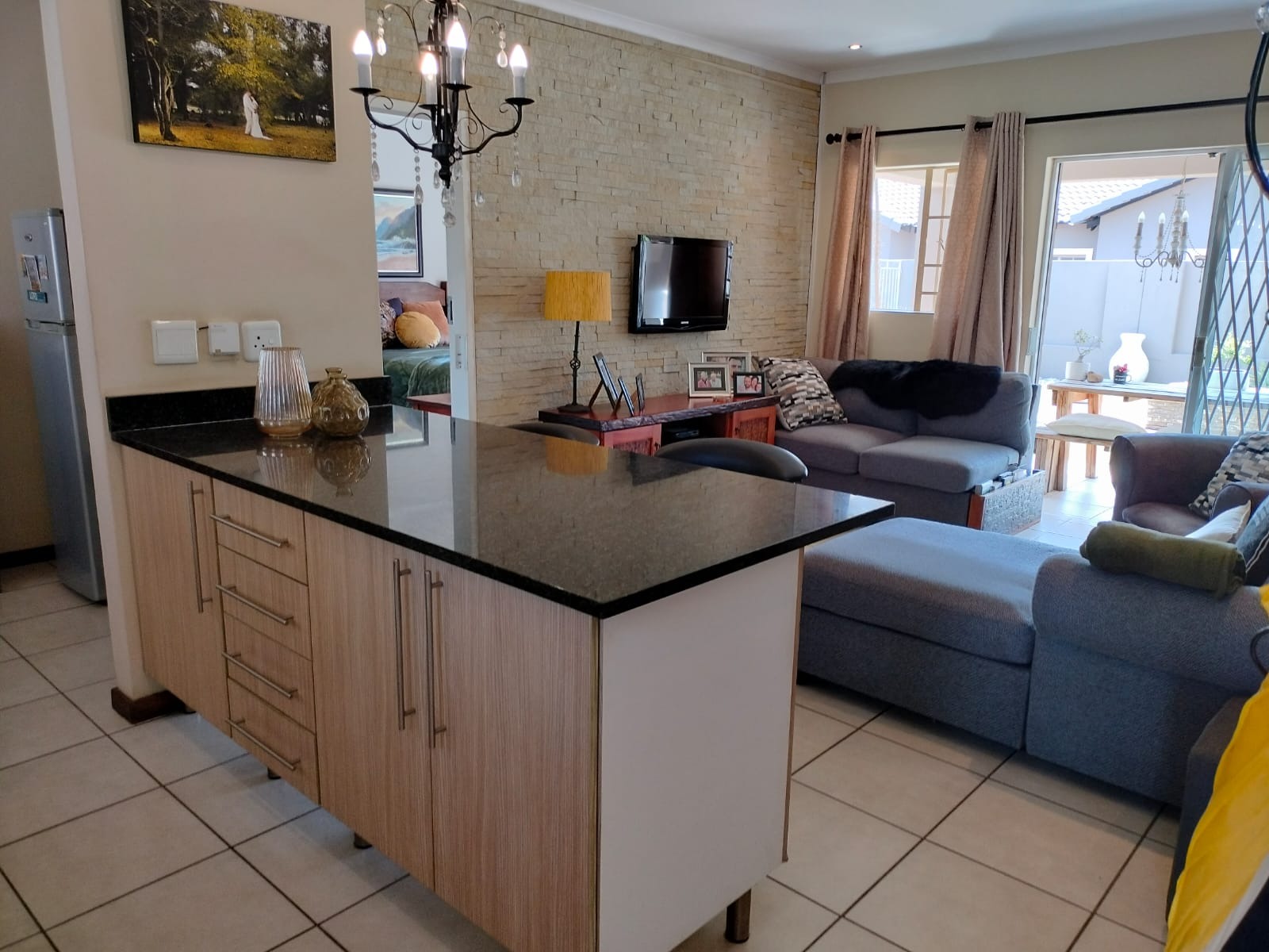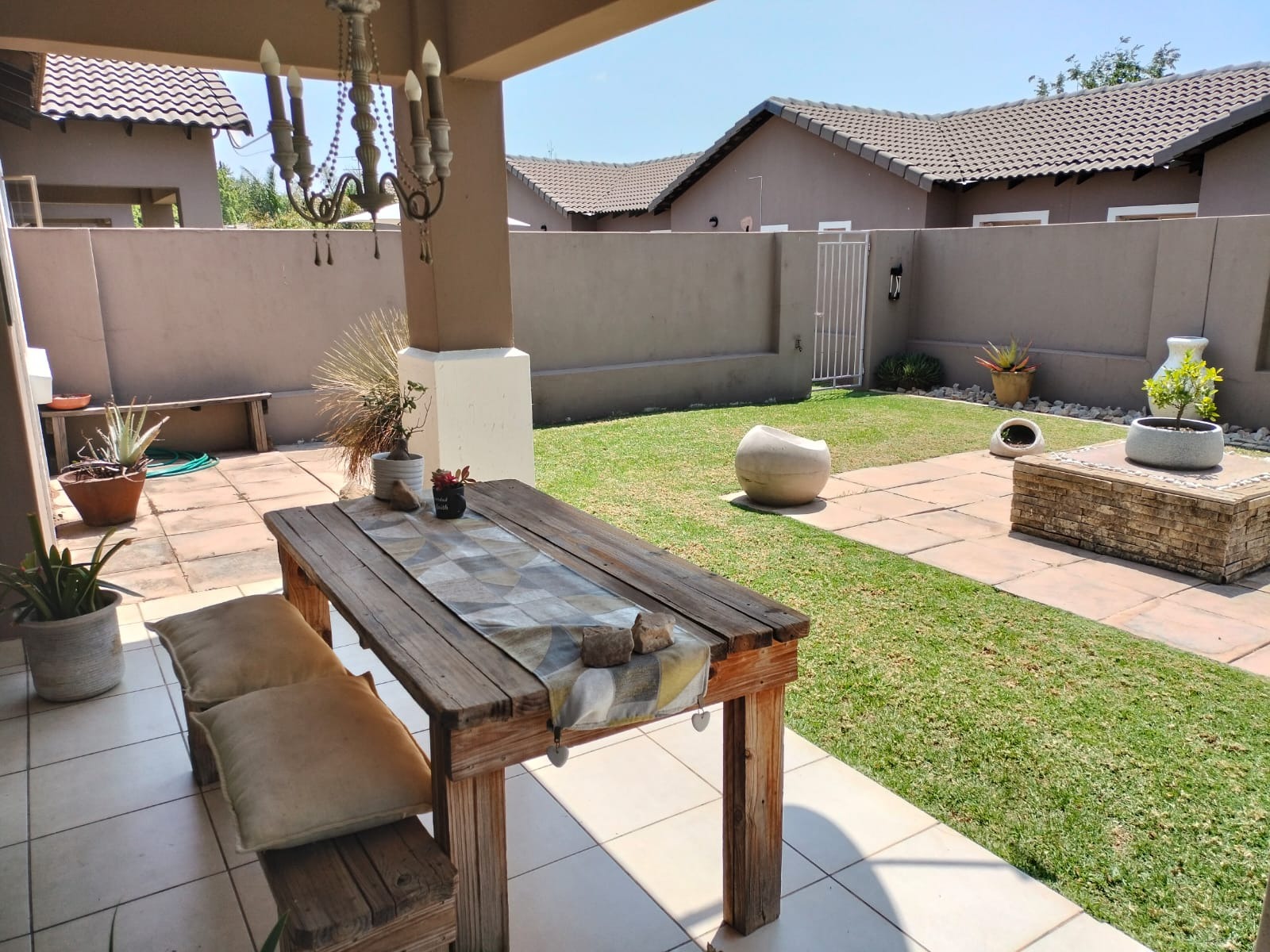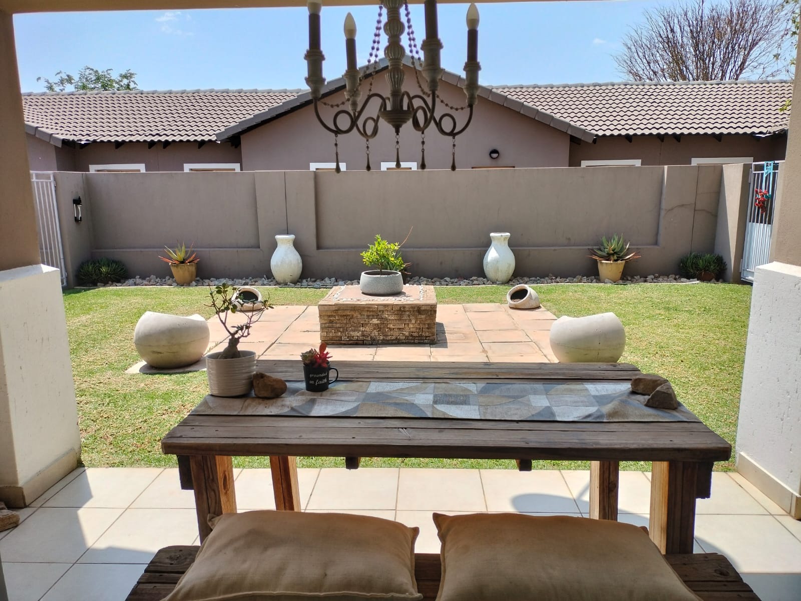SOLE Mandate: This modern townhouse offers simple living. Situated in a security complex with 24 hour security. This unit welcomes you with open plan kitchen with modern fittings and fixtures. Granite tops, built in cupboards, breakfast nook, separate washing up room, with space for two appliances. Open plan lounge area overlooking the covered patio and well maintained garden. The complex is pet friendly on approval of body corporate.