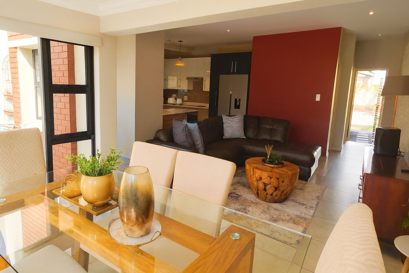 Welcome to this beautifully designed 4-bedroom home nestled in a modern complex that blends contemporary convenience with rustic charm. This spacious residence offers 2 full bathrooms, a convenient guest toilet, and an open-plan layout that seamlessly connects the kitchen, lounge, and dining areas — perfect for both everyday living and entertaining.