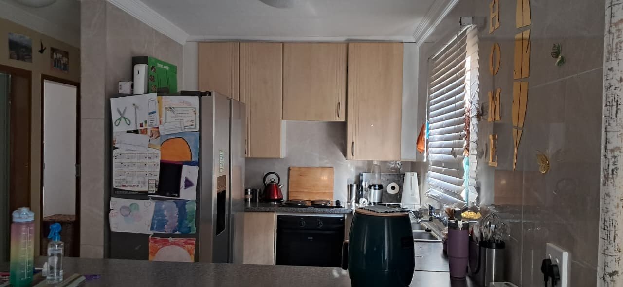 This beautifully presented home welcomes you with a stylish open-plan kitchen, featuring generous cupboard space, a built-in stove, and dedicated space for both a washing machine and refrigerator. The kitchen flows effortlessly into a spacious and sun-filled lounge, creating a sophisticated yet comfortable living environment.