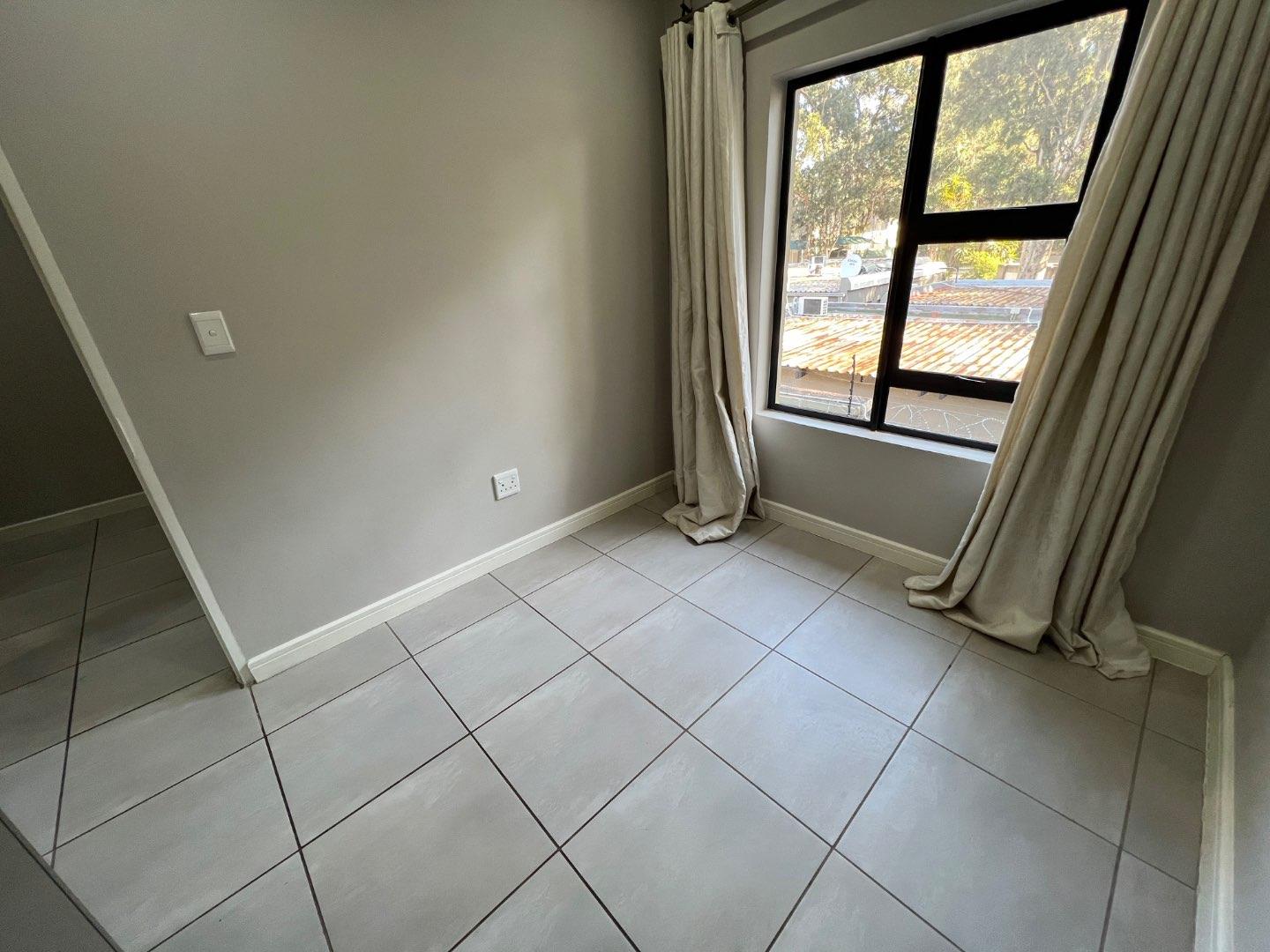 Upstairs, the spacious main bedroom is fitted with built-in cupboards, offering ample storage. Adjacent to the main bedroom is a second, smaller bedroom, also equipped with built-in cupboards, making it ideal for a guest room or home office.