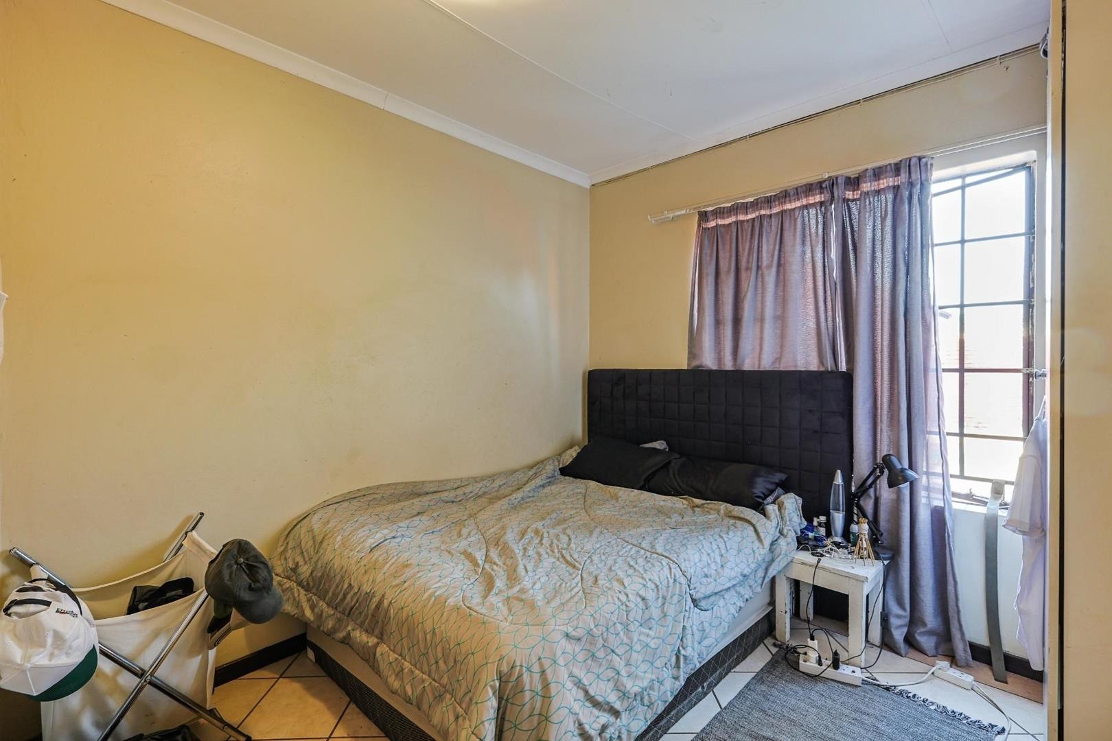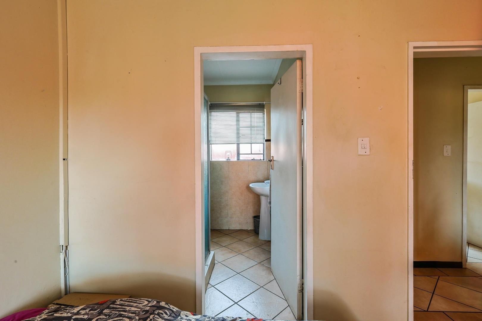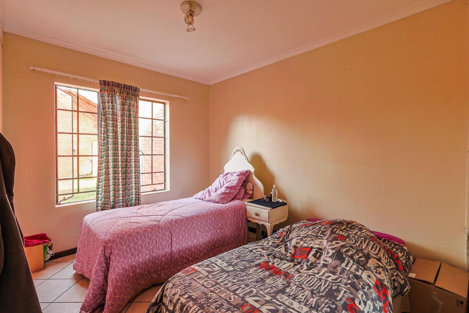 The home boasts two bedrooms with built-in cupboards. The main bedroom features an en-suite bathroom with a shower, while the second bathroom offers a full-size bath — ideal for families or guests. A handy linen cupboard provides extra storage space for bedding and towels.