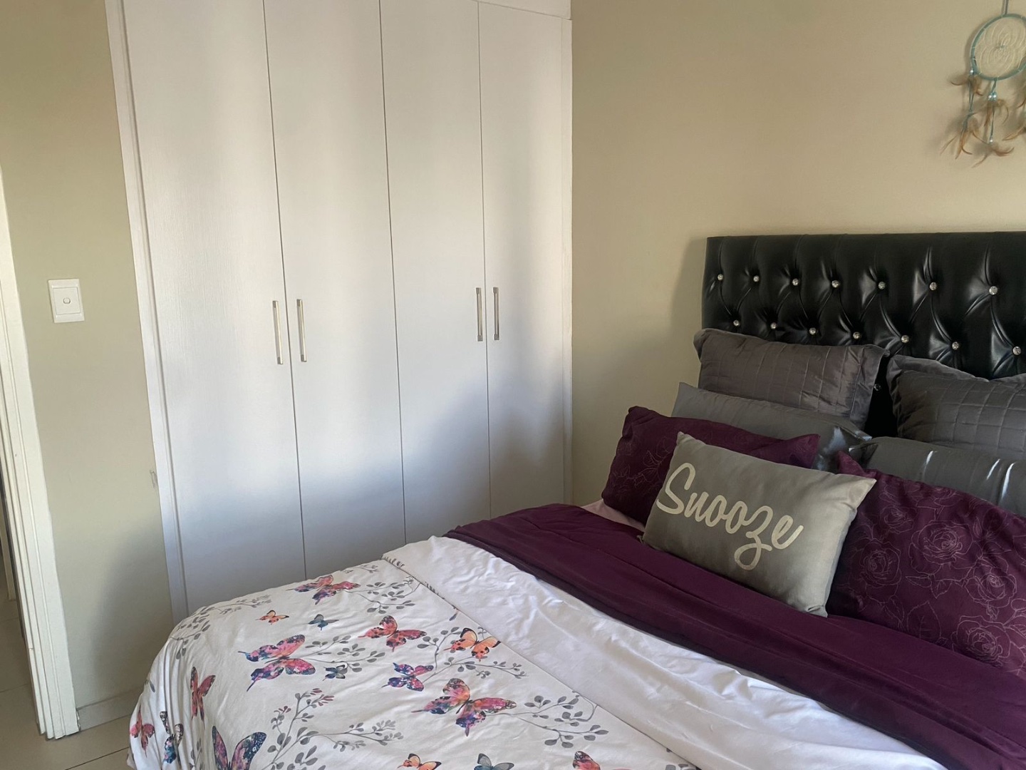 Spacious bedroom with built-in cupboards