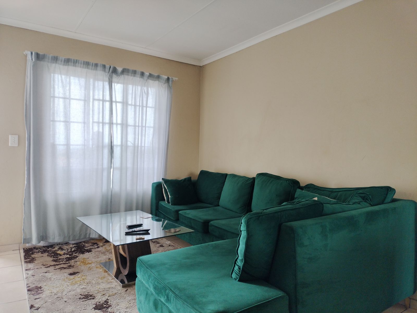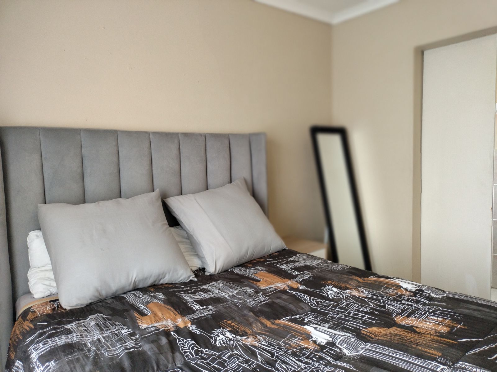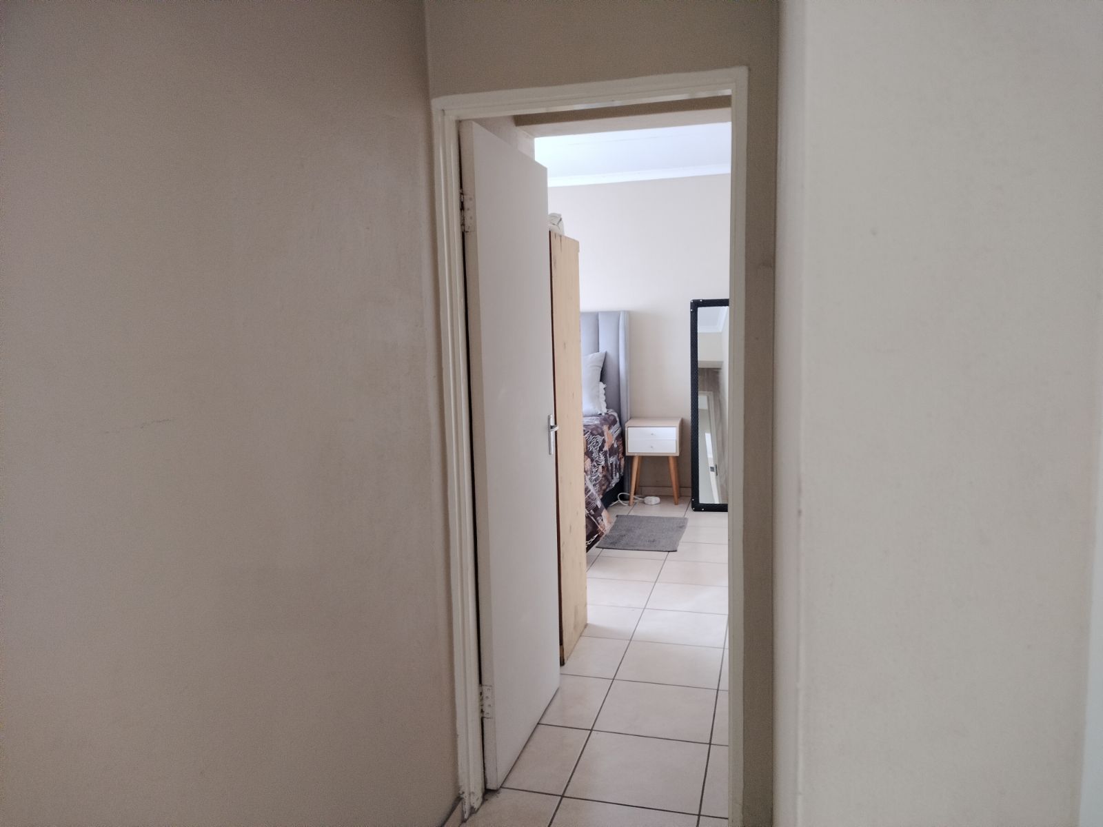 This neat, north-facing upstairs apartment offers a comfortable blend of space, natural light and practical design. Accessed through a secure burglar gate, the home opens into a spacious open-plan lounge and dining area, creating an inviting flow for everyday living.The open-plan kitchen features a breakfast nook, a stove with oven and extractor hood, as well as space for two appliances and a double-door fridge, making it ideal for modern convenience. A linen cupboard is thoughtfully positioned along one of the two passages, providing easy access for all occupants.