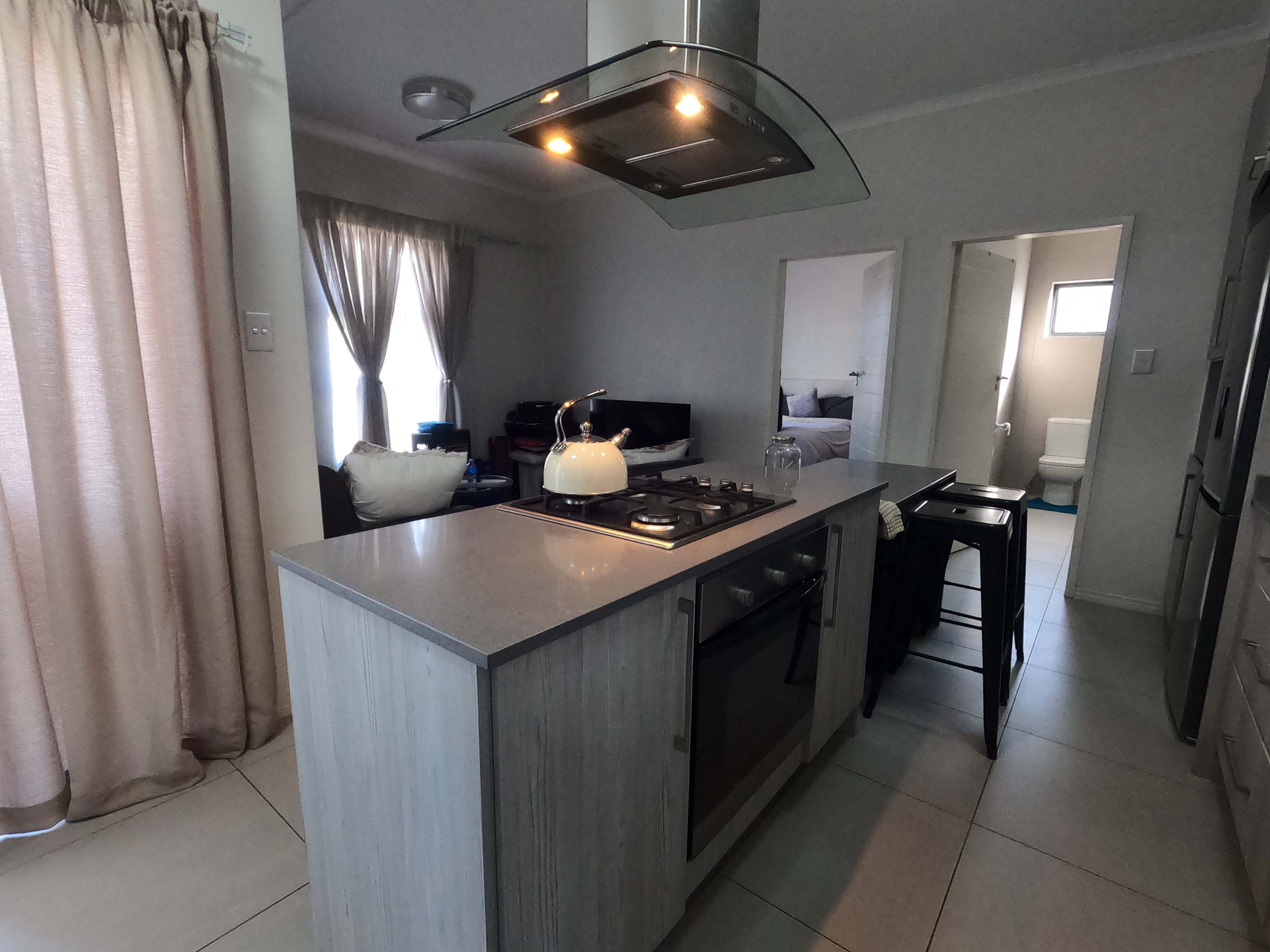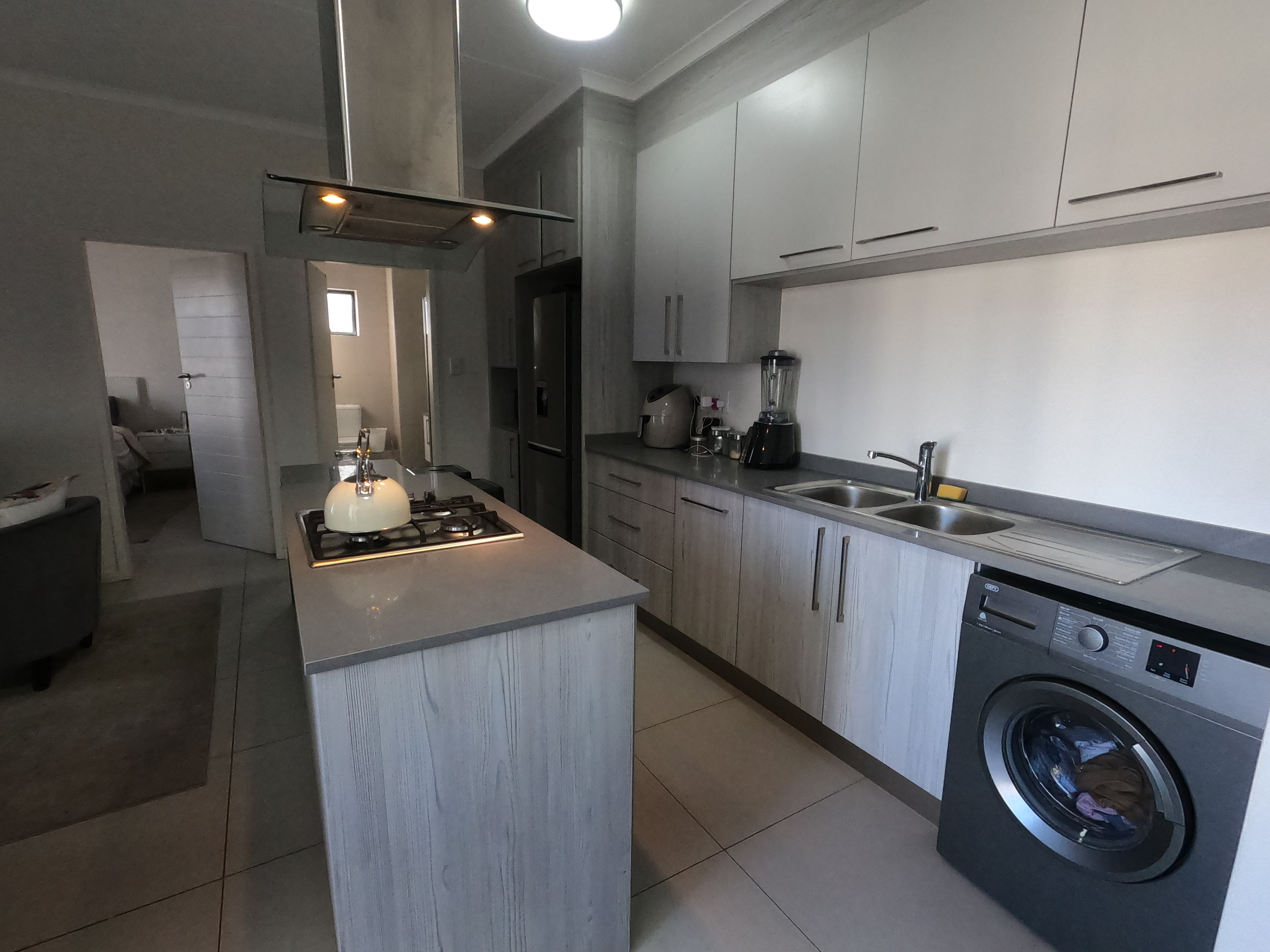 As you enter, you're welcomed by an open-plan living space that connects the kitchen and lounge—perfect for both relaxing and entertaining. The contemporary kitchen features sleek cabinetry, generous counter space, and quality finishes, providing a practical yet modern space for cooking and dining.