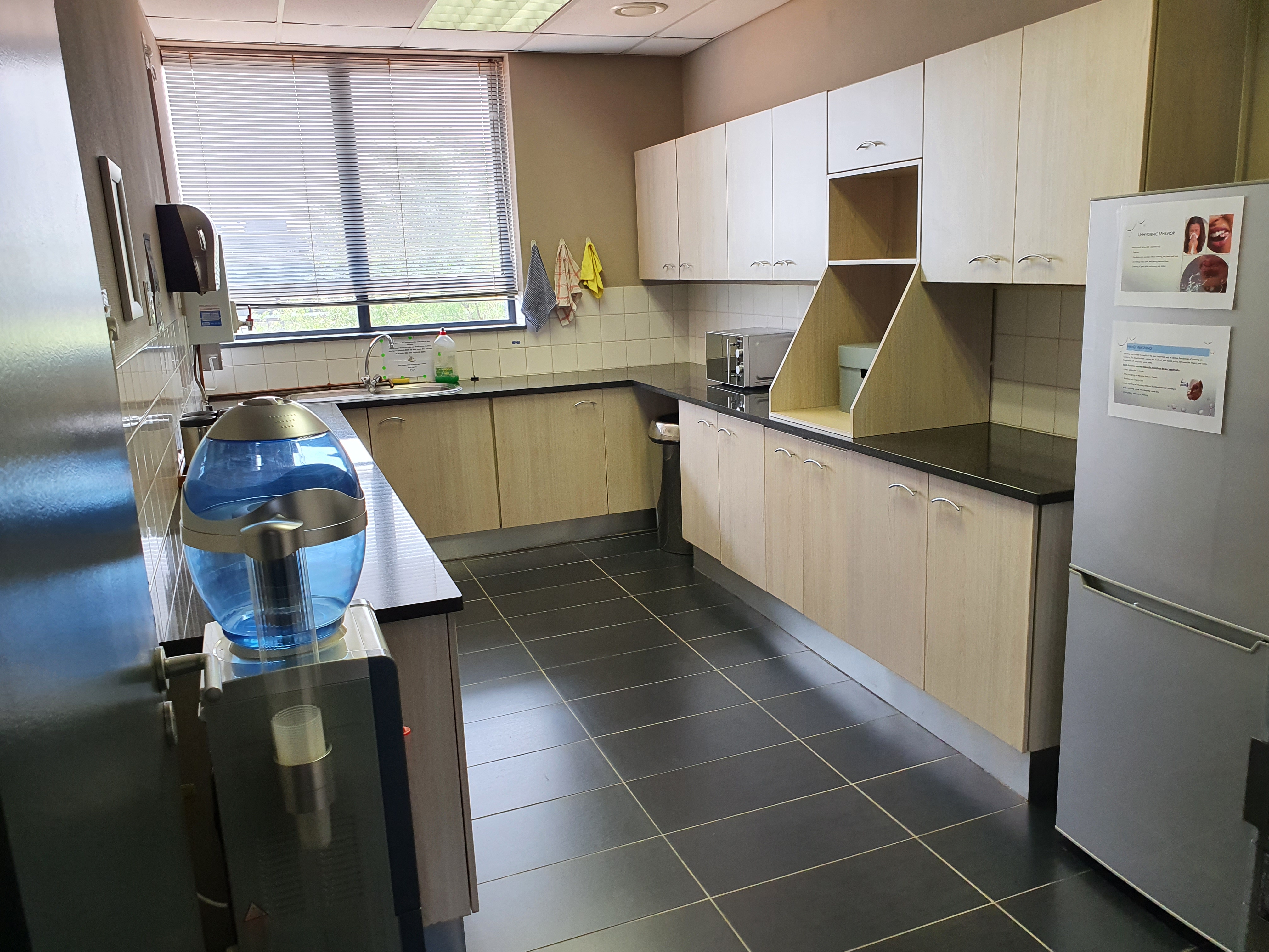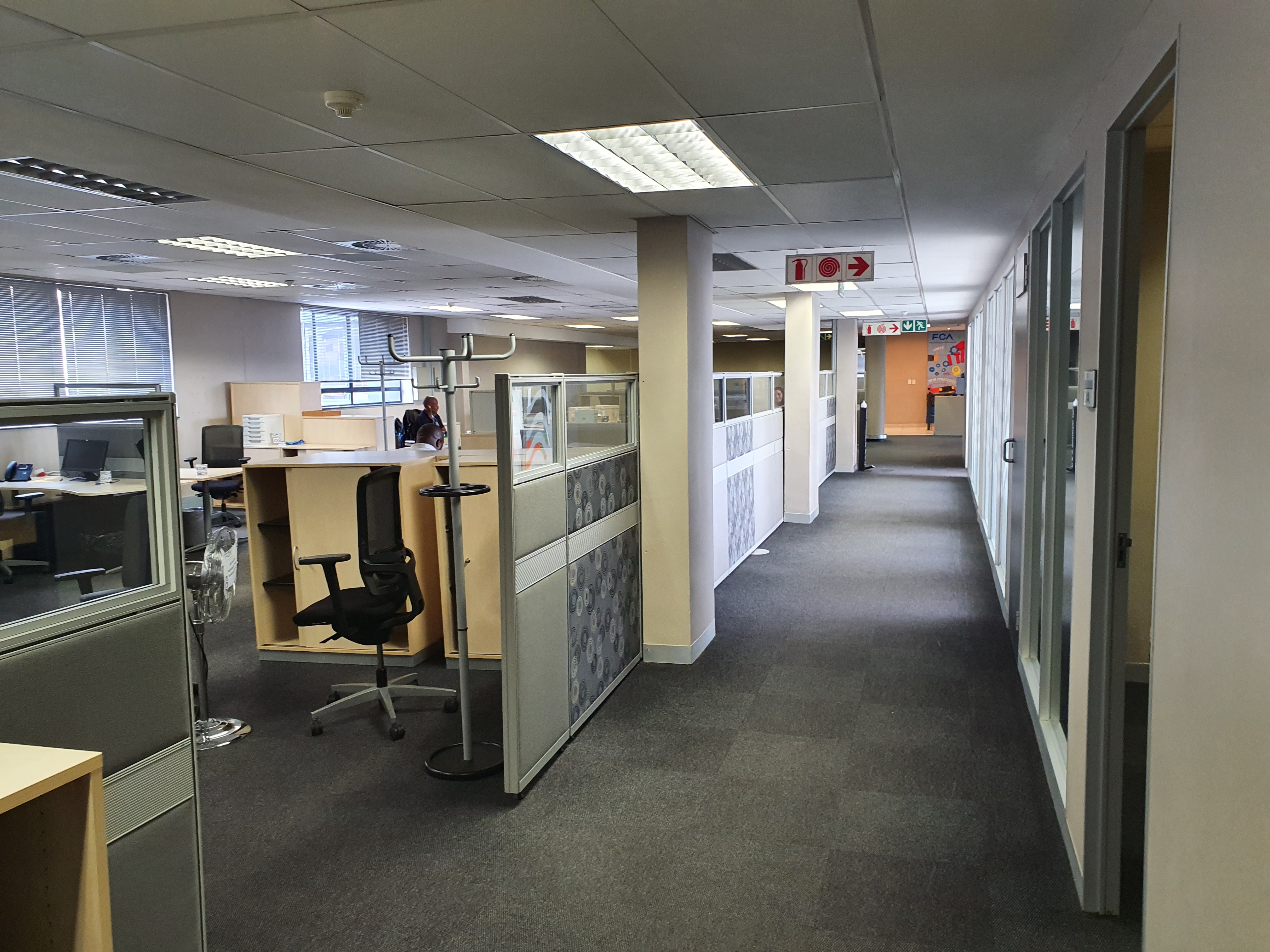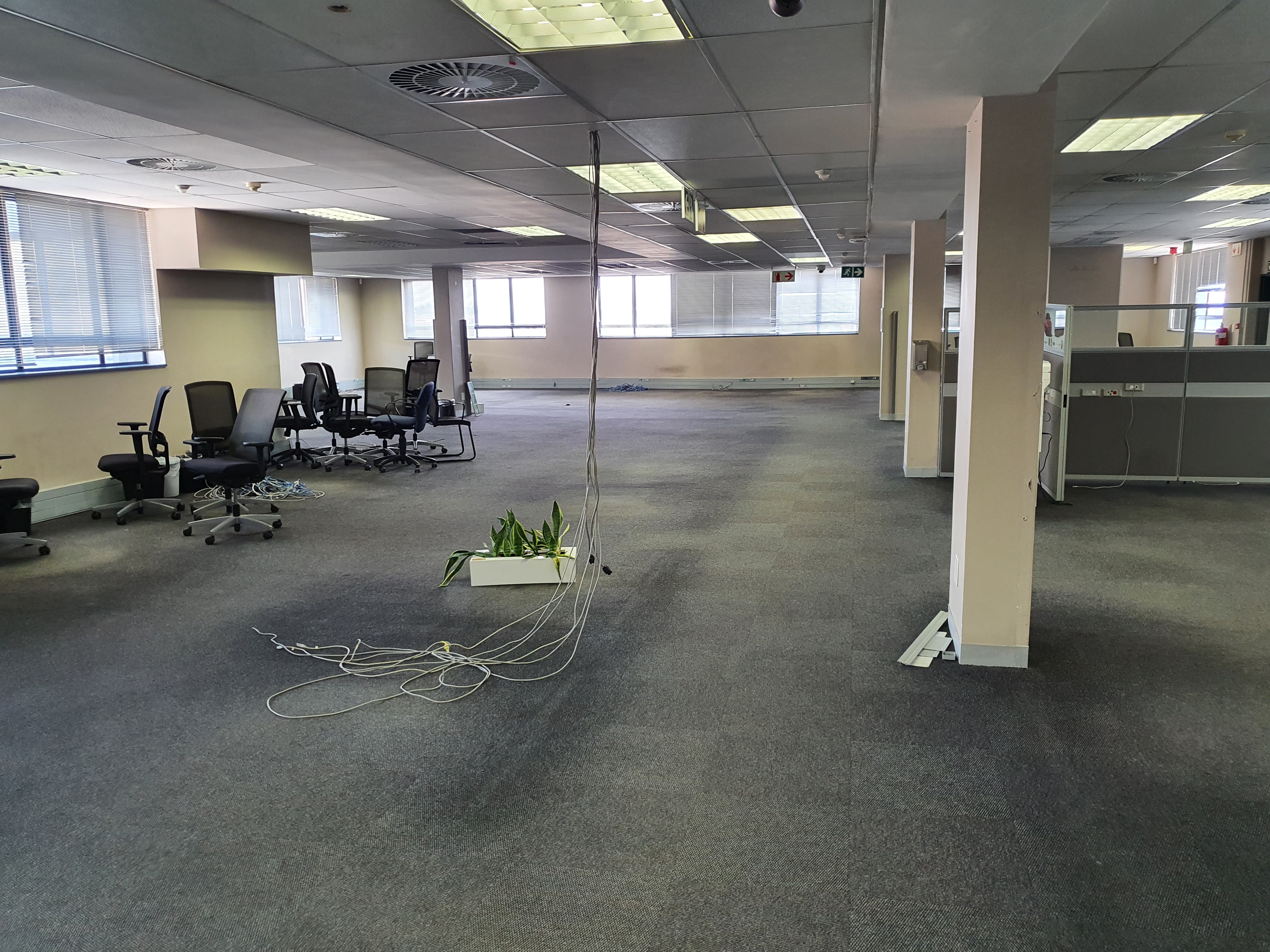 It is made up of single & open-plan offices on the second floor with a reception, large boardroom; meeting rooms, 1 server rooms, 2 sets of ablutions & 2 kitchens. There is a back-up generator & UPS, as well as back-up water on site. Staff breakaway area is provided next to the 2 canteens. The basement has access controlled parking. There is also a lift from the basement serving both floors. Outside there is shade net & open parking.