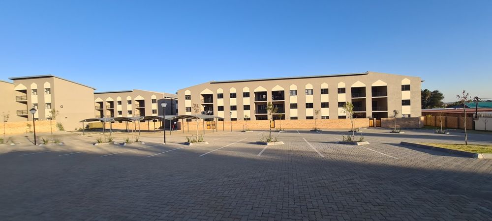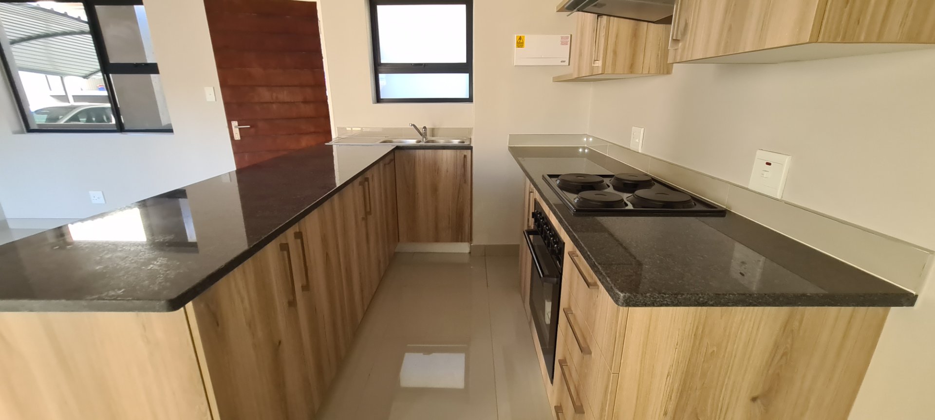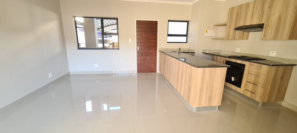 2 spacious, fully tiled bedrooms with built-in cupboards, main bedroom includes a sleek en-suite bathroom.