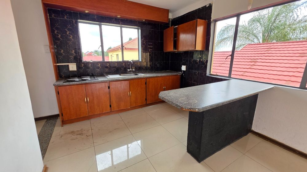 This is a comfortable & maintained upstairs unit which offers 2 spacious bedrooms and 1 bathroom, with a shower, toilet & basin, designed for comfortable living. The open plan lounge flows seamlessly into a fitted kitchen equipped with built in cupboards and an electric stove, creating a functional and inviting space perfect for everyday life and entertaining. One of the bedrooms features built in cupboards, providing generous storage, while fully prepaid electricity and water ensure convenient, stress-free living. The unit is situated upstairs with a dedicated parking space, offering both privacy and security.