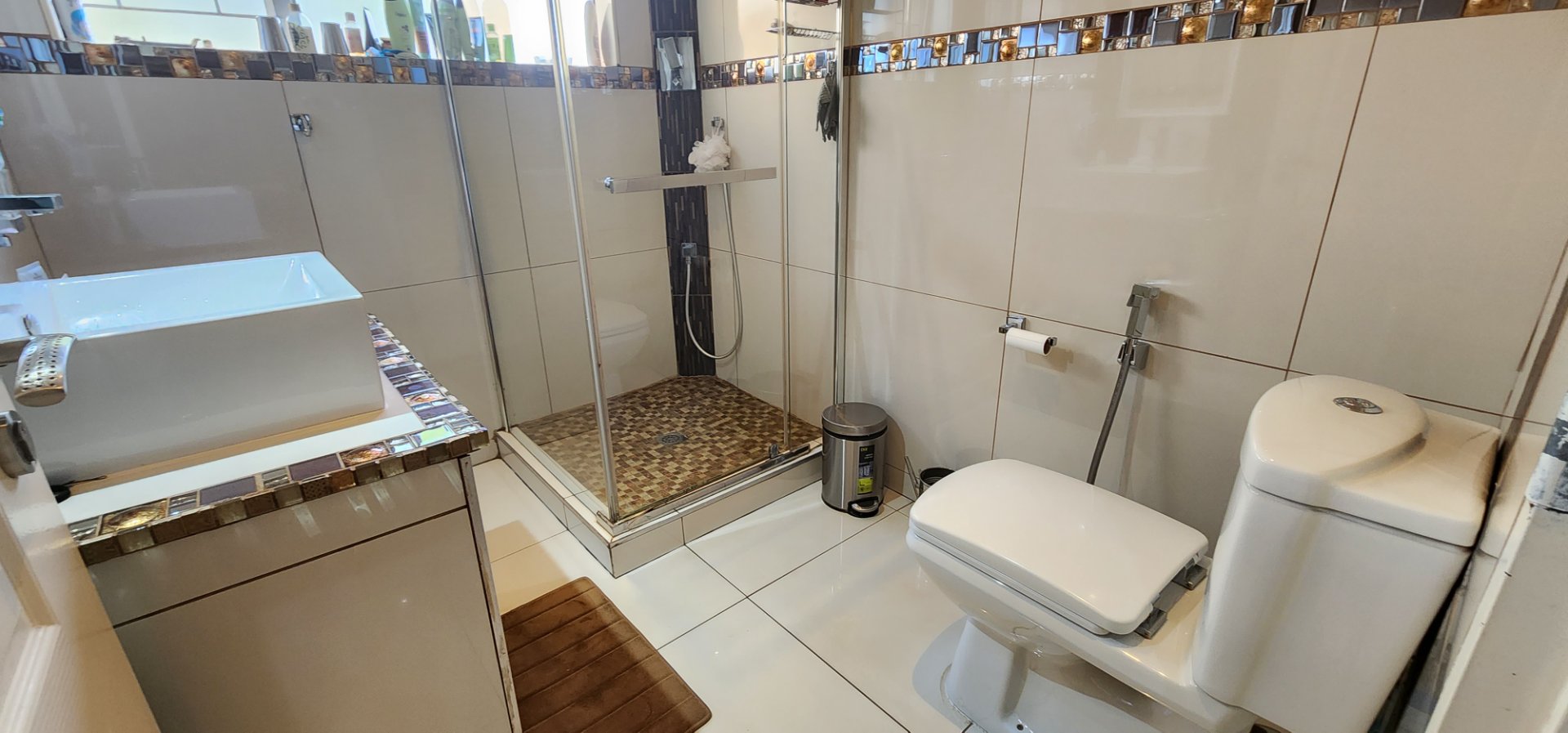 2 Modern Bathrooms sleek, fully tiled bathrooms with contemporary finishes.
