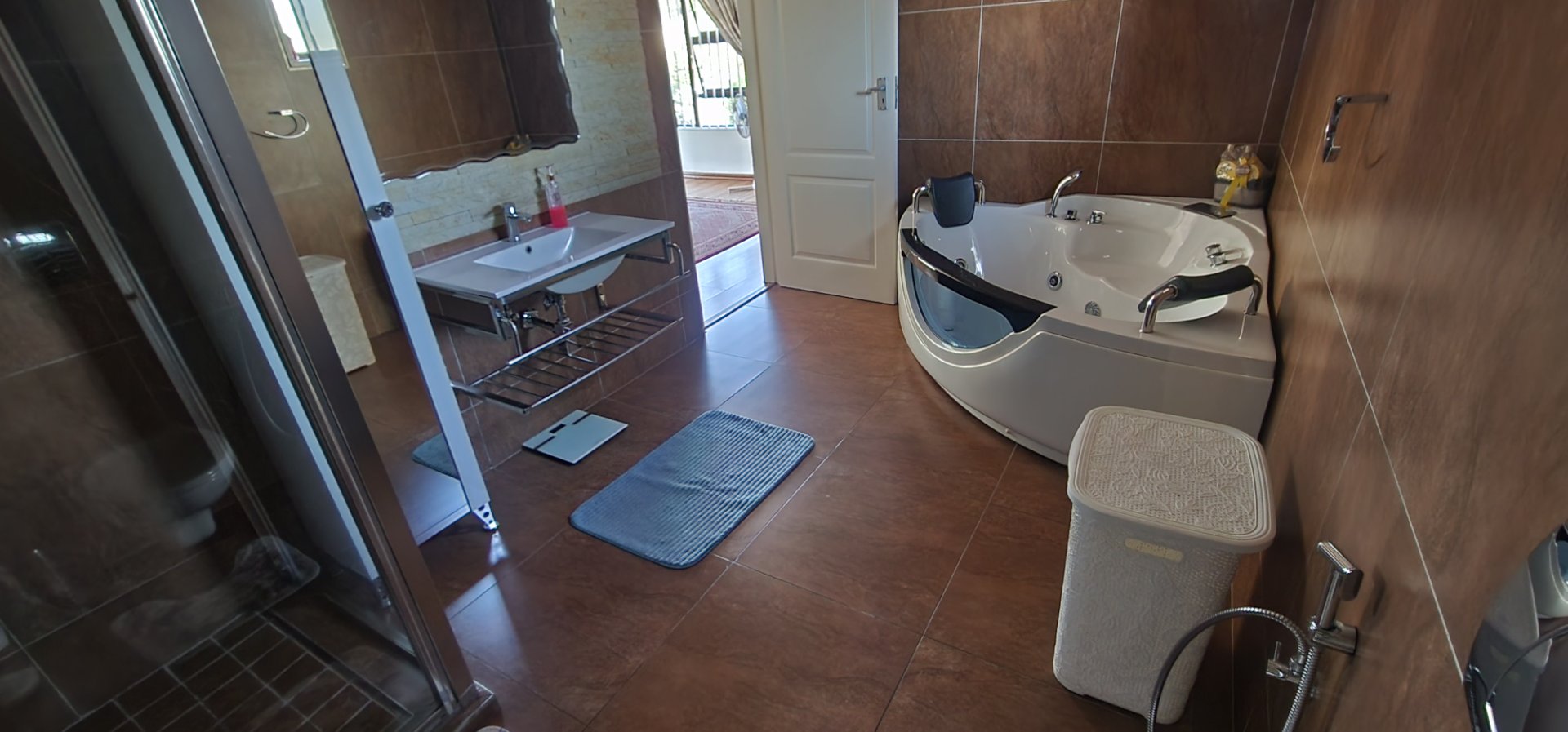 3.5 modern bathrooms, plus a guest toilet downstairs.