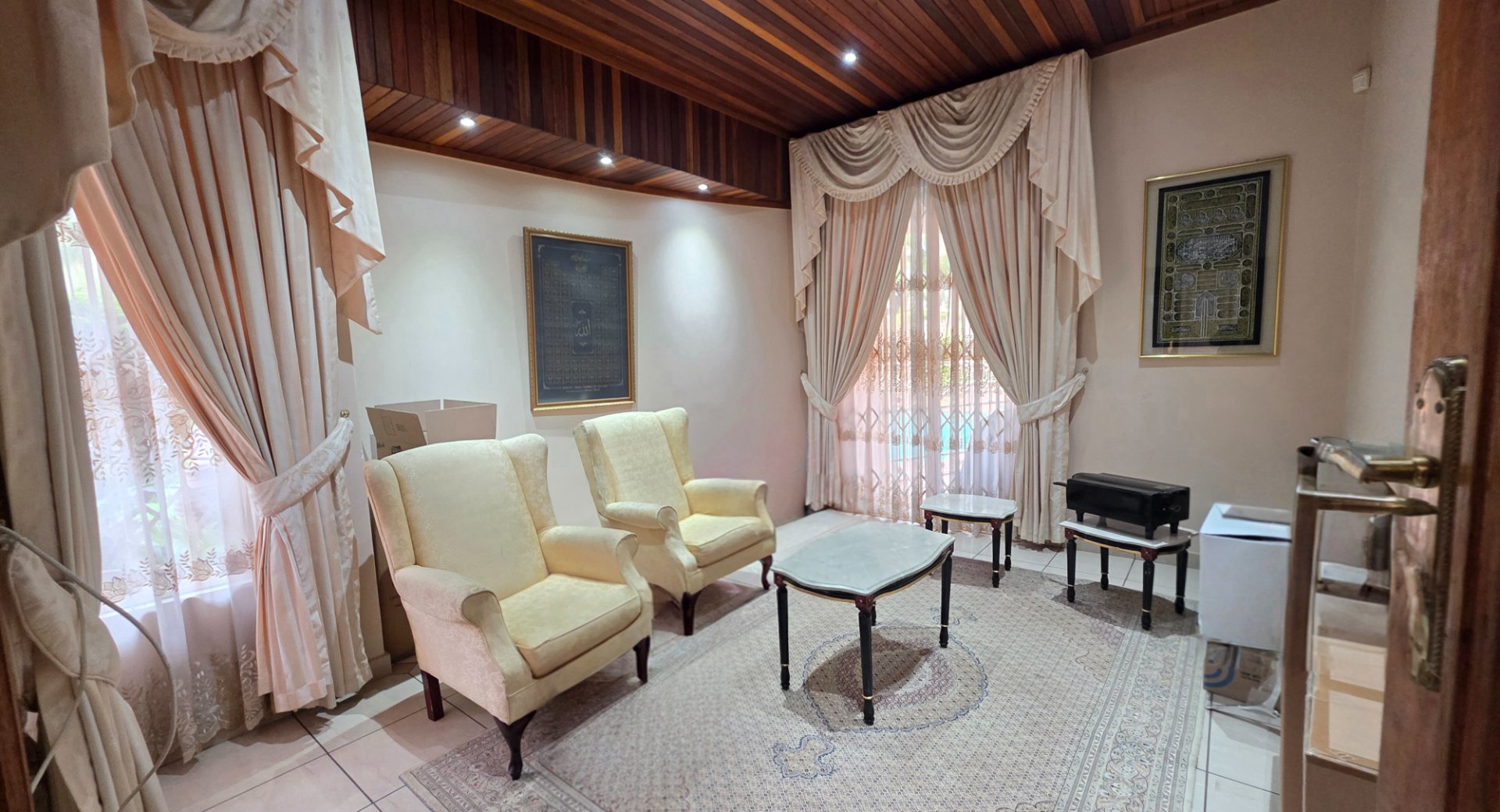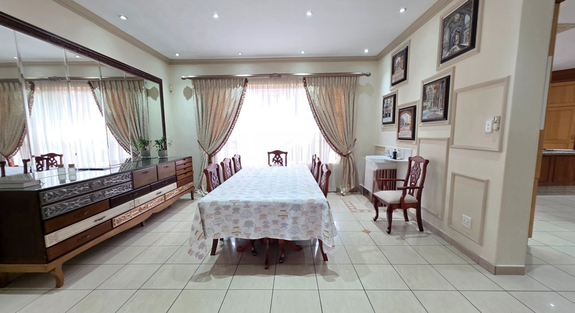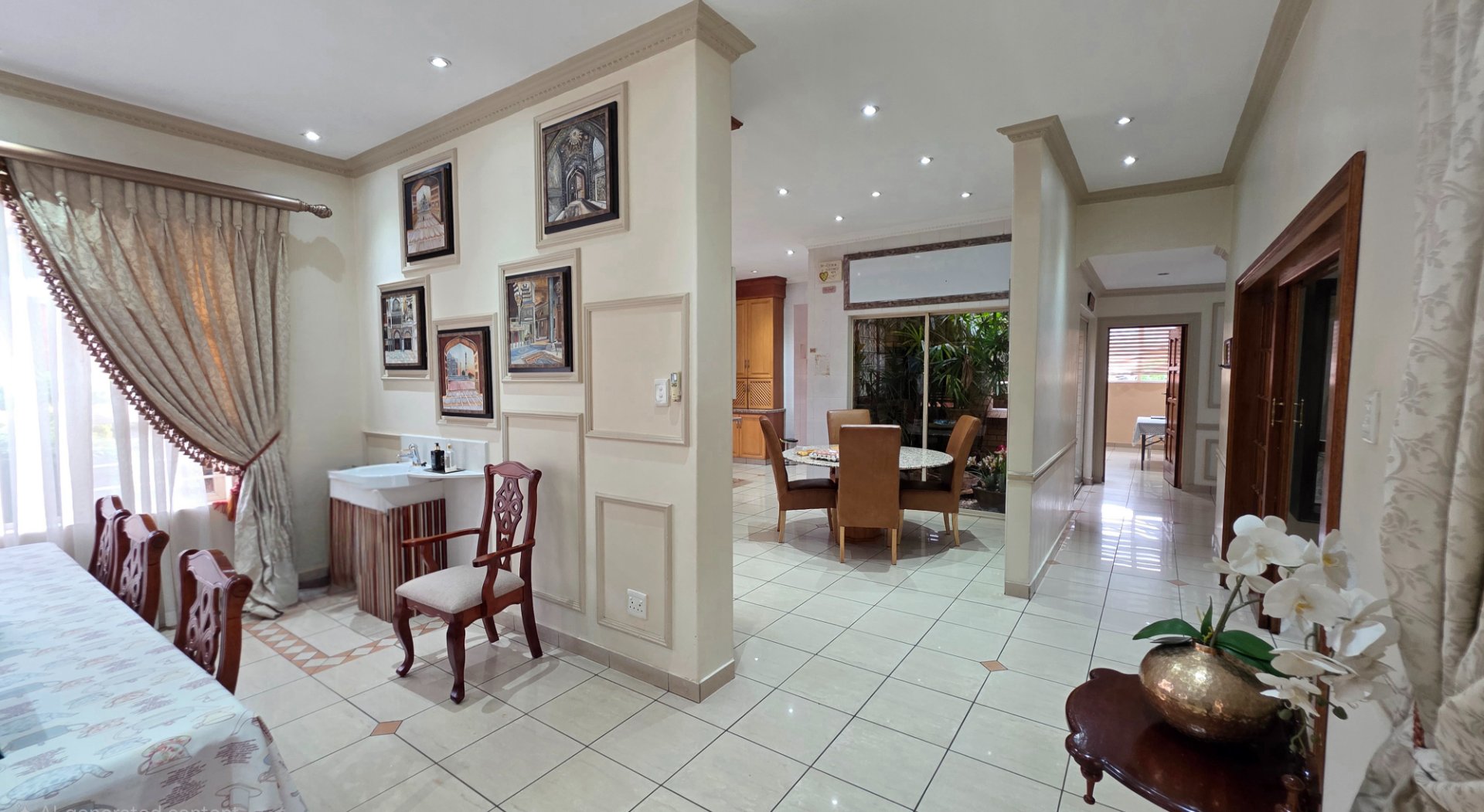 This well appointed face brick home offers four bedrooms and three bathrooms with one ensuite one common and one guest. You have two lounges both fitted with aircon and curtains, opening onto a patio that leads to a neat garden and pool. The property includes a double garage and a carport as well as an inverter with batteries for backup. Additional features include a study, a prayer room, a scullery with appliance fittings, a storage room and a laundry room with built in cupboards, creating a home that is both comfortable and practical.