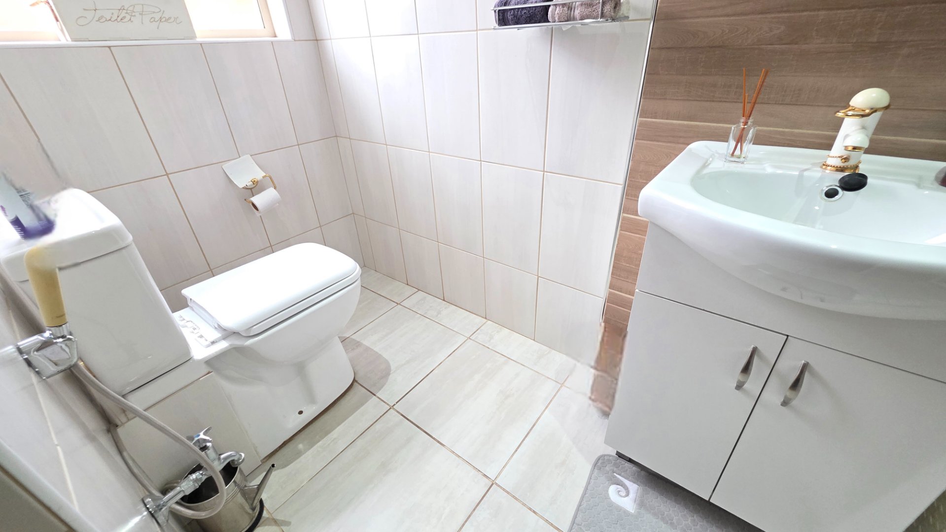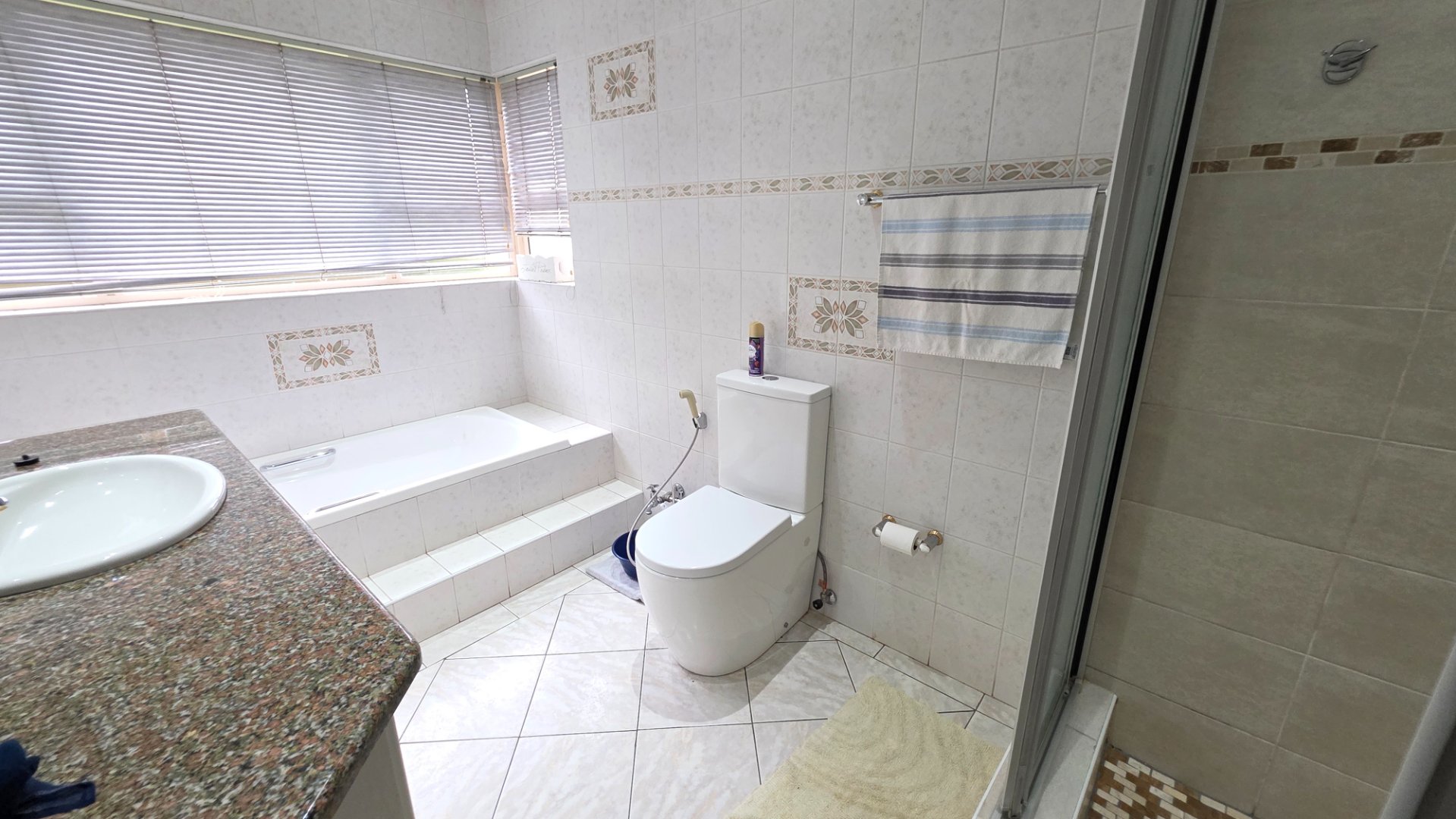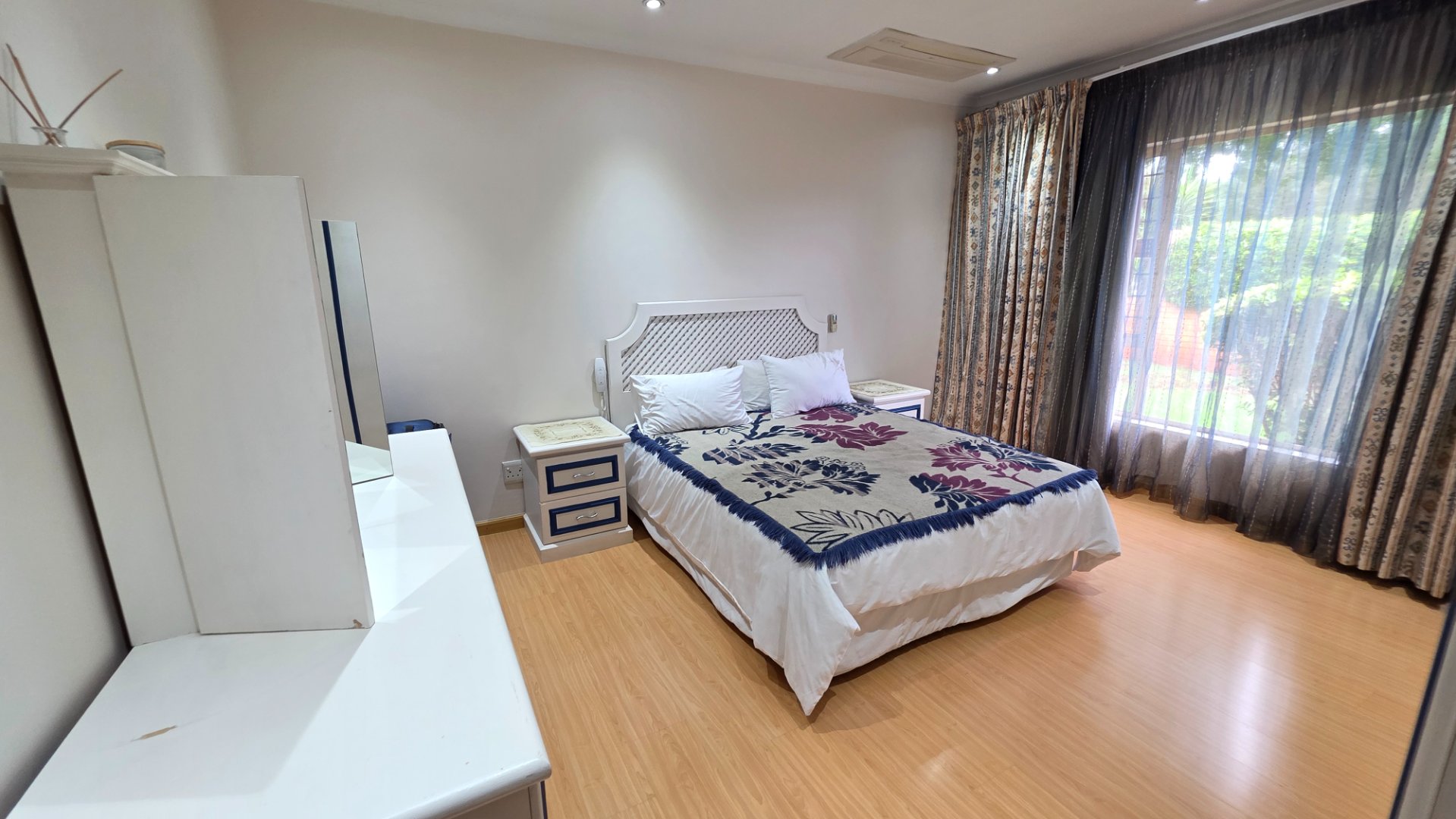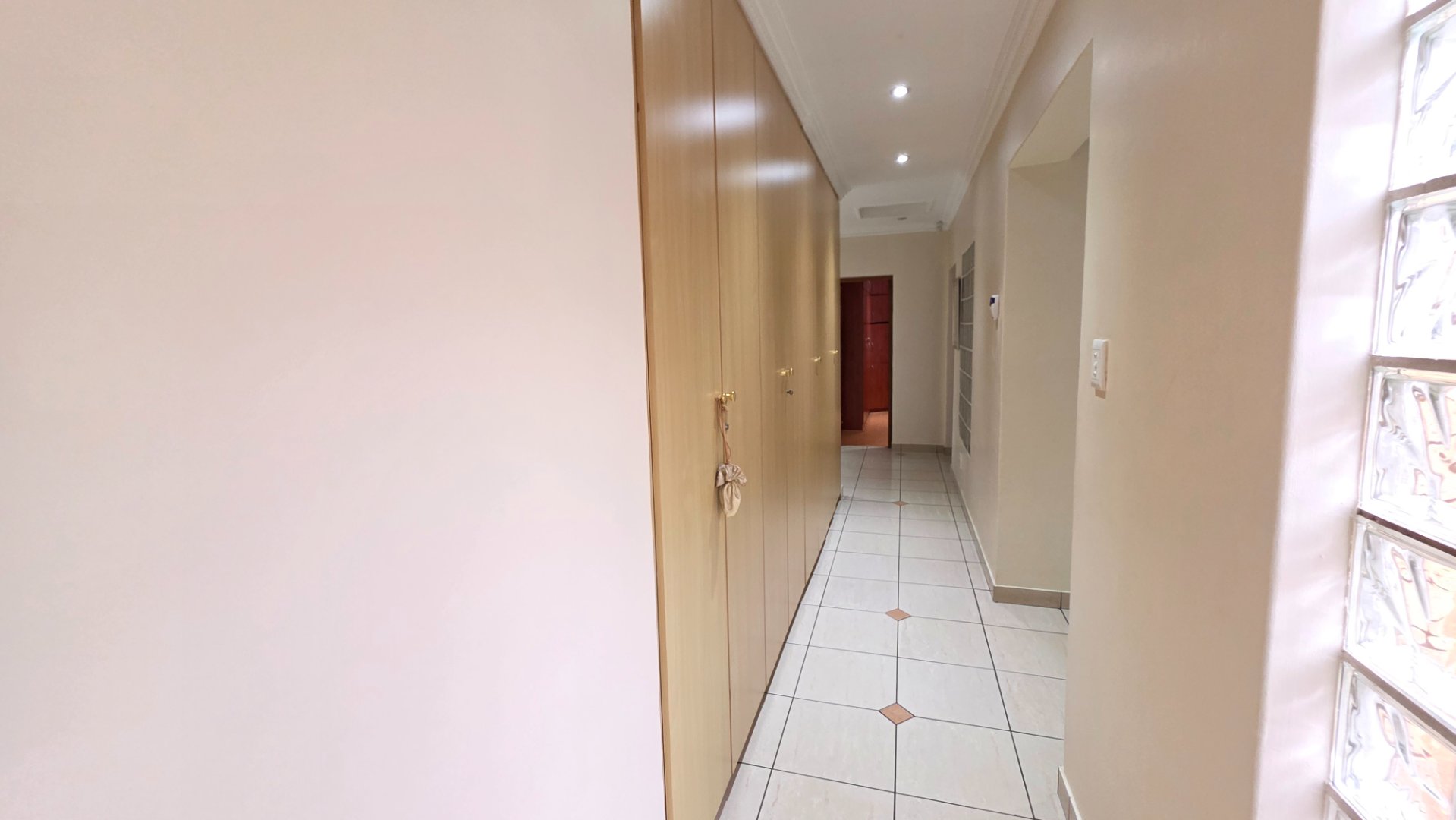This well appointed face brick home offers four bedrooms and three bathrooms with one ensuite one common and one guest. You have two lounges both fitted with aircon and curtains, opening onto a patio that leads to a neat garden and pool. The property includes a double garage and a carport as well as an inverter with batteries for backup. Additional features include a study, a prayer room, a scullery with appliance fittings, a storage room and a laundry room with built in cupboards, creating a home that is both comfortable and practical.