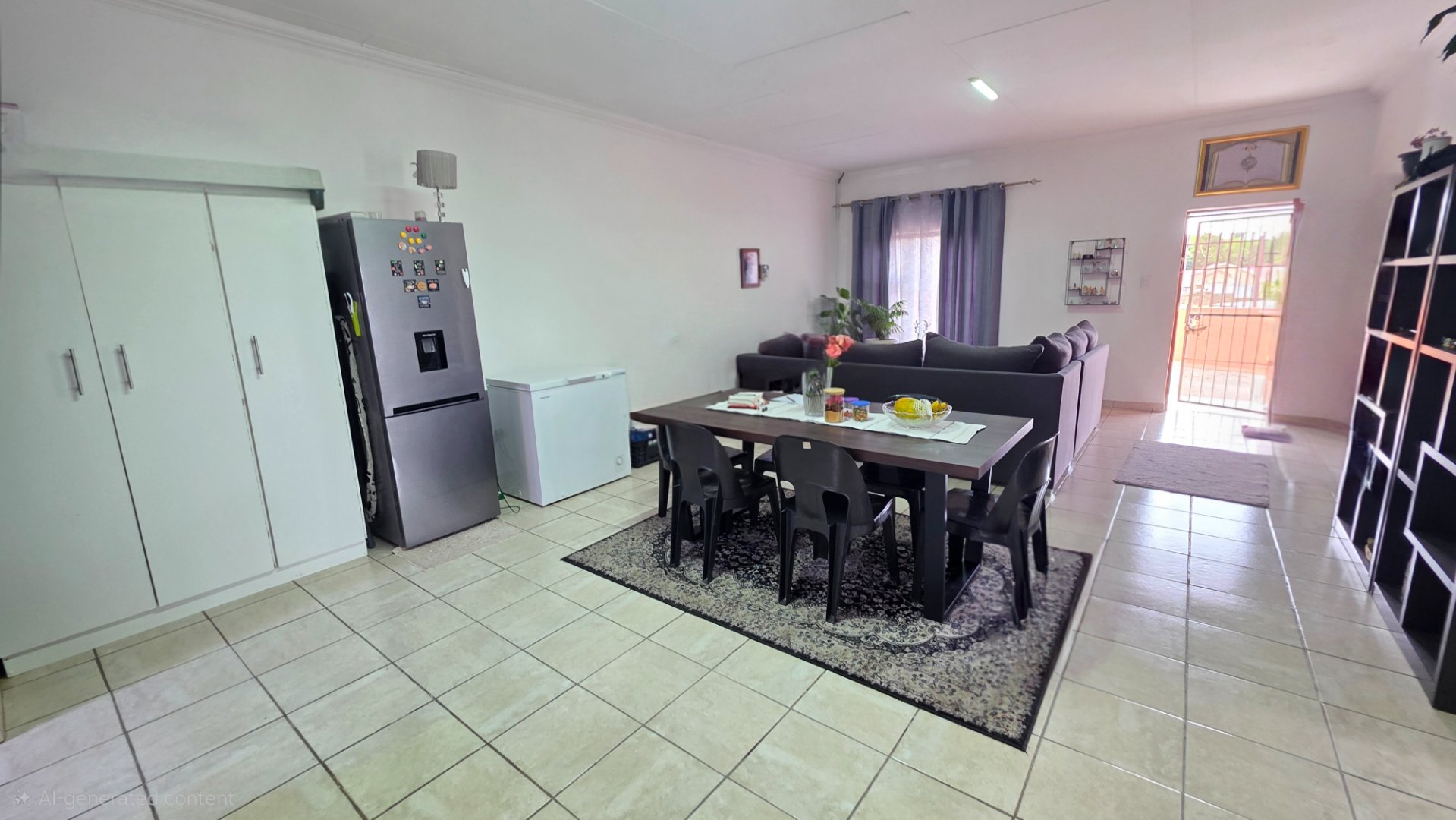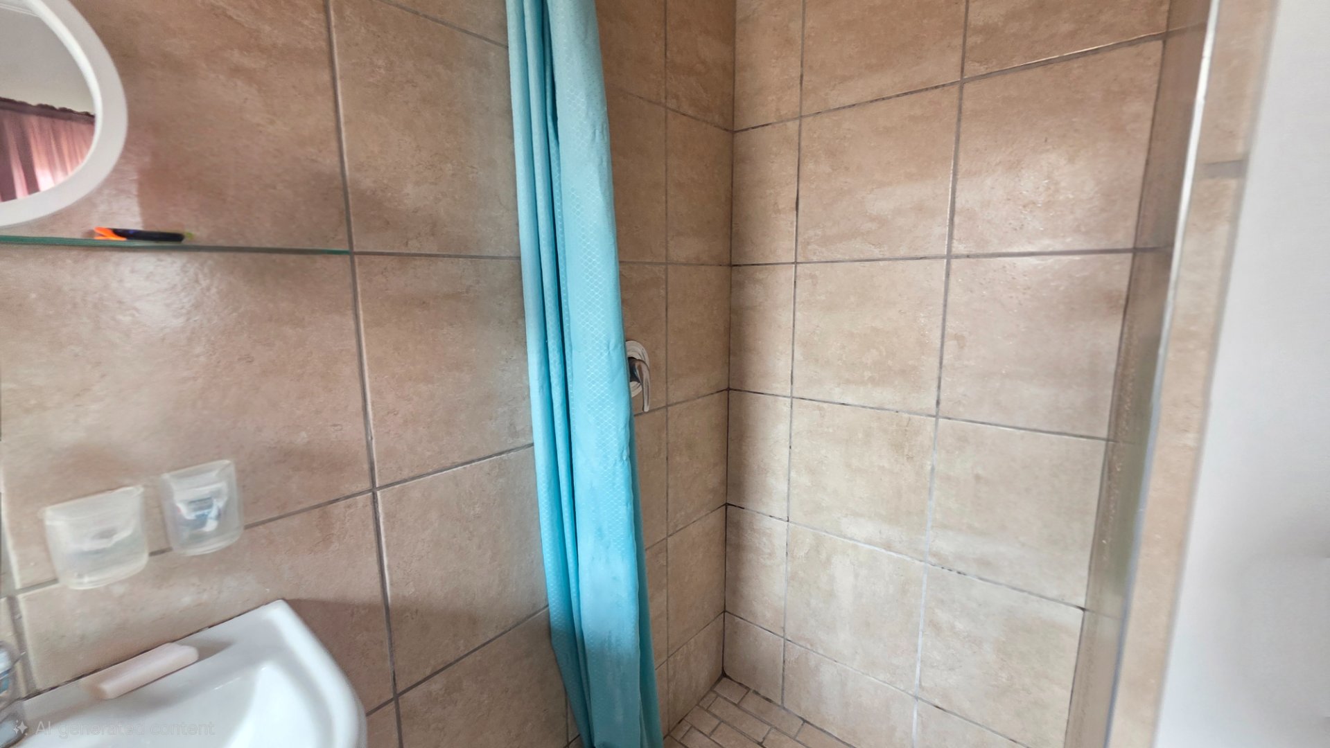 The open-plan lounge and dining area creates a welcoming airy space perfect for entertaining or relaxing. The kitchen is fitted with granite countertops and an electric stove combining functionality with sleek design. Fully tiled floors throughout make maintenance effortless and curtain rails are already in place for your personal touch
