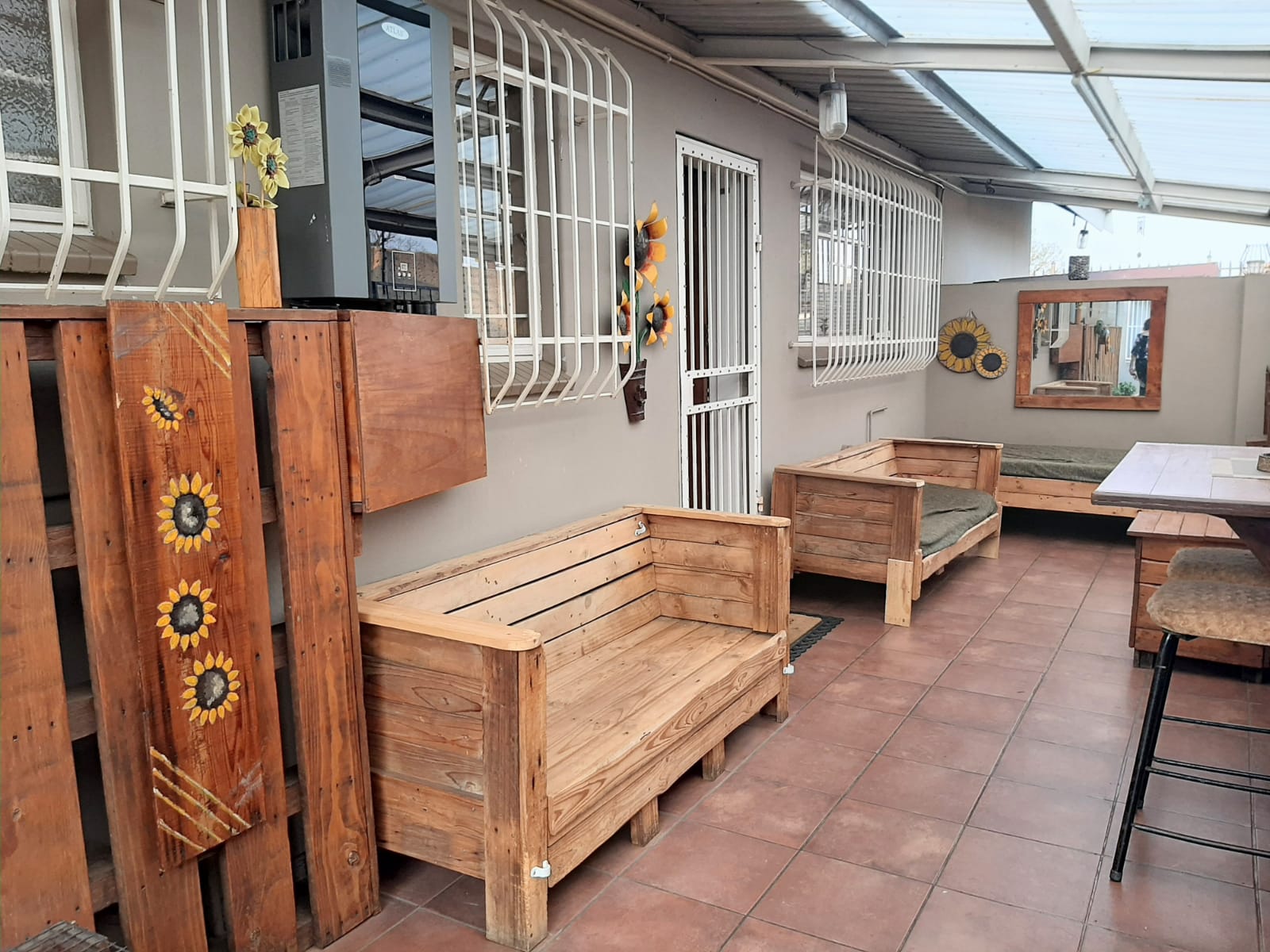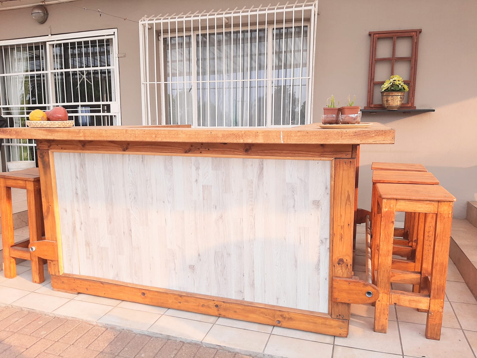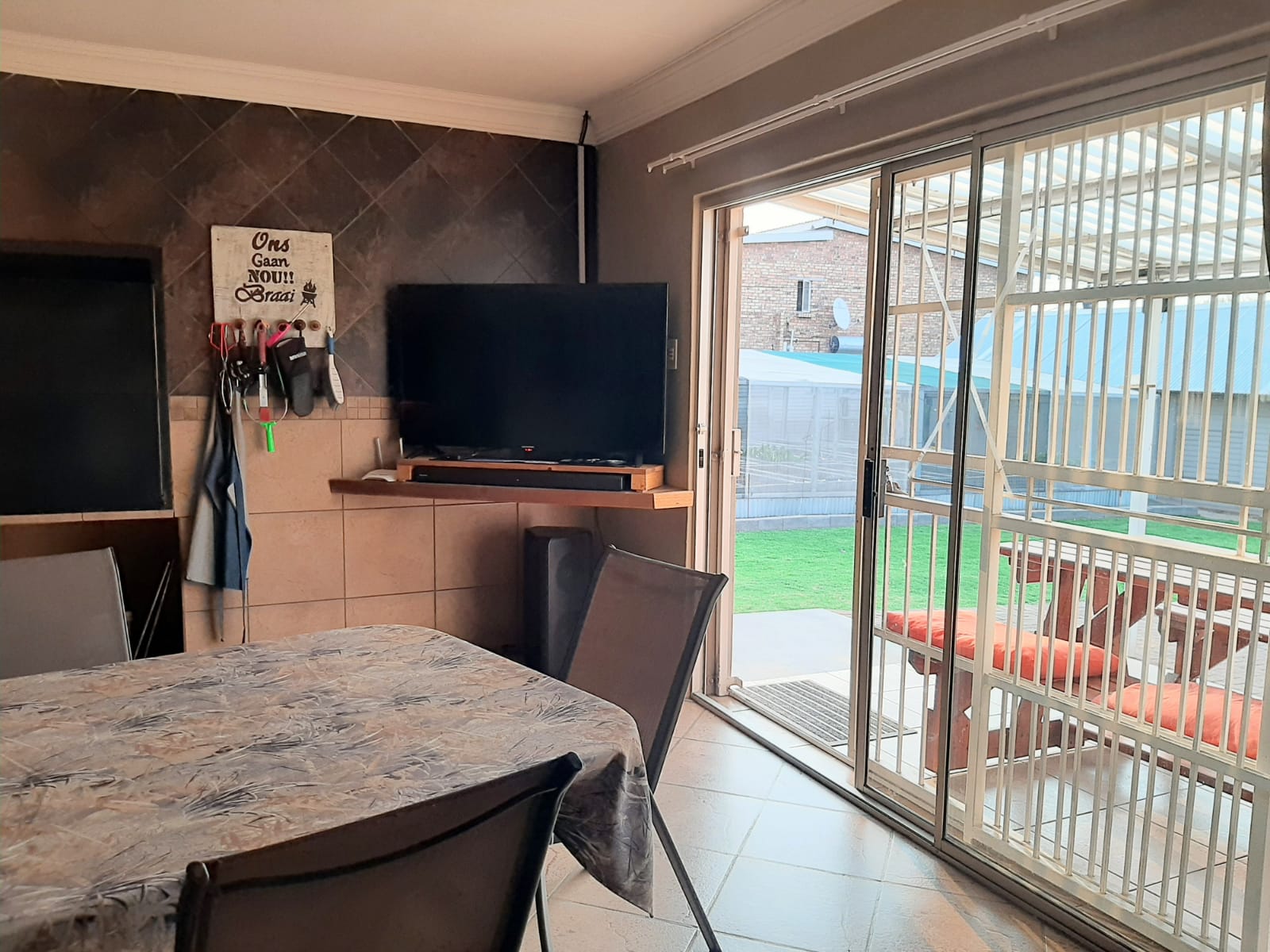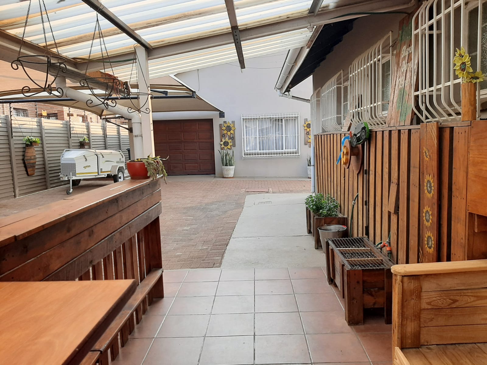 Adding further value is a separate flatlet that includes one bedroom, one bathroom, a lounge, dining room, and a kitchen with wooden cupboards and a double sink. It also boasts a built-in bar, indoor braai, private patio, and an electric garage that comfortably fits two cars, with extra space for storage or a workshop. The flatlet is also equipped with a gas geyser and a water tank.