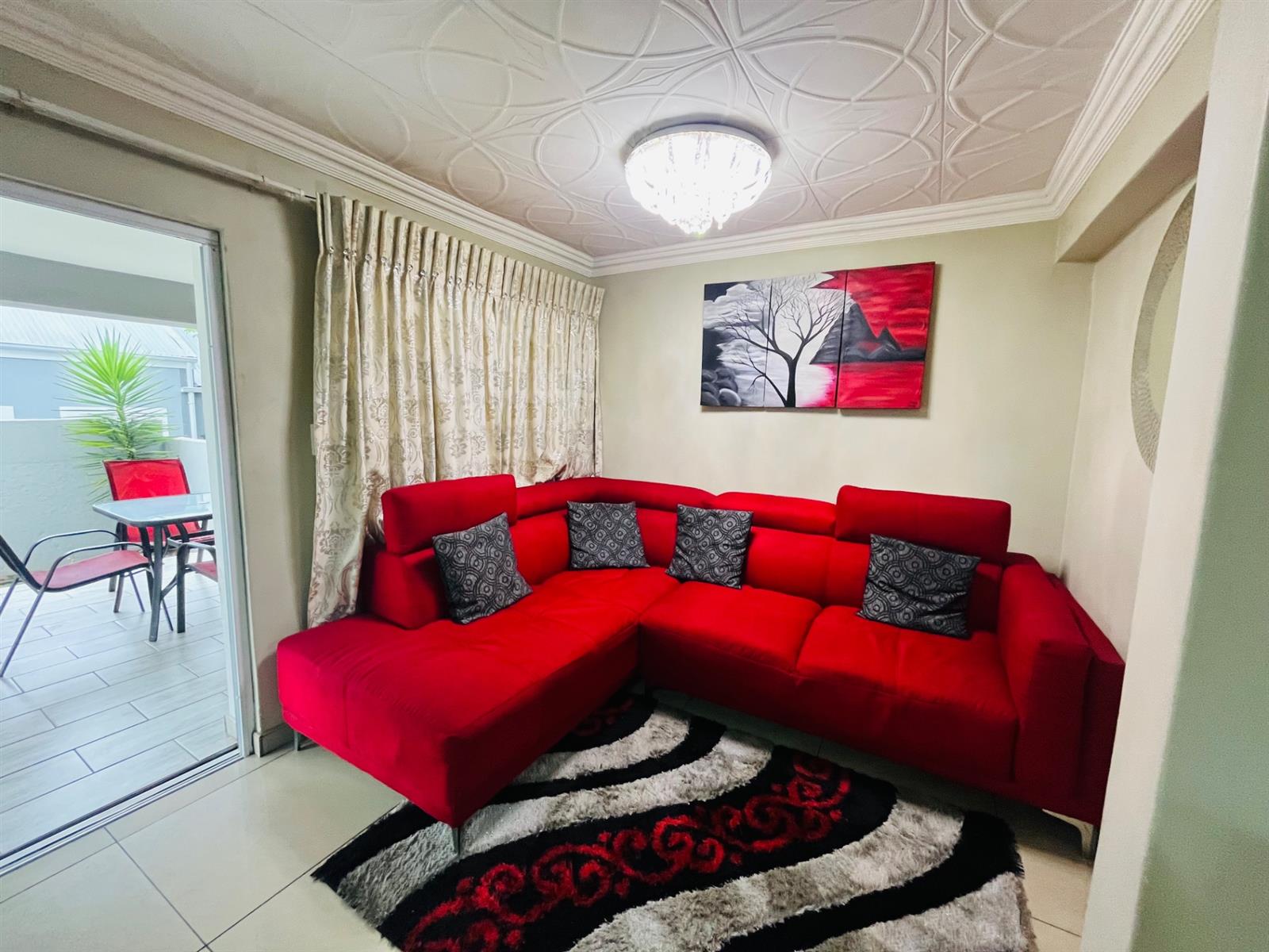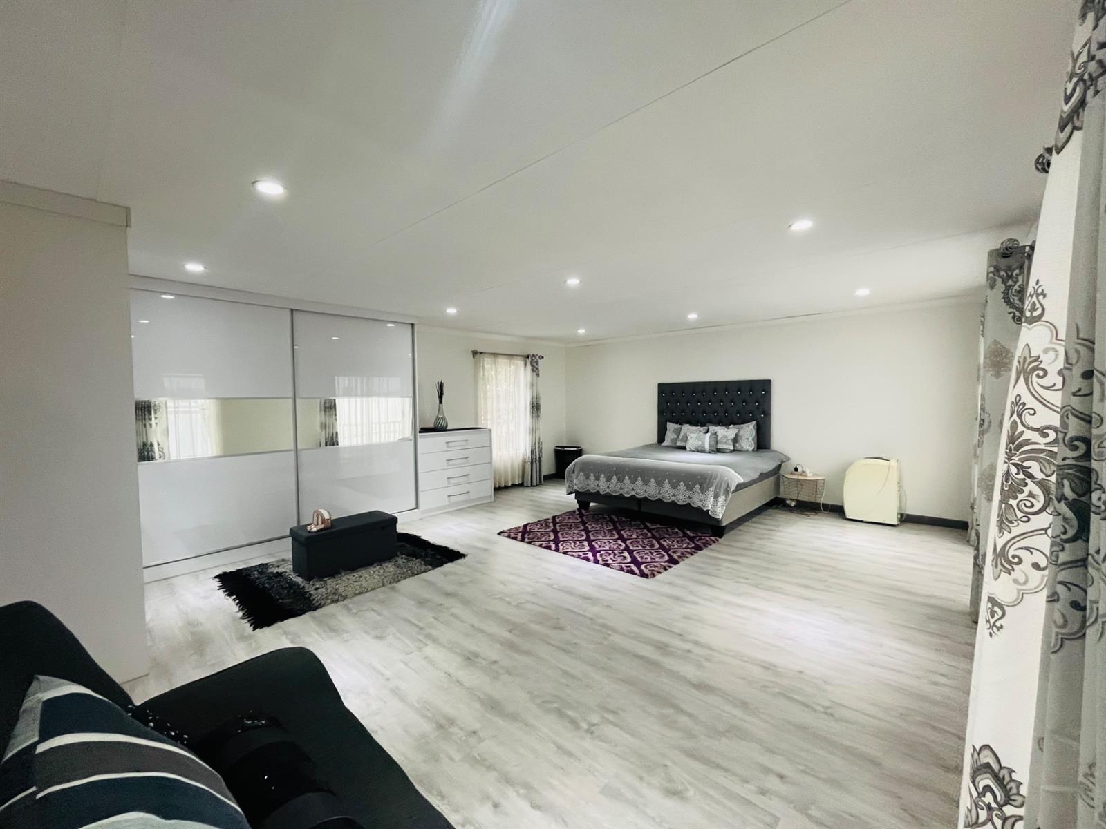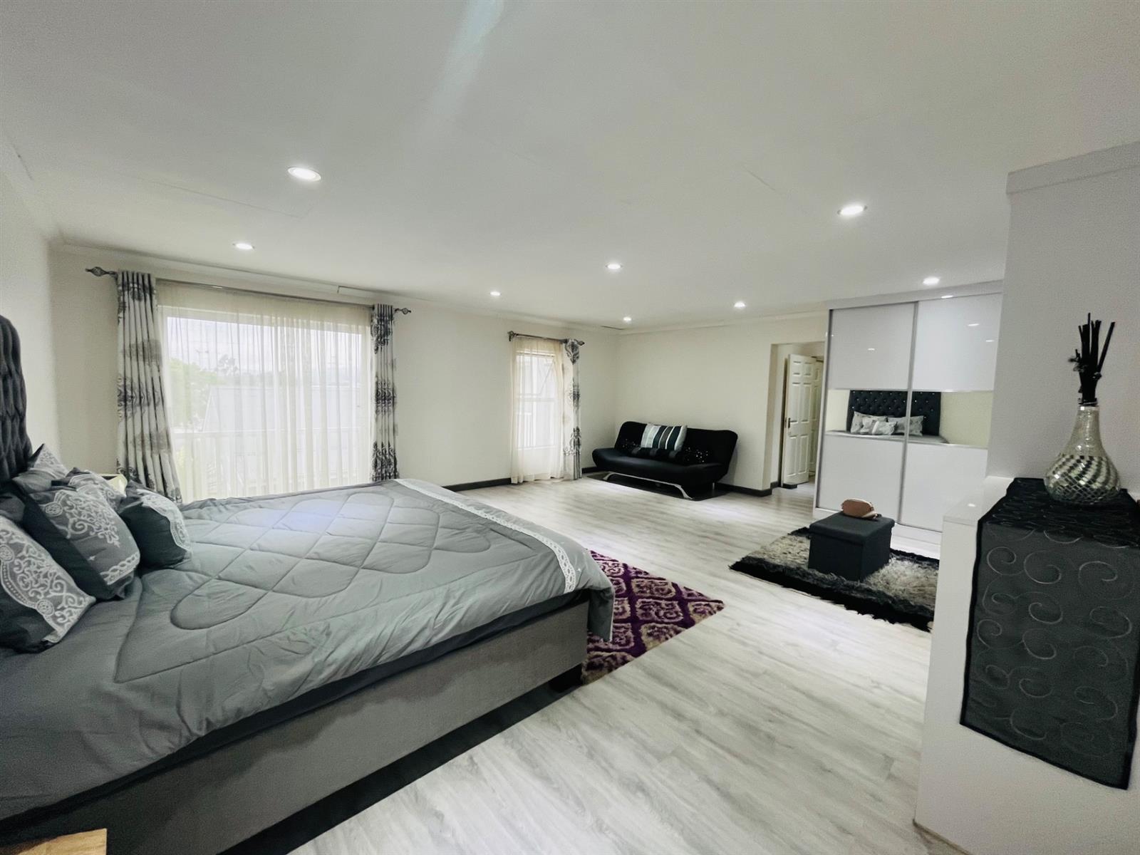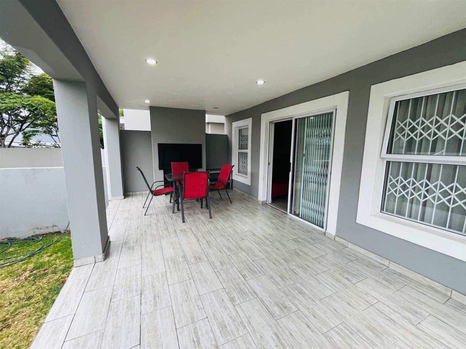 Enjoy open-plan living with two elegant lounges, a dining area, and a sleek, modern kitchen — ideal for entertaining and family living. The home seamlessly opens onto a private patio with a built-in braai and a manicured garden, creating the perfect indoor-outdoor flow.