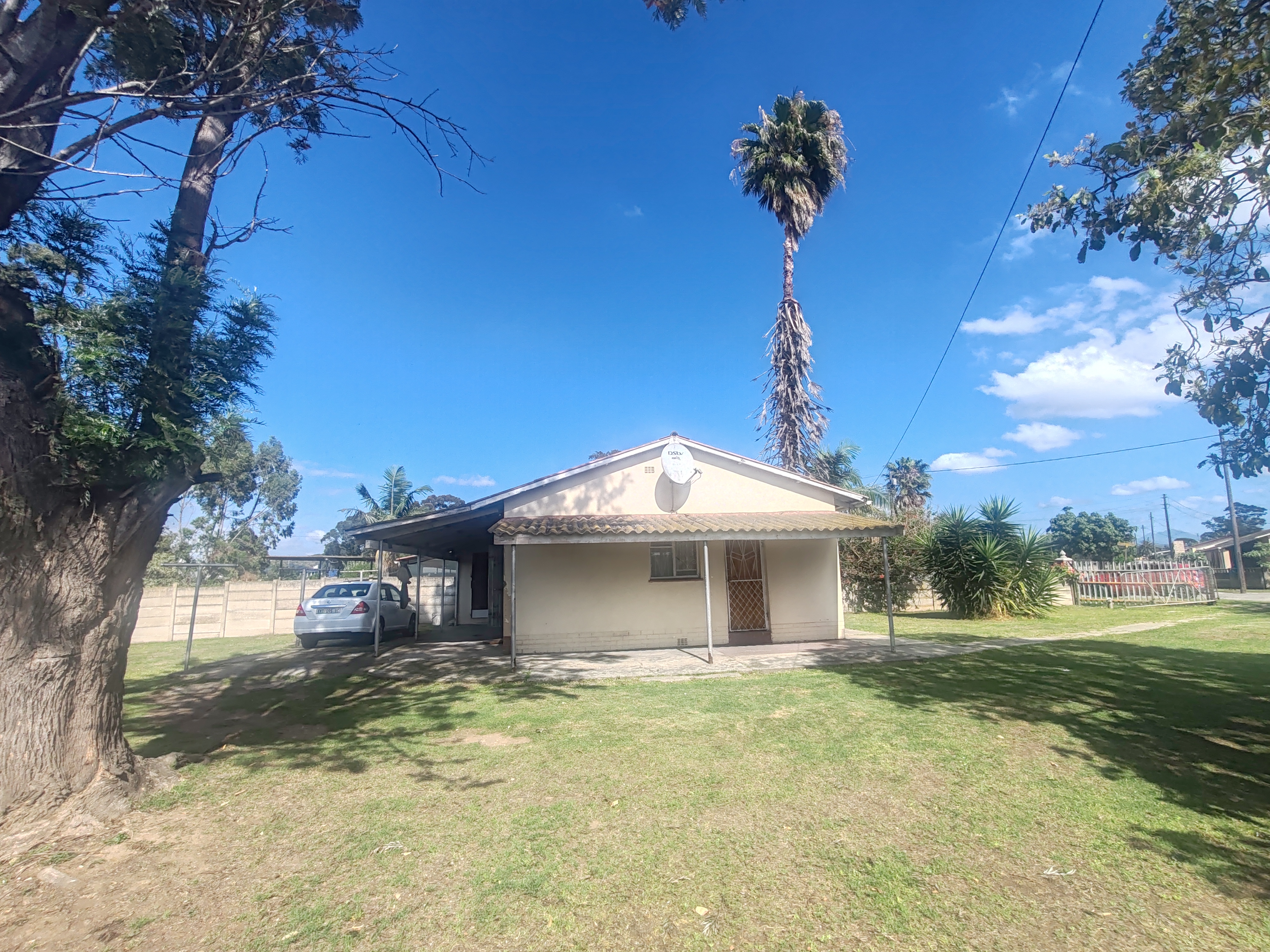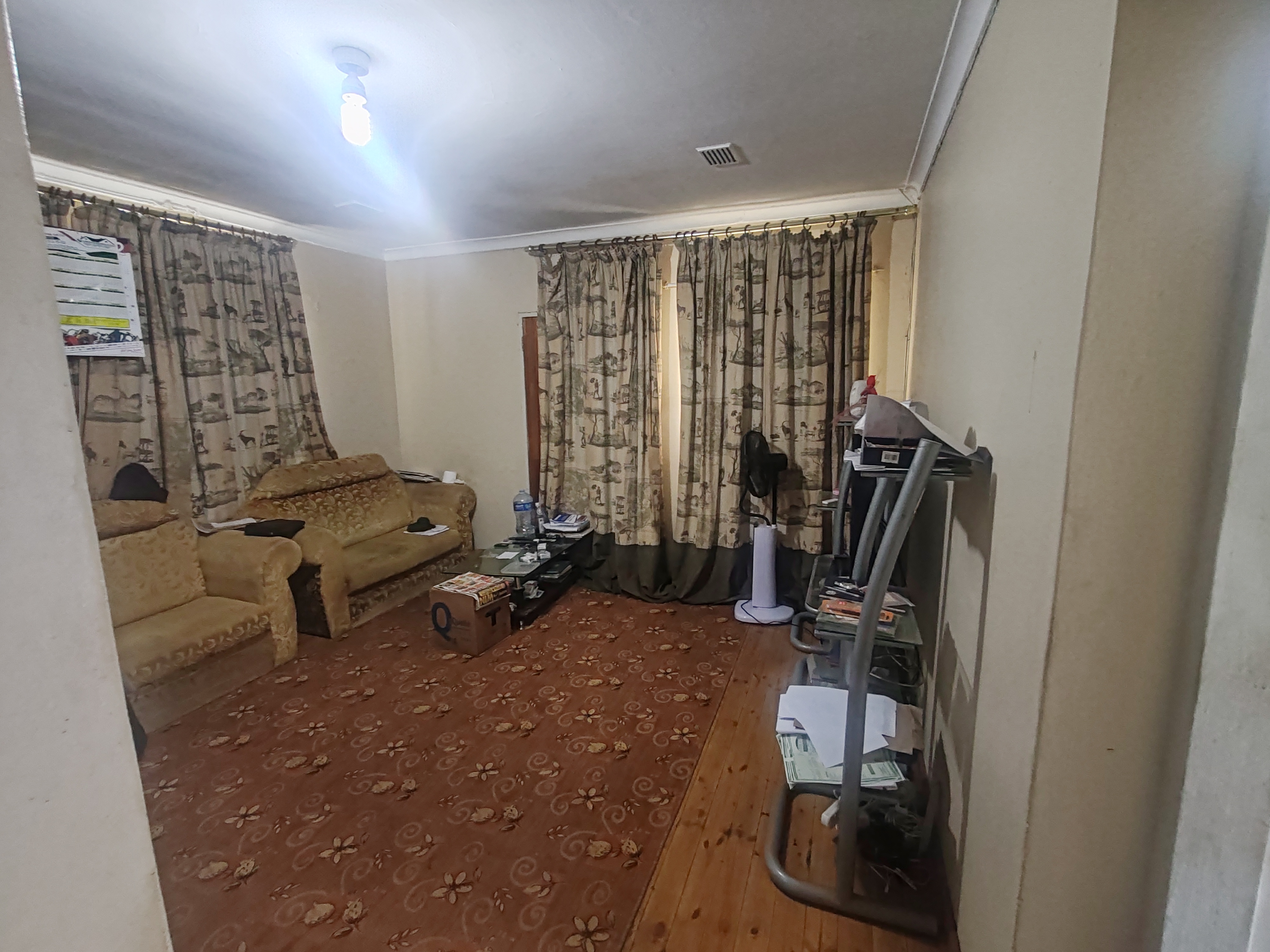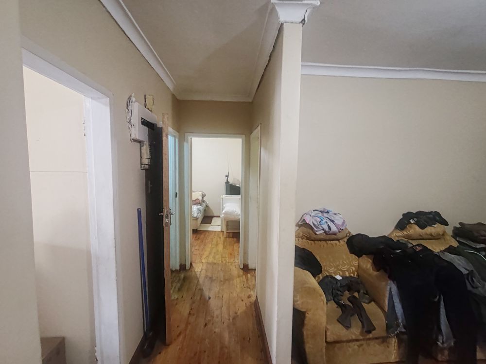 The home features two well-sized bedrooms, both fitted with built-in cupboards for ample storage. The spacious lounge boasts wooden floors, creating a warm and welcoming atmosphere.
