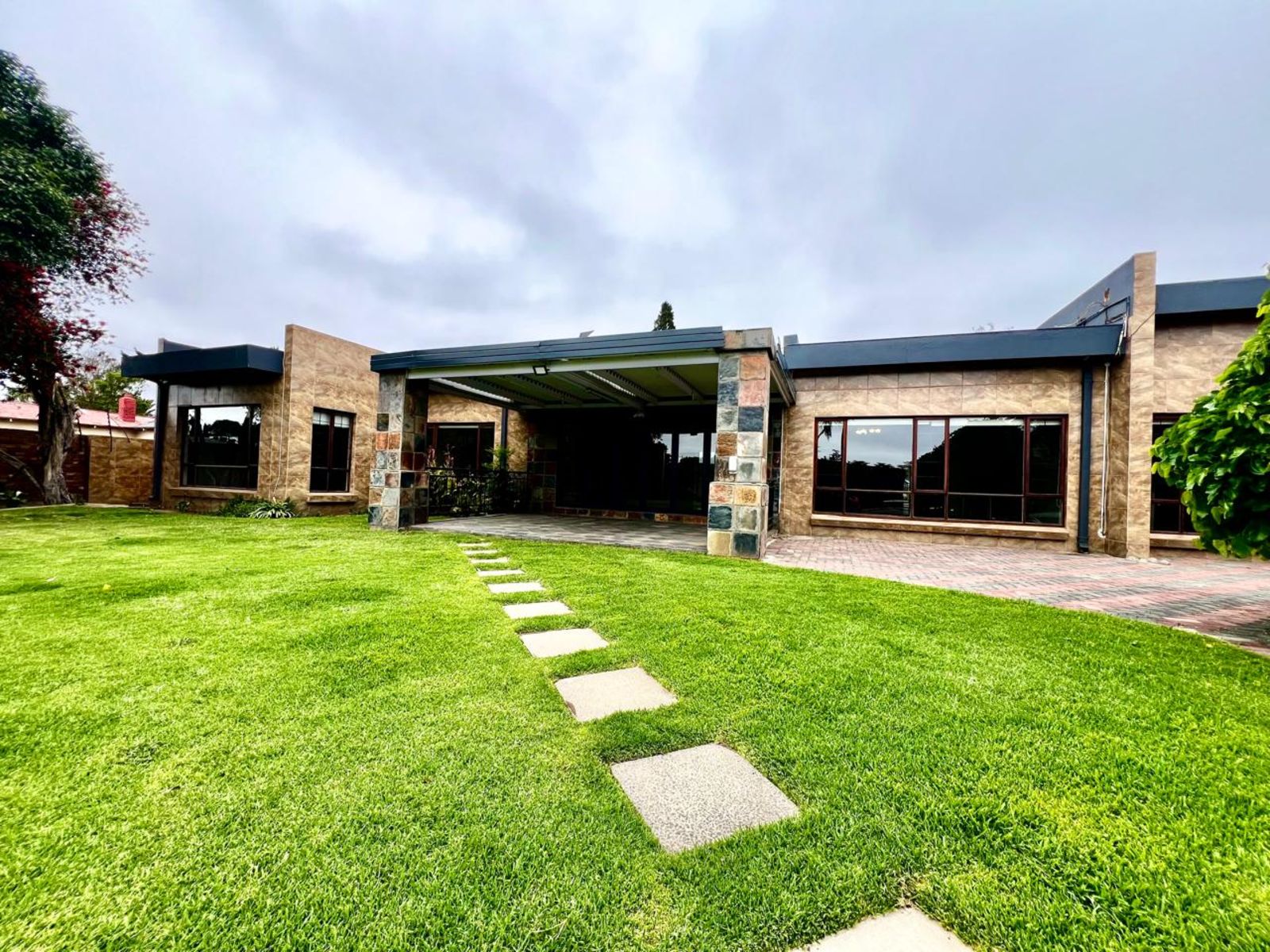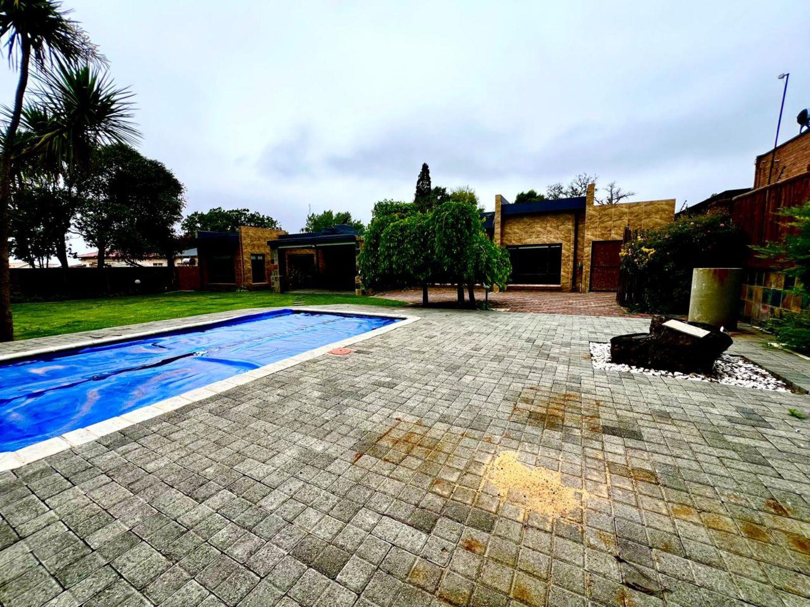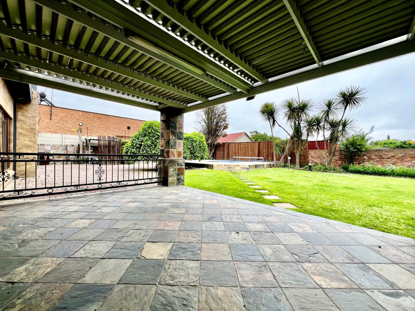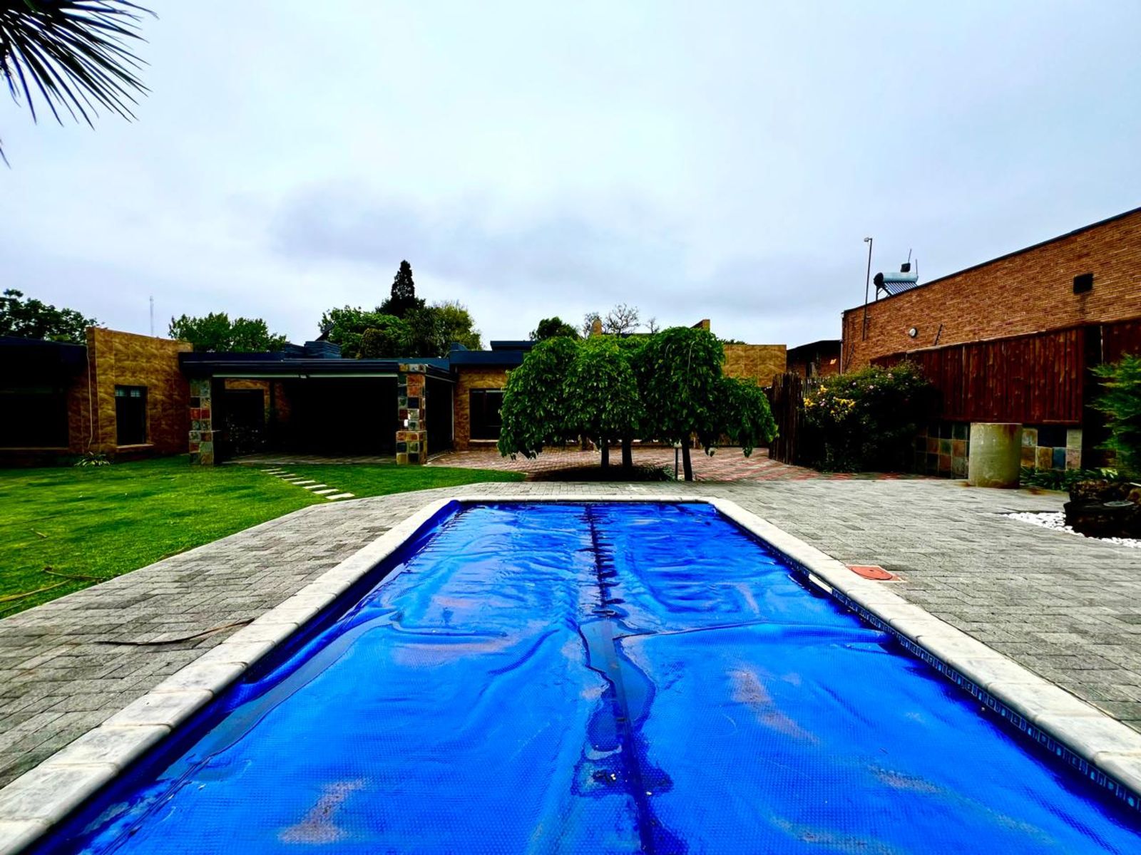 The beautifully landscaped garden surrounds a sparkling fibreglass swimming pool, equipped with a heat pump and safety cover, all set against stylish paving. Thoughtful extras like a borehole, 5000L JoJo tank with electric pump, and a well-equipped domestic quarters (with shower and toilet) add unmatched practicality.