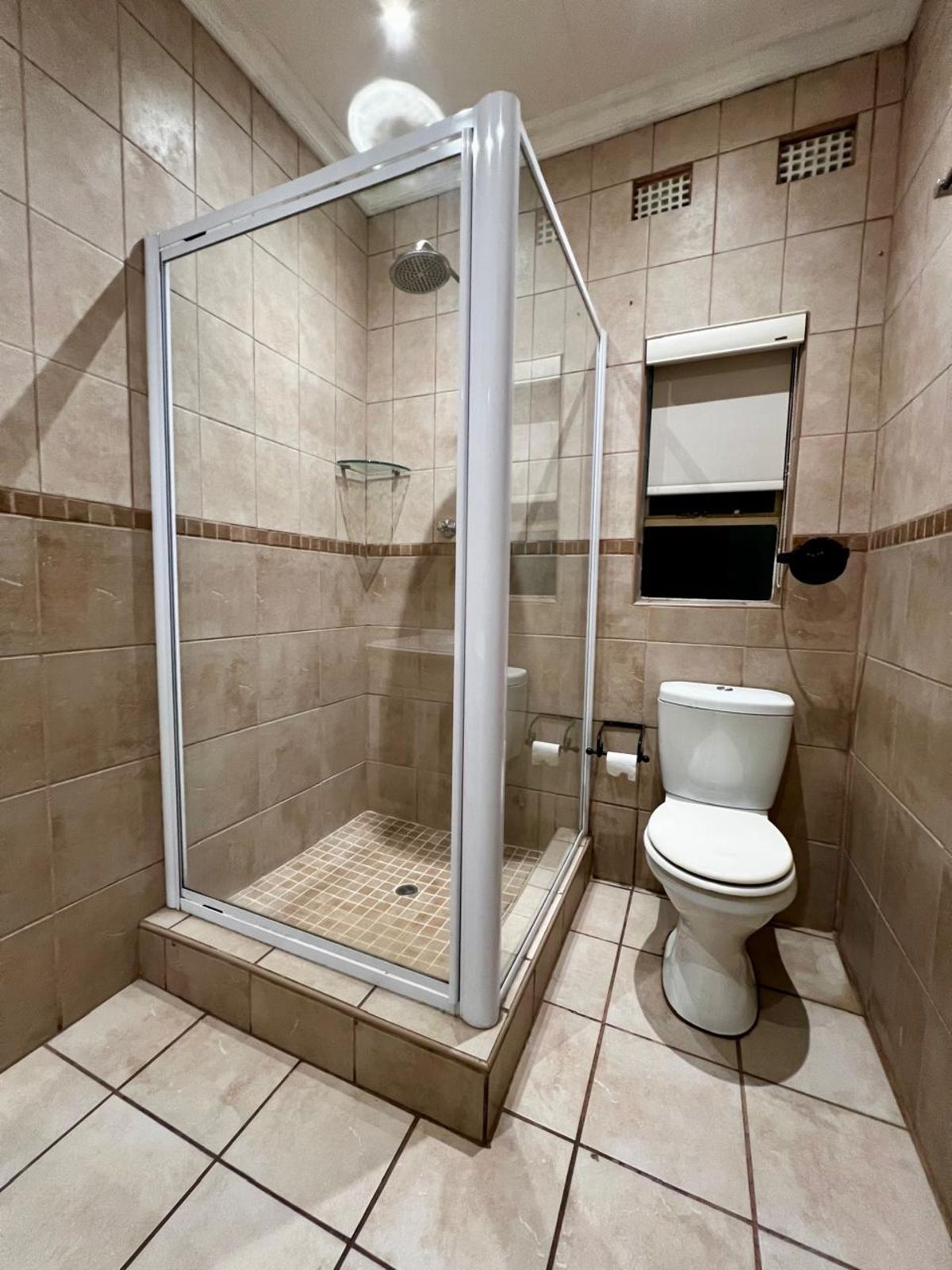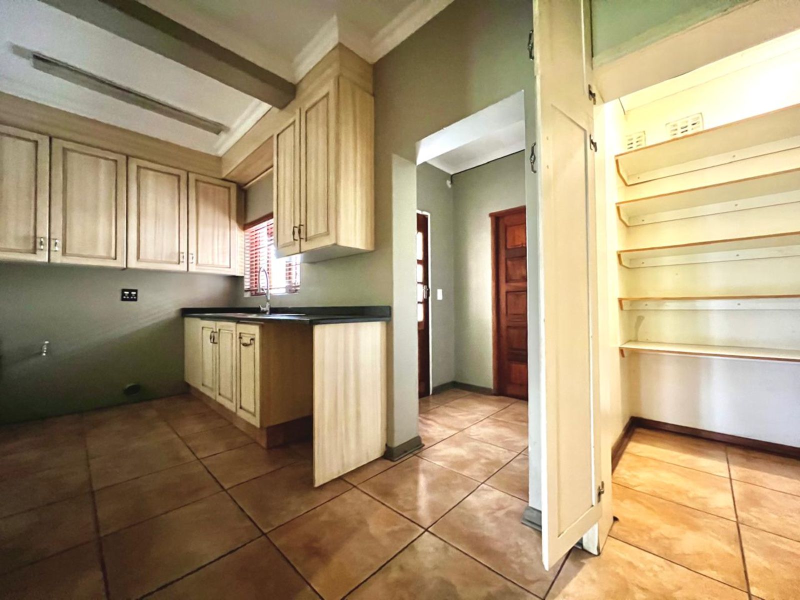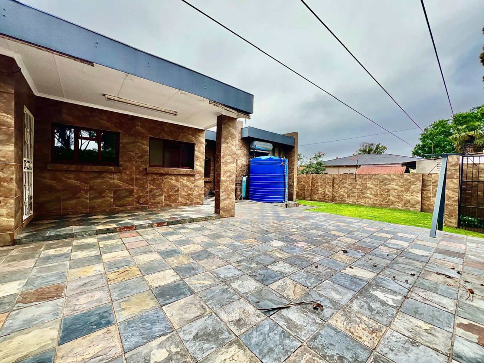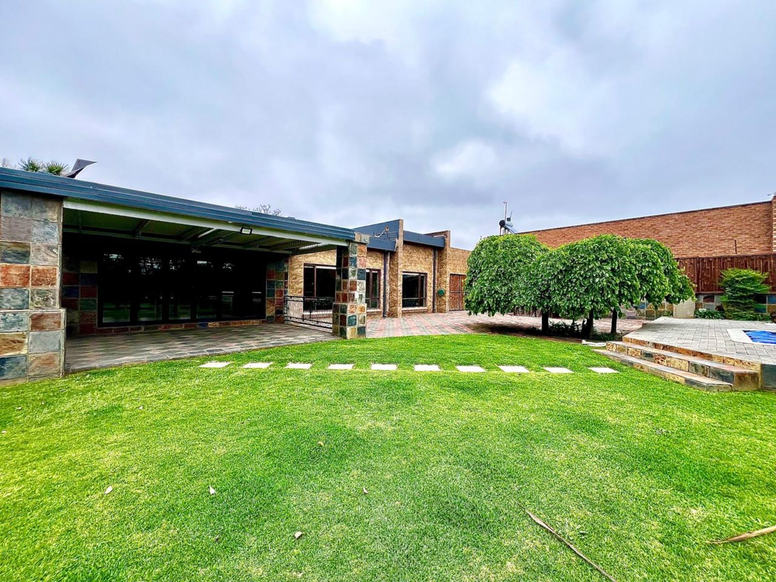 The beautifully landscaped garden surrounds a sparkling fibreglass swimming pool, equipped with a heat pump and safety cover, all set against stylish paving. Thoughtful extras like a borehole, 5000L JoJo tank with electric pump, and a well-equipped domestic quarters (with shower and toilet) add unmatched practicality.