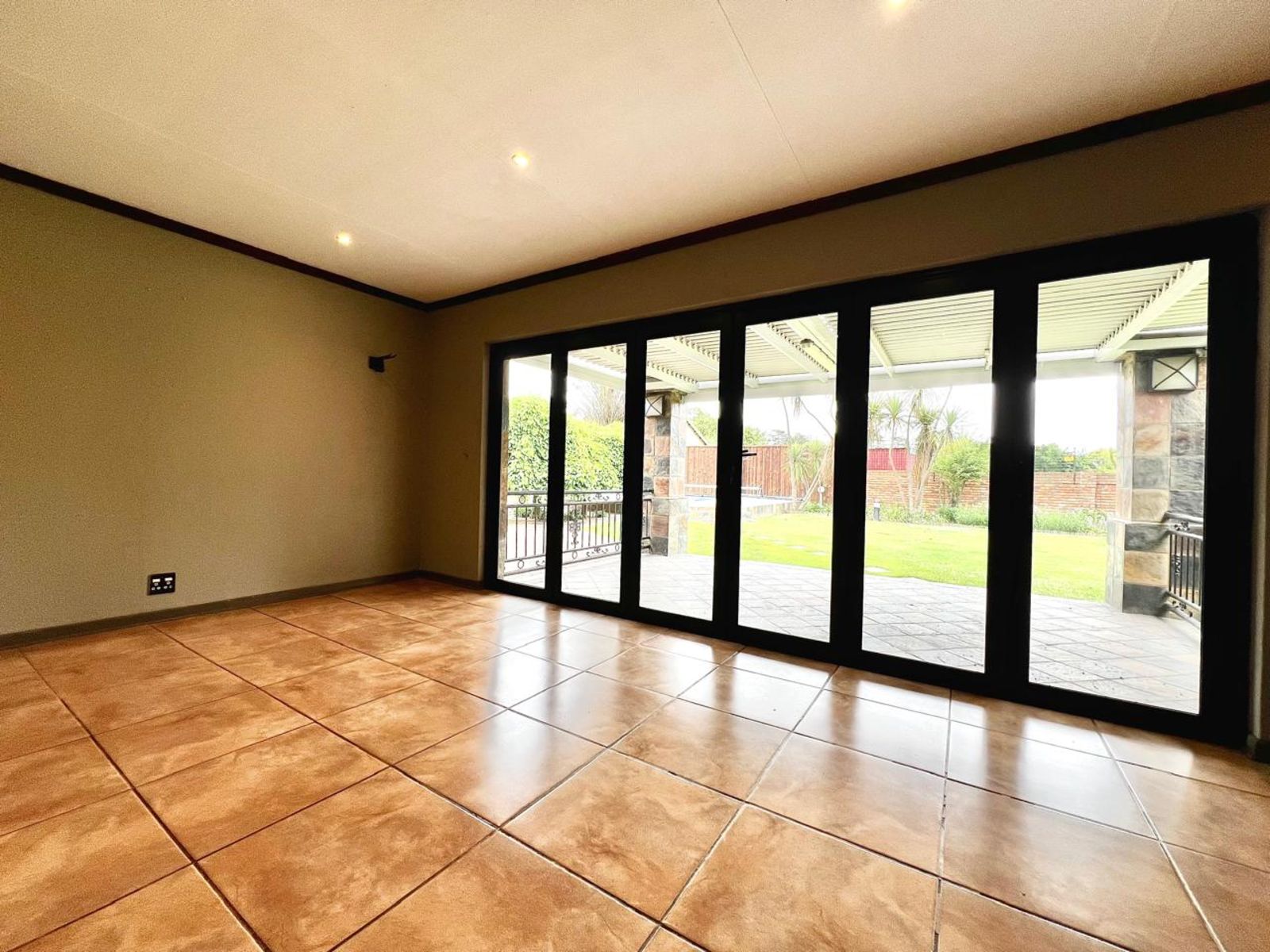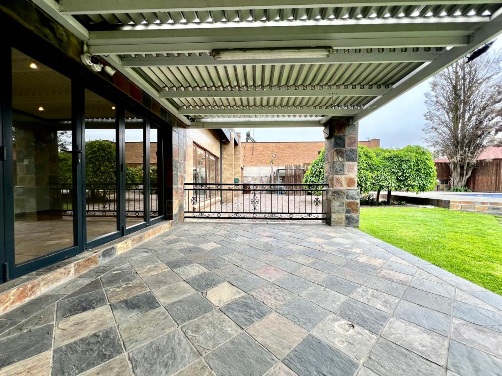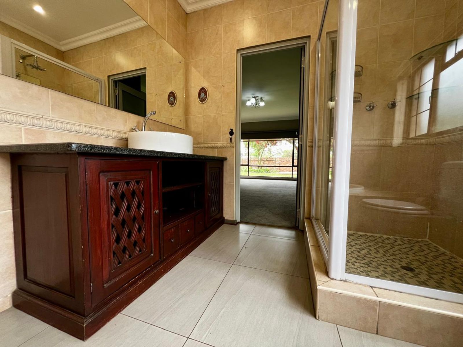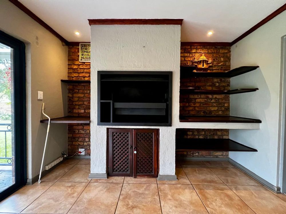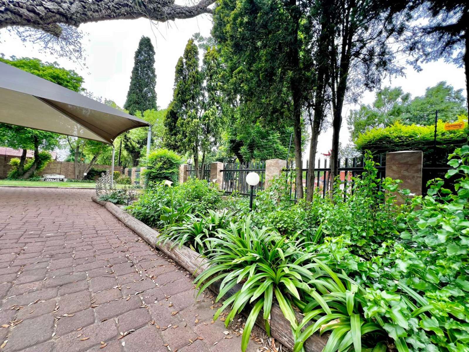 The beautifully landscaped garden surrounds a sparkling fibreglass swimming pool, equipped with a heat pump and safety cover, all set against stylish paving. Thoughtful extras like a borehole, 5000L JoJo tank with electric pump, and a well-equipped domestic quarters (with shower and toilet) add unmatched practicality.