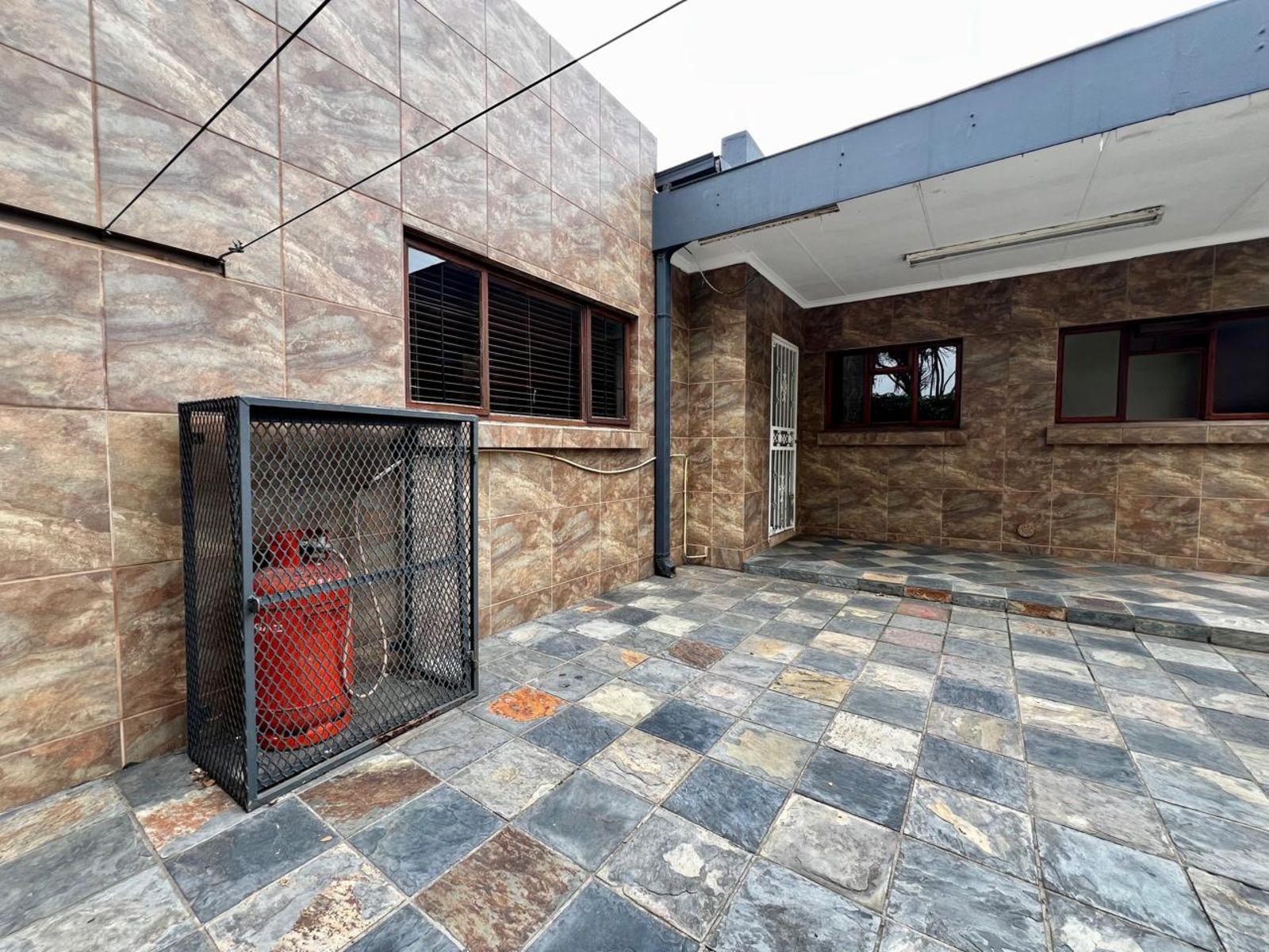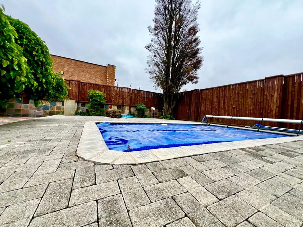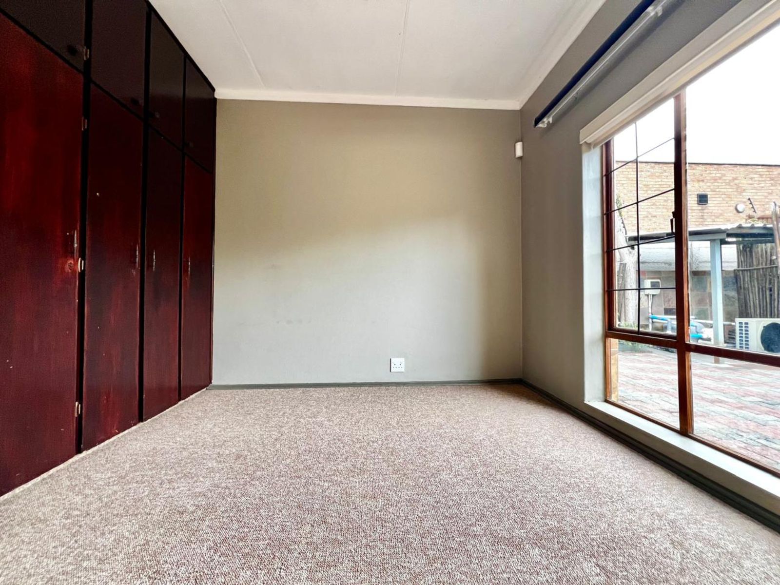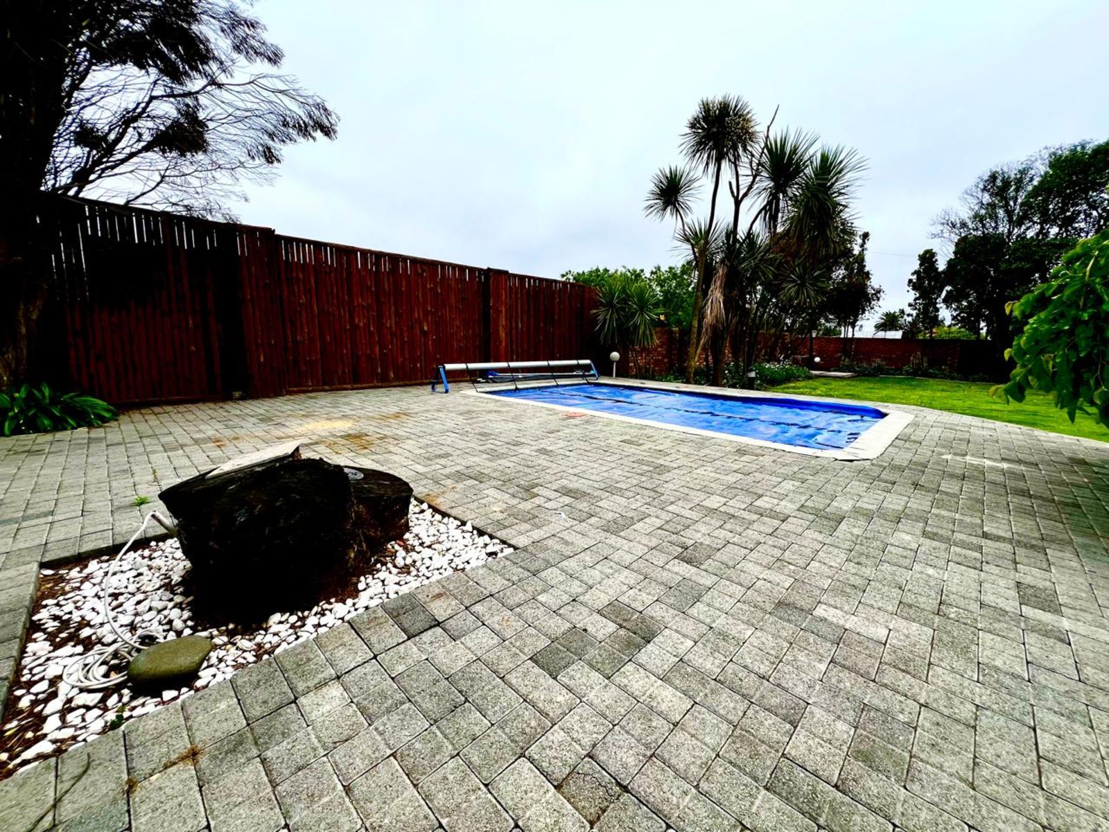 The beautifully landscaped garden surrounds a sparkling fibreglass swimming pool, equipped with a heat pump and safety cover, all set against stylish paving. Thoughtful extras like a borehole, 5000L JoJo tank with electric pump, and a well-equipped domestic quarters (with shower and toilet) add unmatched practicality.