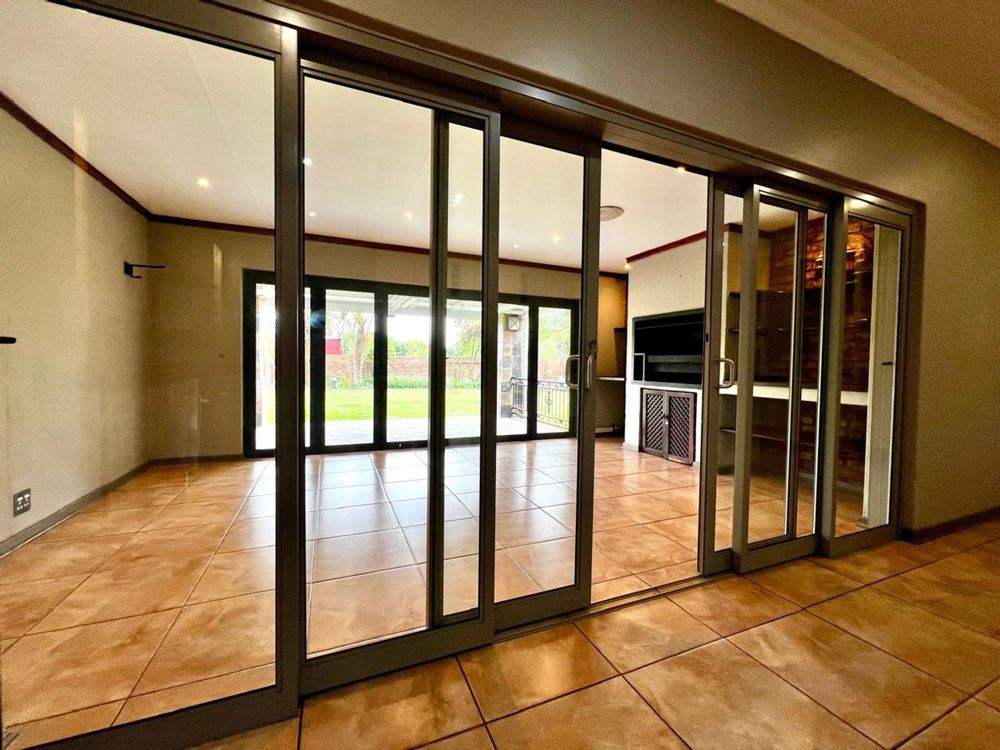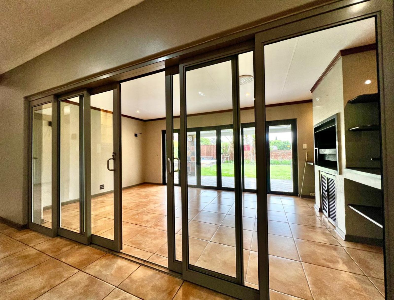 Security is top-notch, with an electric fence, CCTV, and alarm system offering complete peace of mind. Refined finishes — including wooden window frames, aluminium stack doors, automated double garages, a tandem garage, and a double-volume carport — are all interconnected with immaculate paving, enhancing the property’s sophisticated aesthetic.