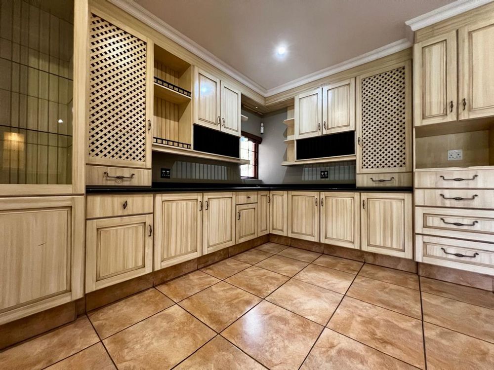 At the centre of this exquisite residence lies a French-inspired kitchen, impeccably appointed with granite countertops, sleek modern finishes, a scullery, laundry, and a generous walk-in pantry. The open-plan layout extends effortlessly to the entertainment area, complete with a built-in braai — perfect for hosting family gatherings and special celebrations.
