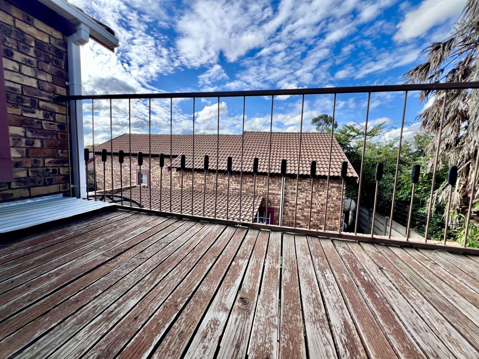 Secure, fully fenced complex with electric gate, intercom system, Garden Services, JoJo tank with pump, and a monthly levy of R700 covering insurance and communal maintenance.