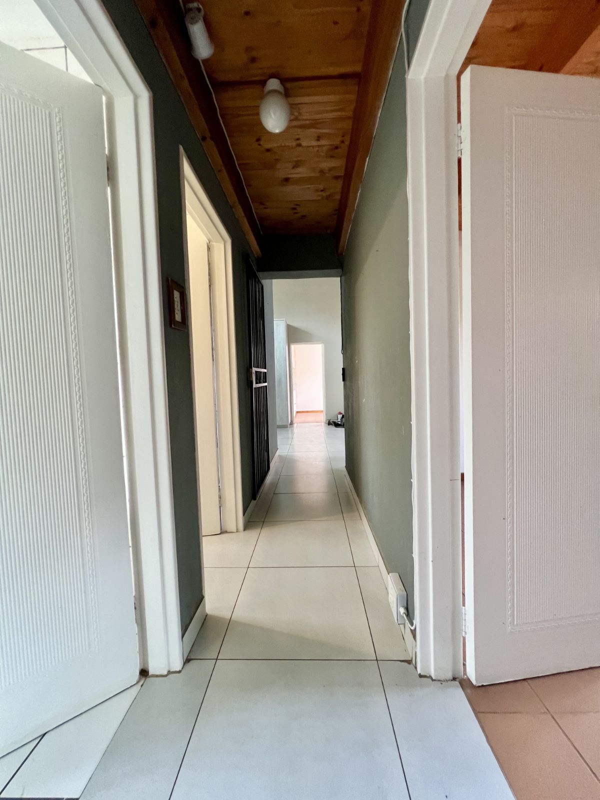 3 bedrooms, 2 bathrooms, main upstairs with ensuite and private balcony, plus a guest toilet. Covered veranda with built-in braai, carport, and additional parking.