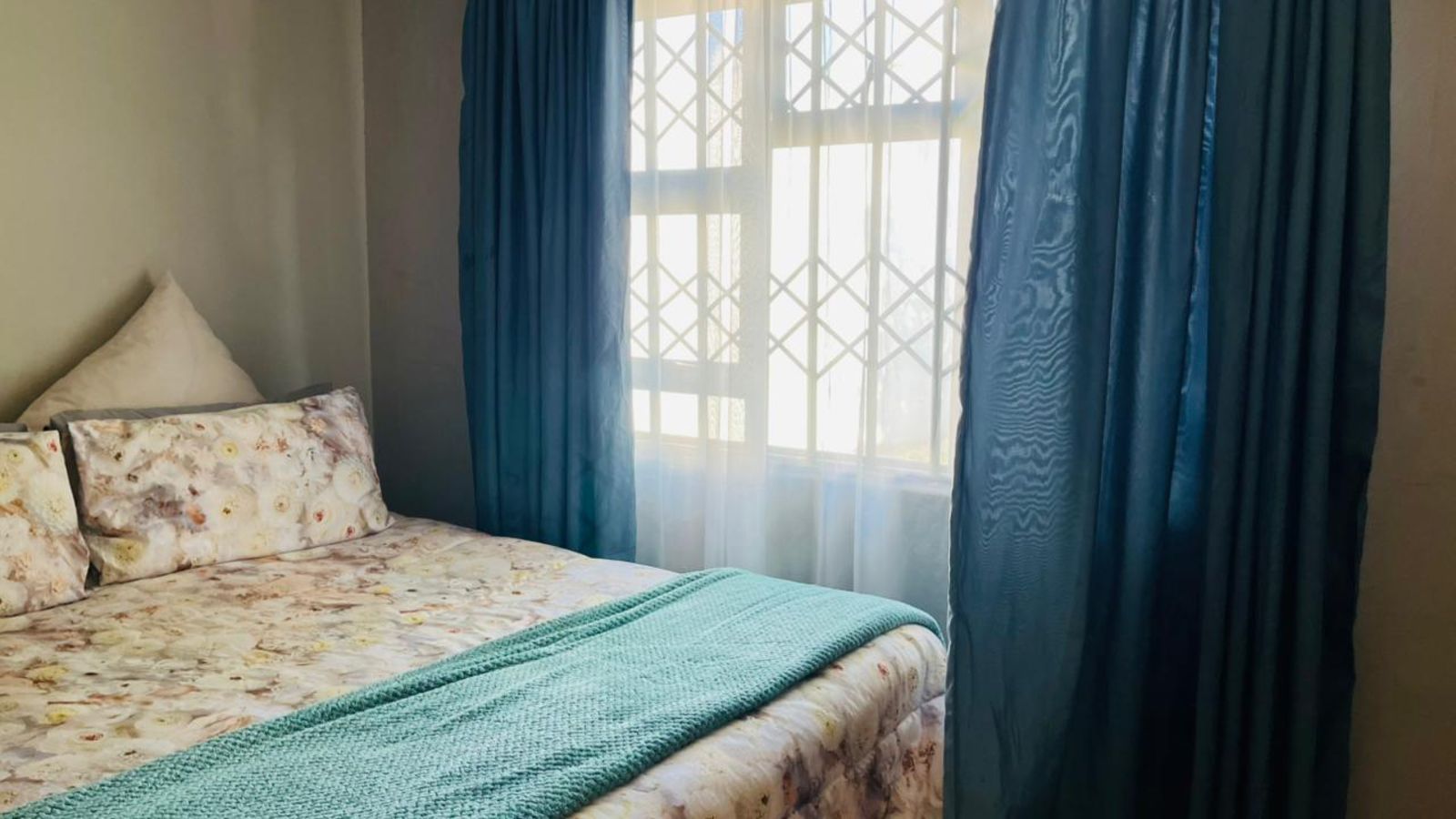 Curtain Rails, Built-in Cupboards, King Bed, Tiled Floors