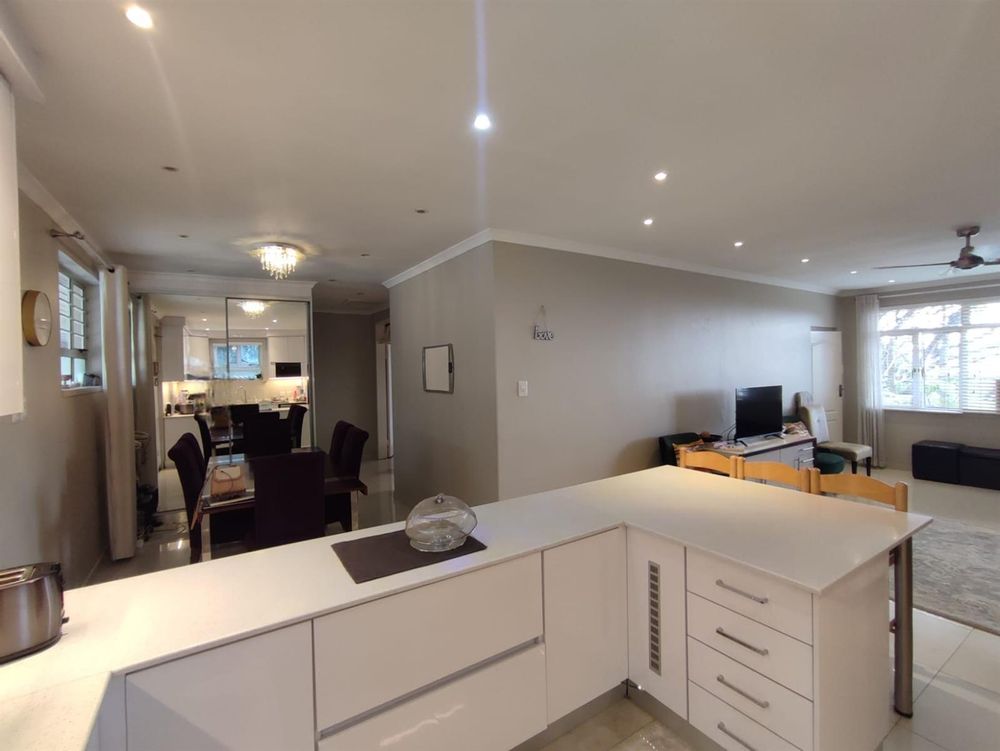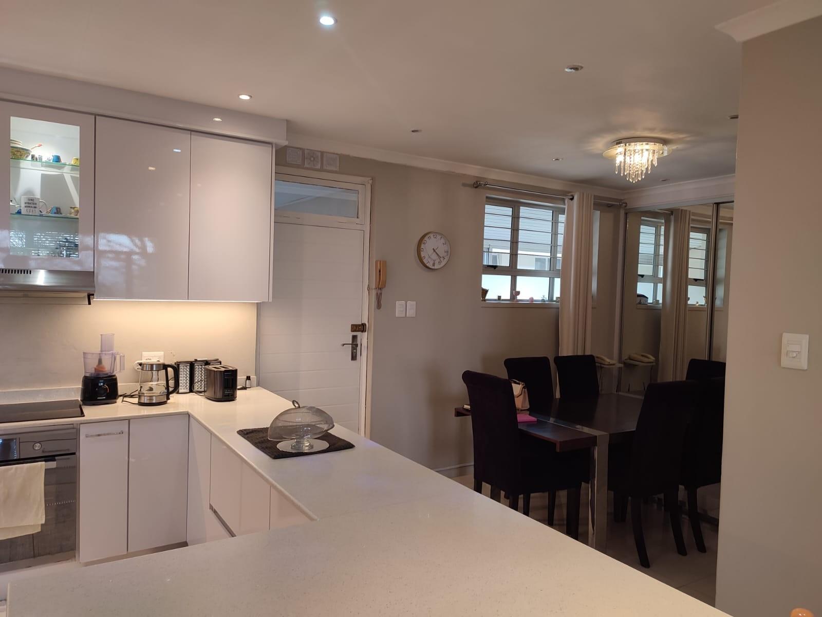 Sleek modern granite top kitchen, with tons of cupboard space, thermofan extra large oven, as well as both a dishwasher, and washing machine connection for a front loader or top loader washing machine. Aircon in the lounge.