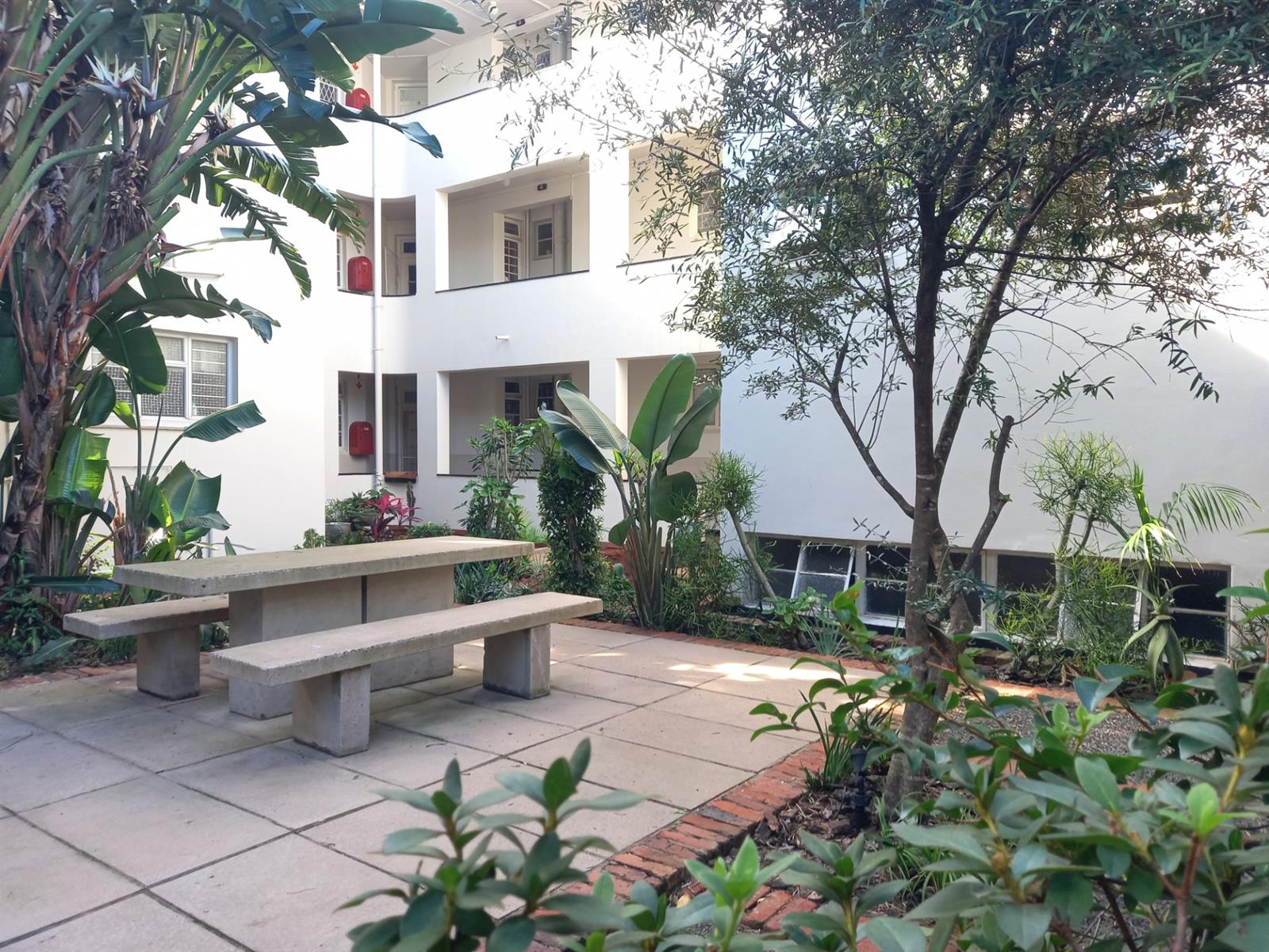 A quiet well managed and secure building which includes a leafy green braai space and panoramic city views from all windows.