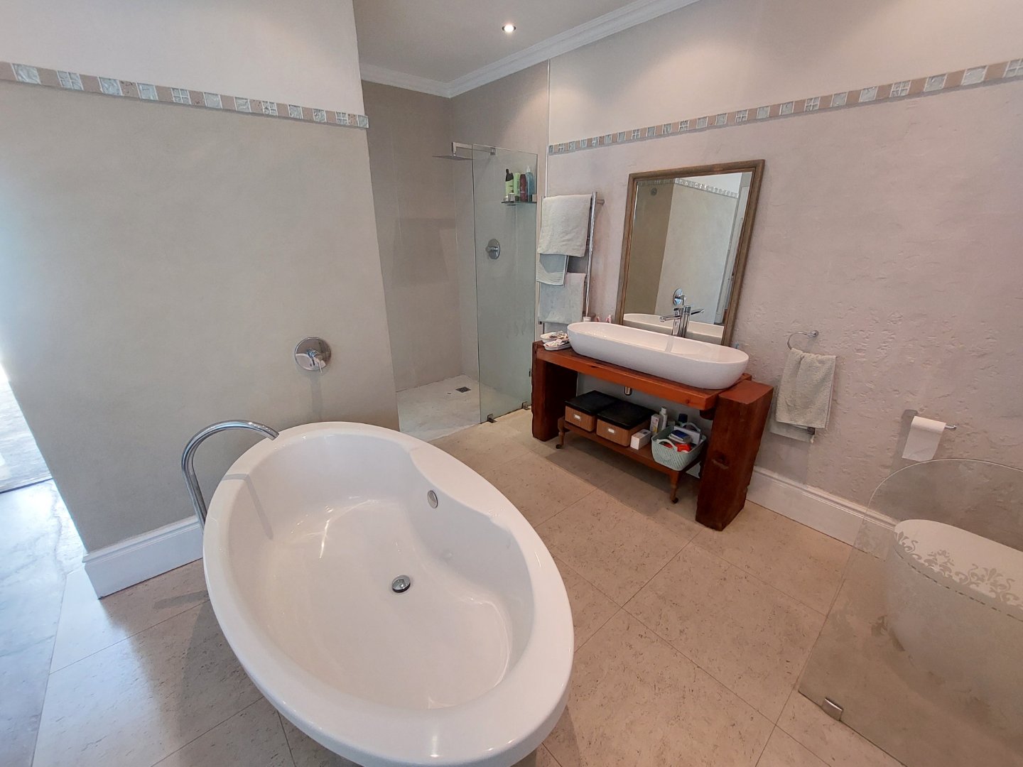 This portion of the sectional title consists of four spacious bedrooms with fully fitted modern cupboards. The main bedroom comes with an ensuite bathroom. Lounge is very spacious and leads to a spacious porch which overlooks the city line. The kitchen comes with fully fitted modern built in cupboards and extends into a scullery with fits a washing machine and dish washer which becomes the laundry room as well. The second family bathroom is huge with a bathtub and shower. The property is section title as the upstairs portion is sold and is completely separated.