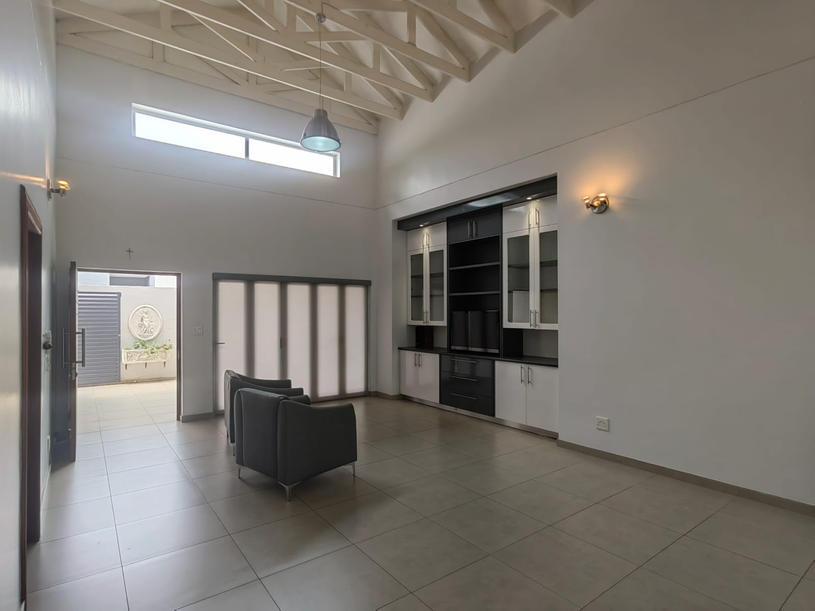 Spacious open-plan living with double-volume ceilings